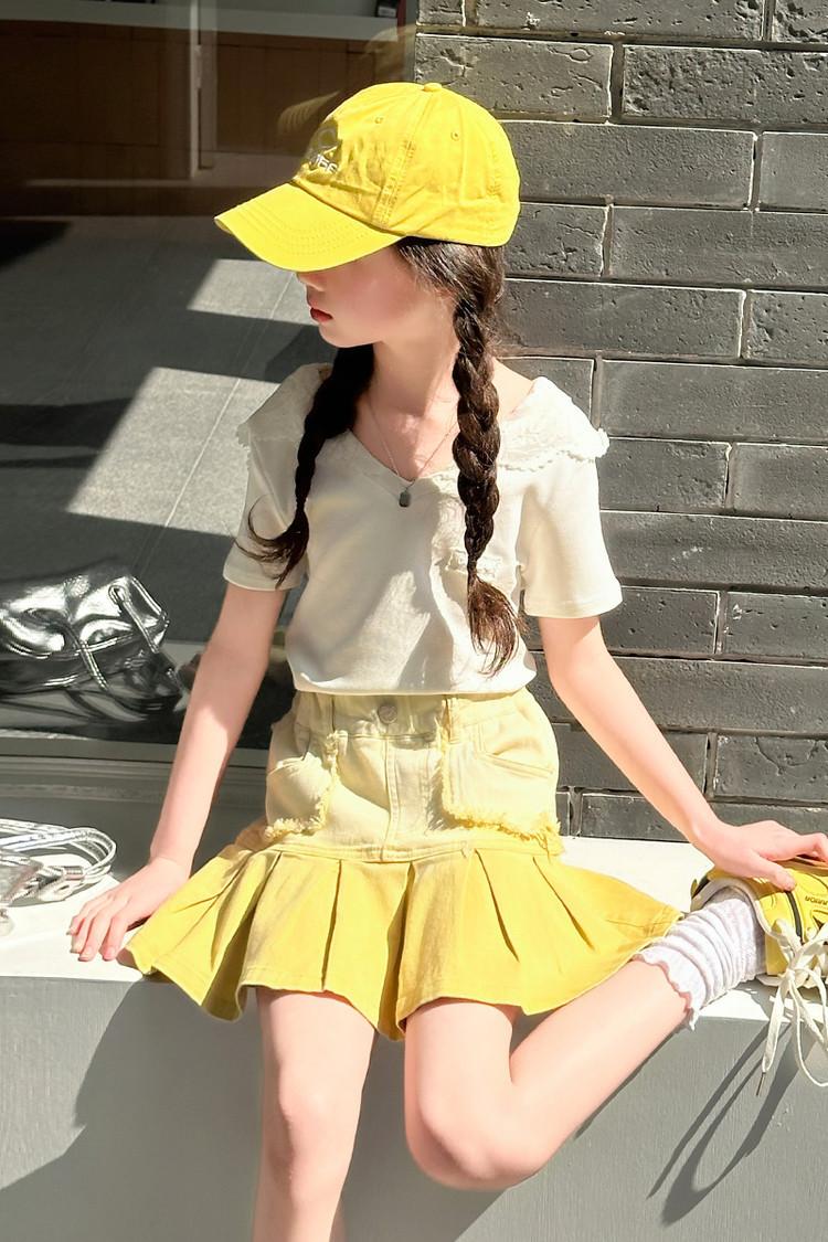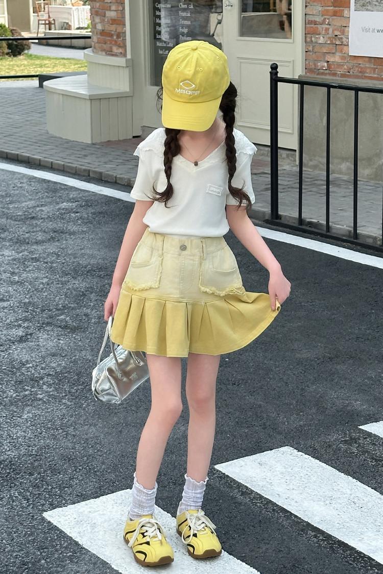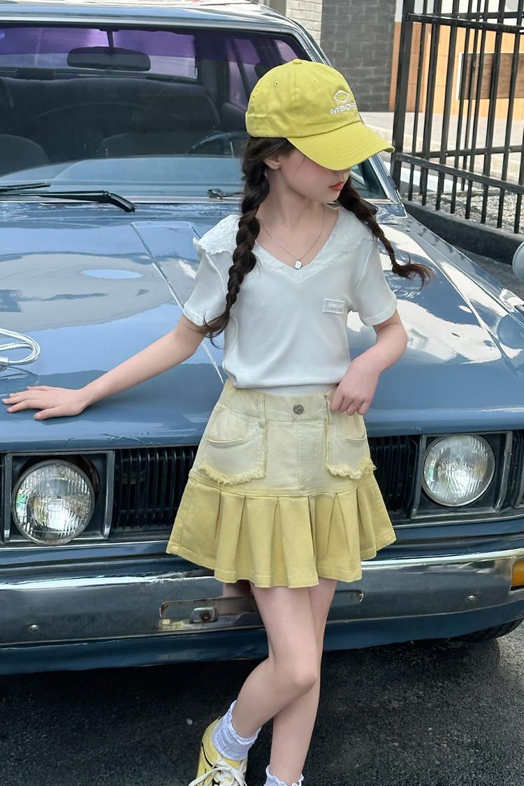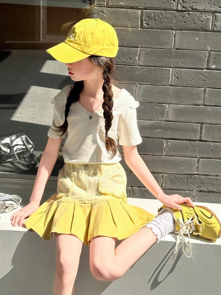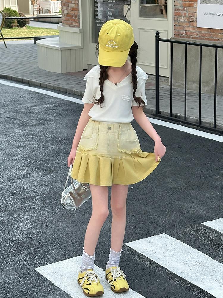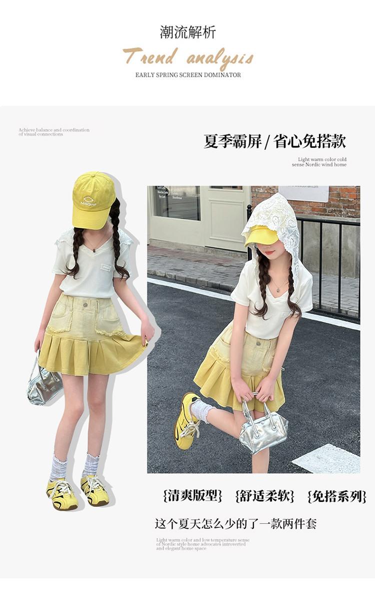 Vestido de camiseta de manga corta con capucha de encaje de verano para niñas estilo coreano Vestido Vestido de verano para niños grandes para mujer Falda corta Falda para niños Camiseta