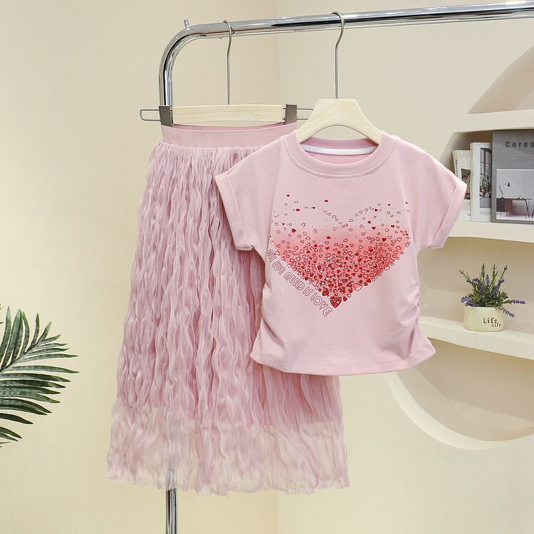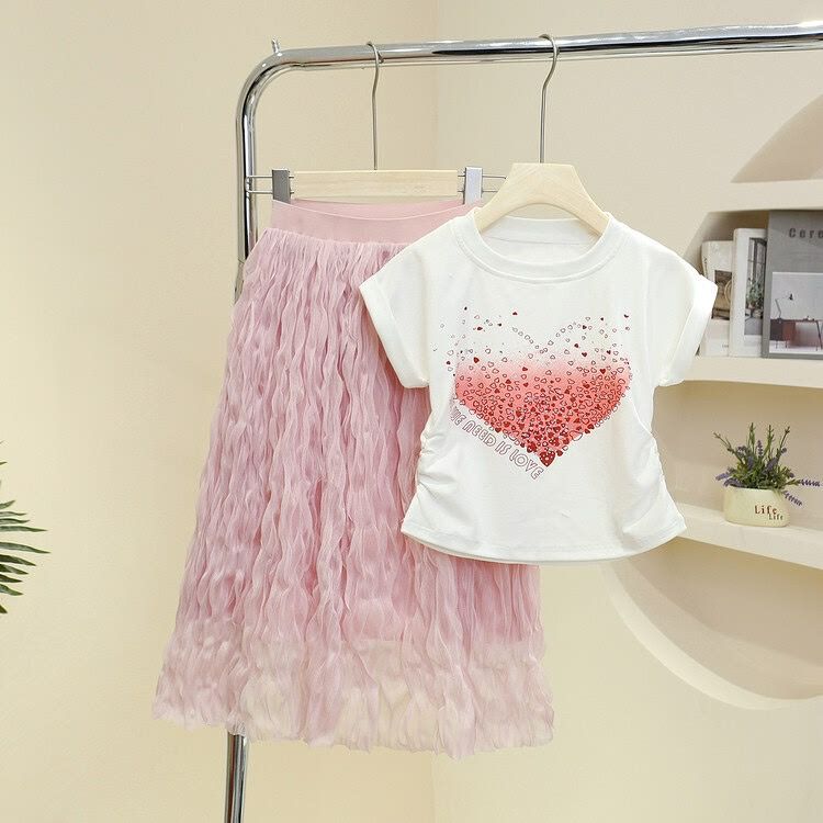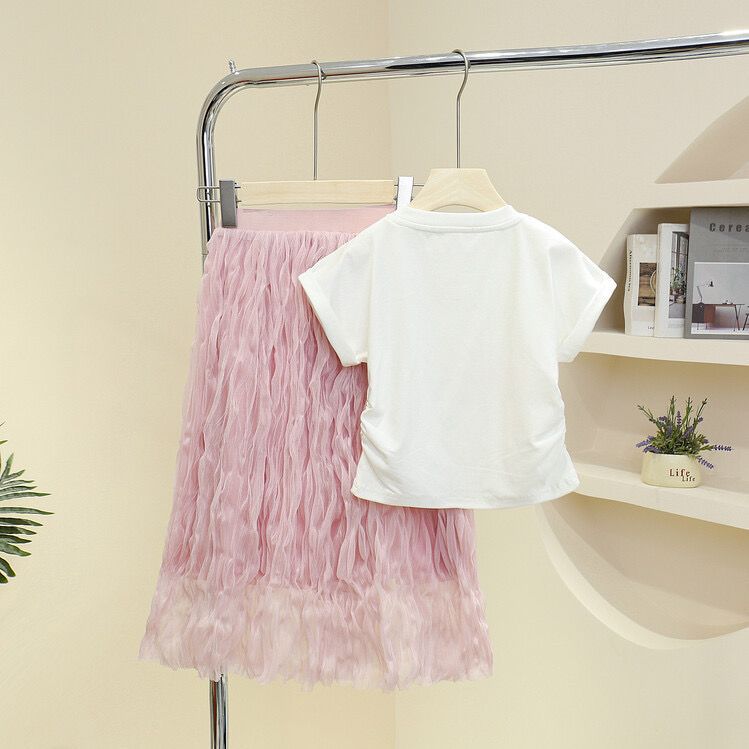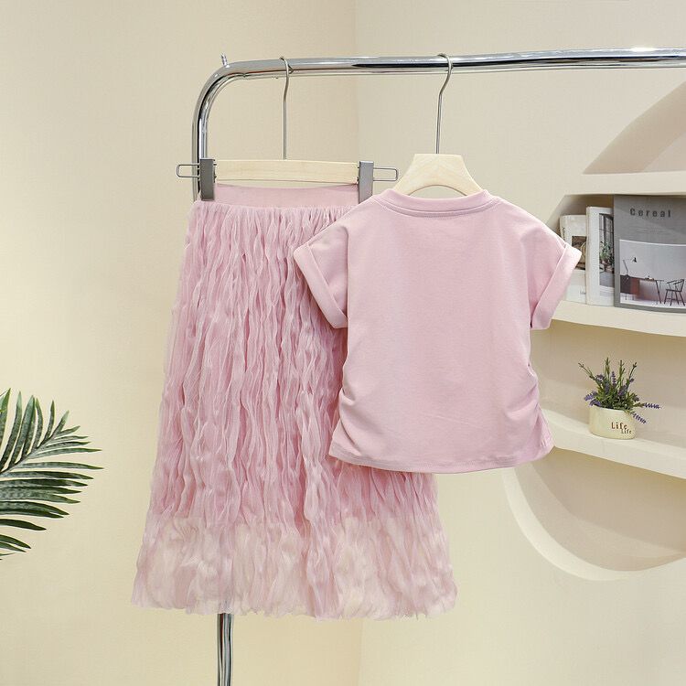 Compra Conjunto de dos piezas de camiseta y falda de verano para niña, elegante y a la moda, con mangas cortas y falda. al por mayor en Joom.pro