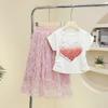 Conjunto de dos piezas de camiseta y falda de verano para niña, elegante y a la moda, con mangas cortas y falda.