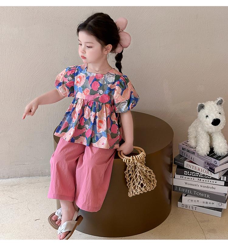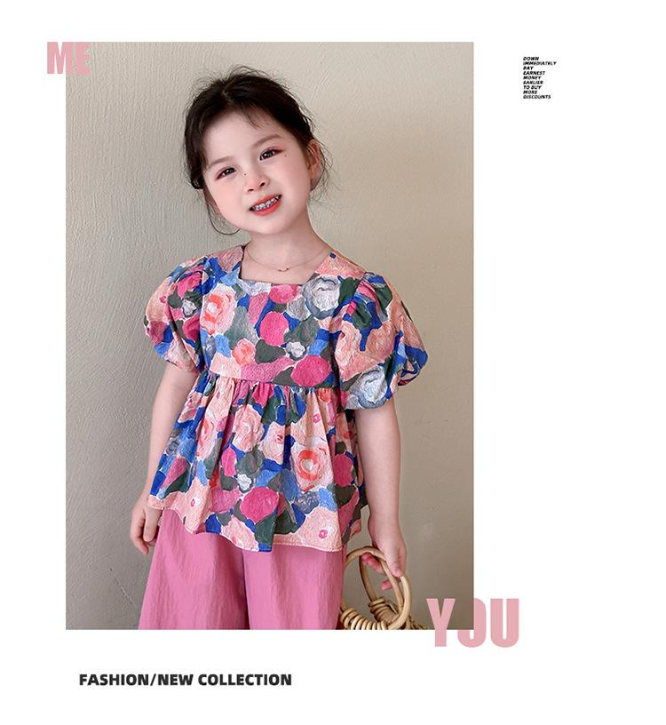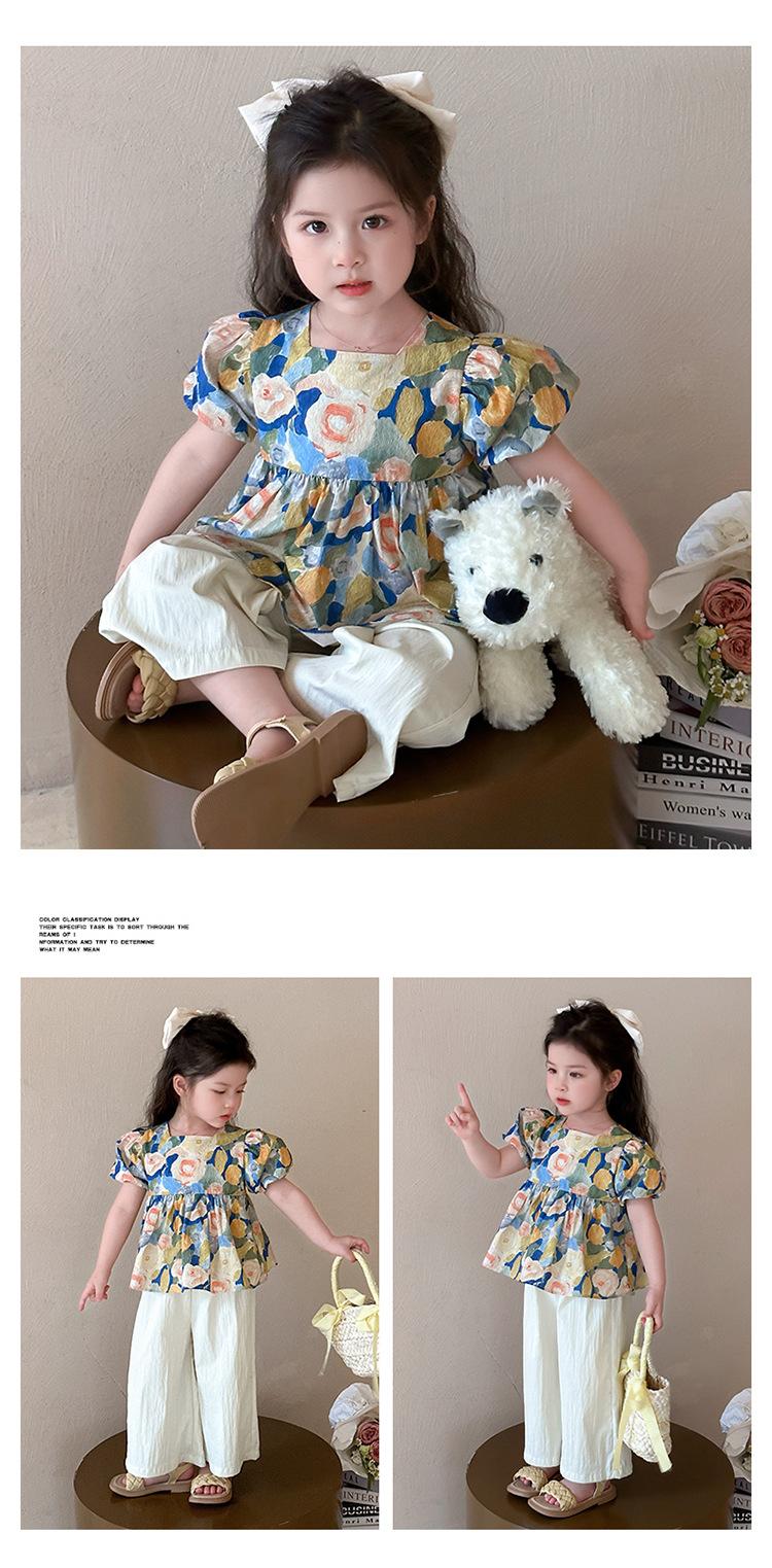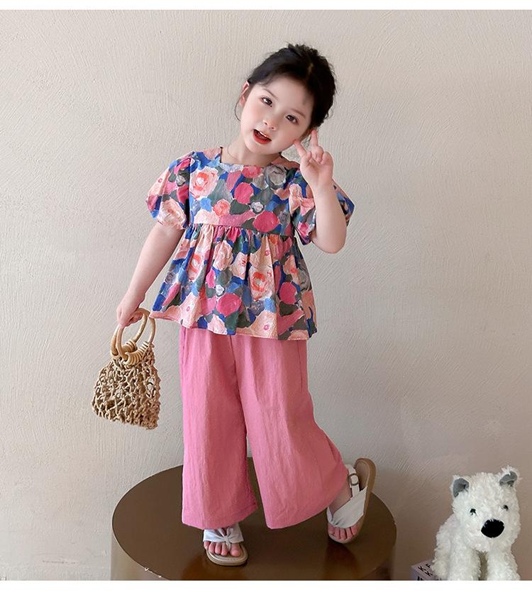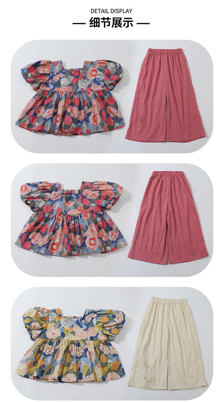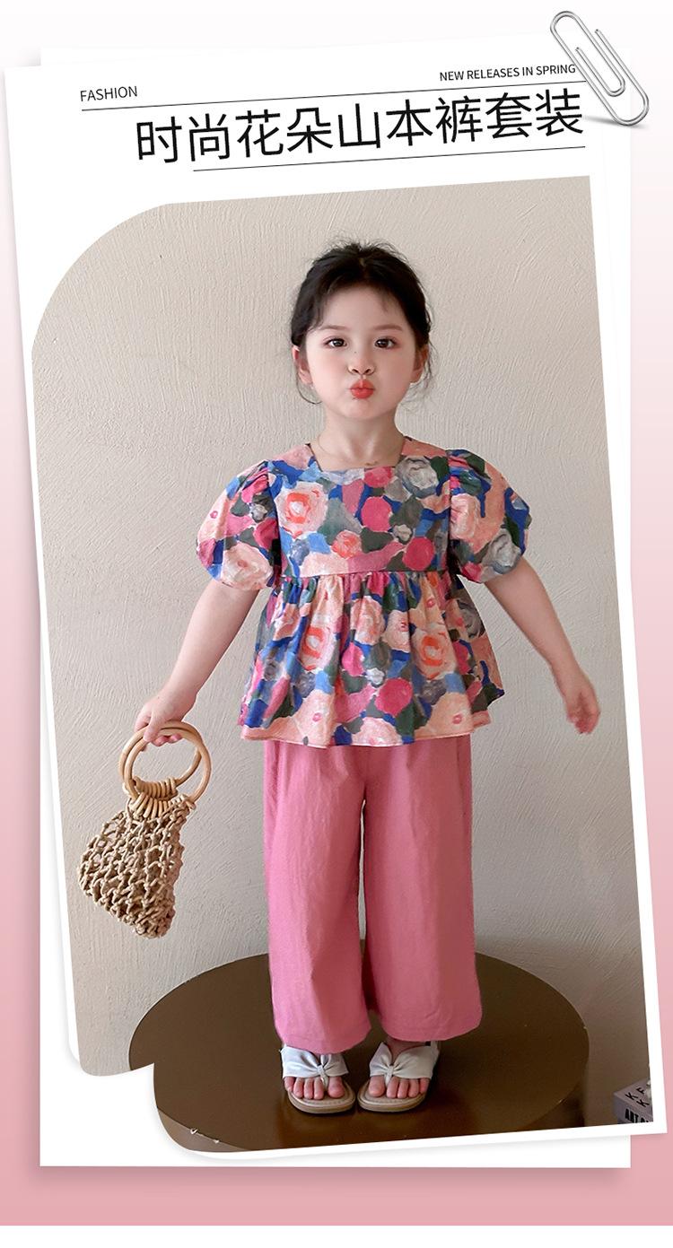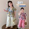 Conjunto de Pantalón Flower Yamamoto para Niñas 2025 Verano Nueva Moda Niña Elegante Conjunto de Dos Piezas Vestido de Verano para Niños