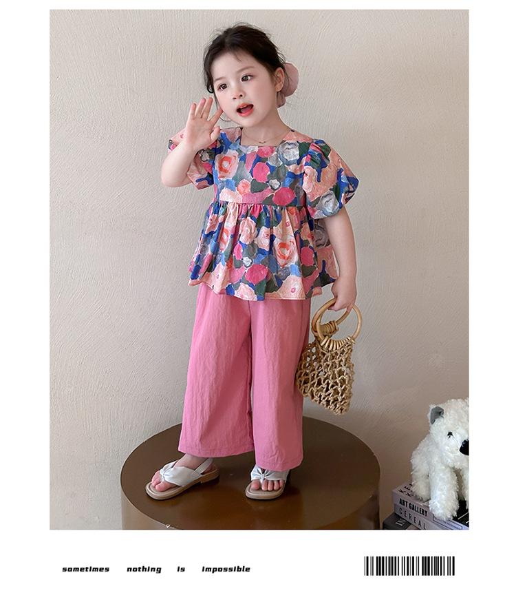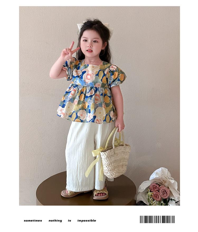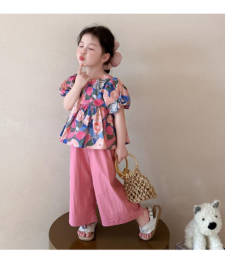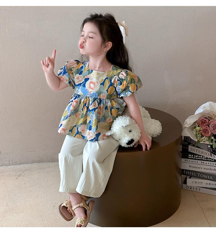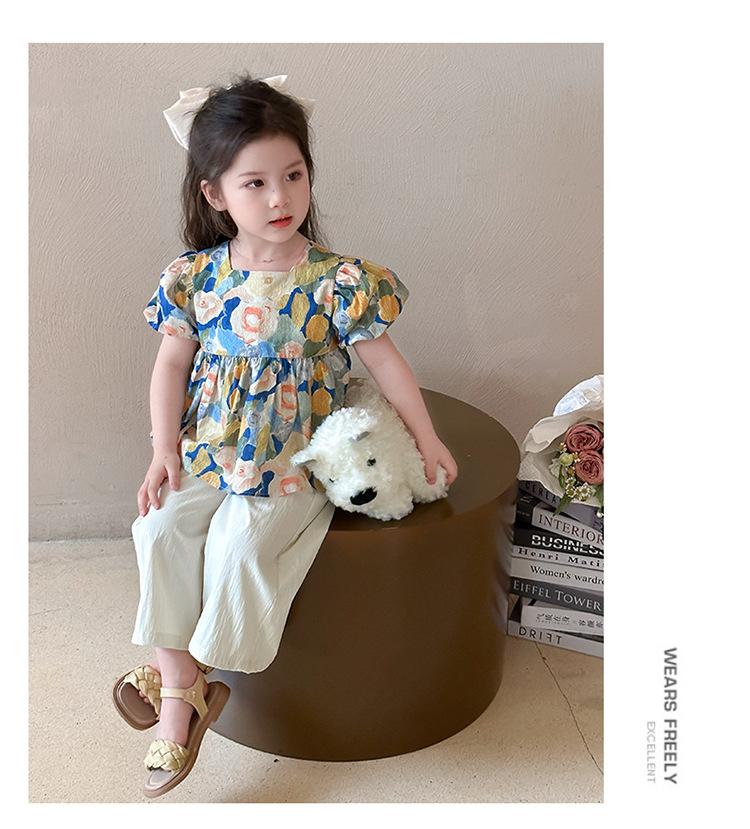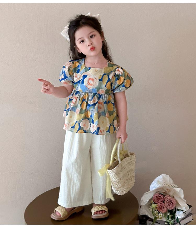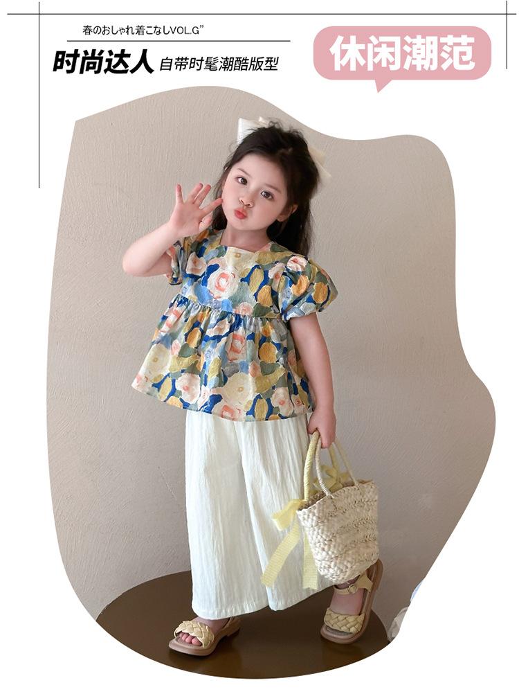 Conjunto de Pantalón Flower Yamamoto para Niñas 2025 Verano Nueva Moda Niña Elegante Conjunto de Dos Piezas Vestido de Verano para Niños