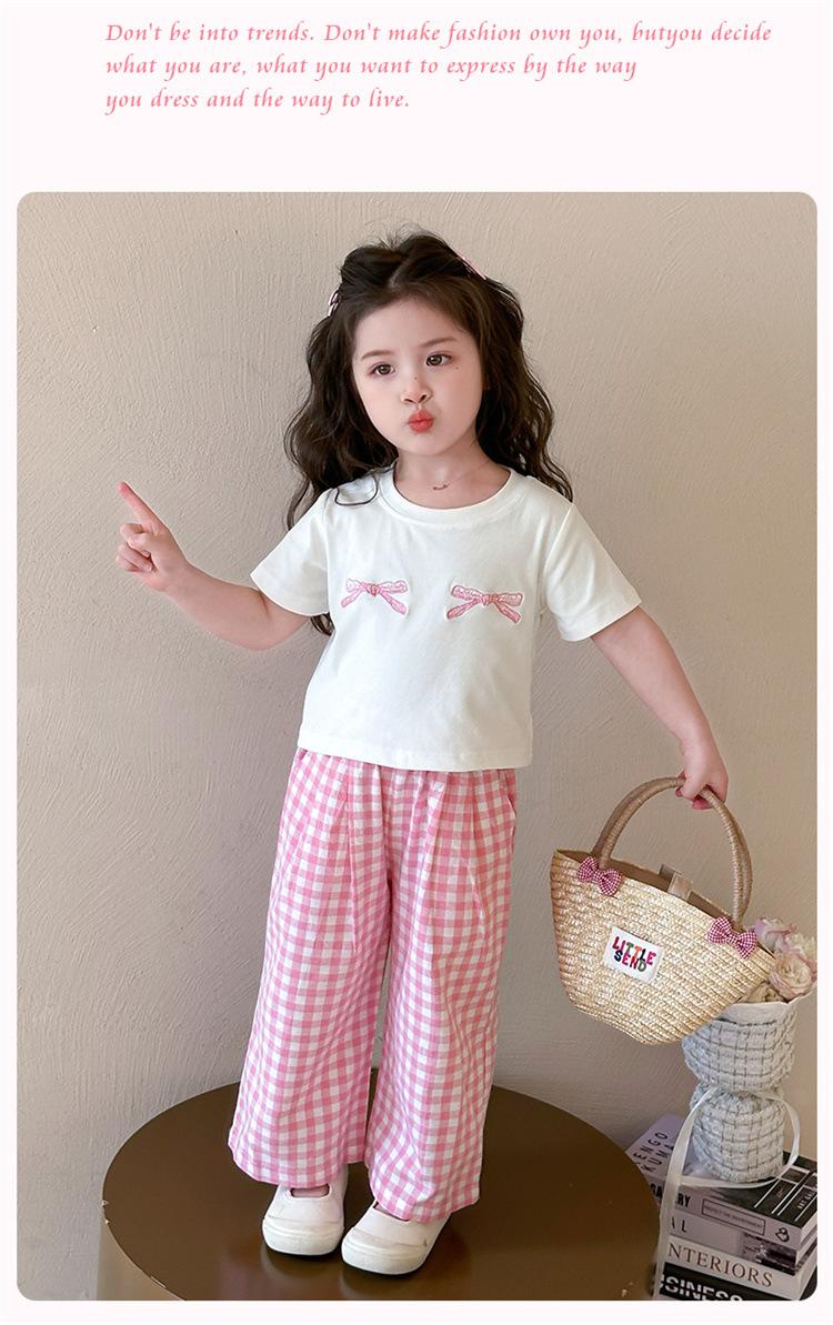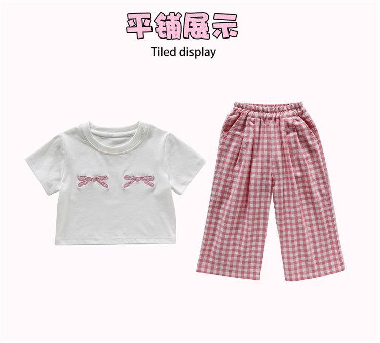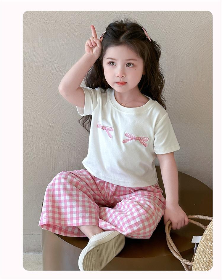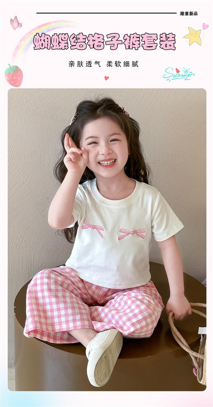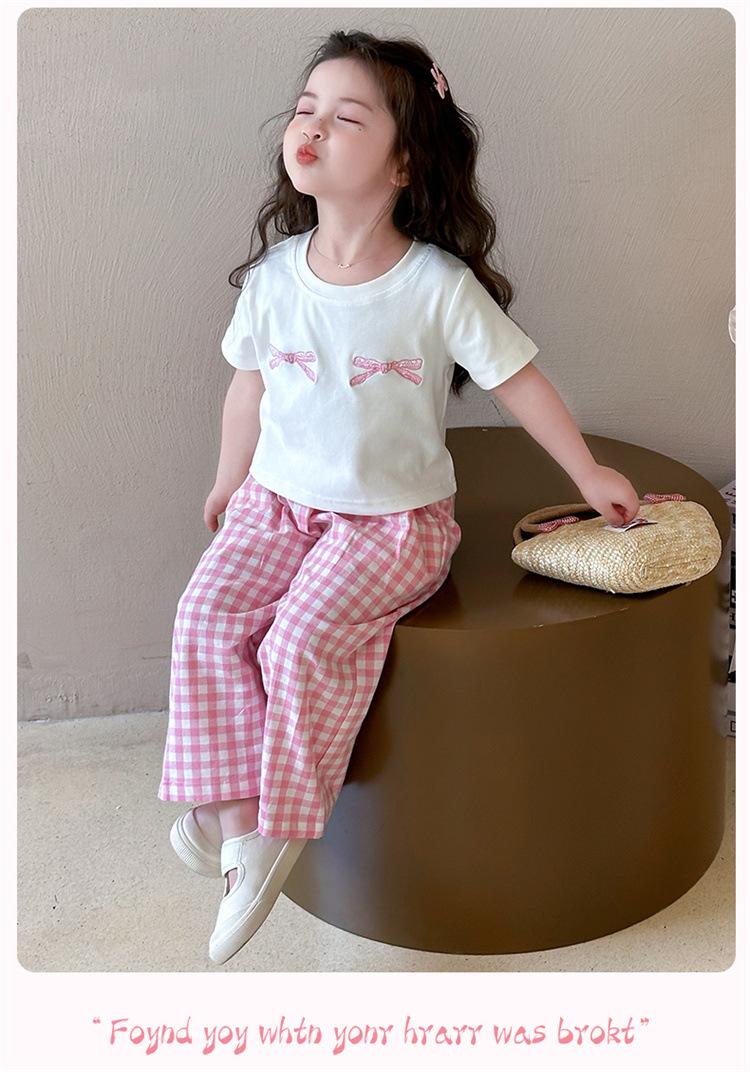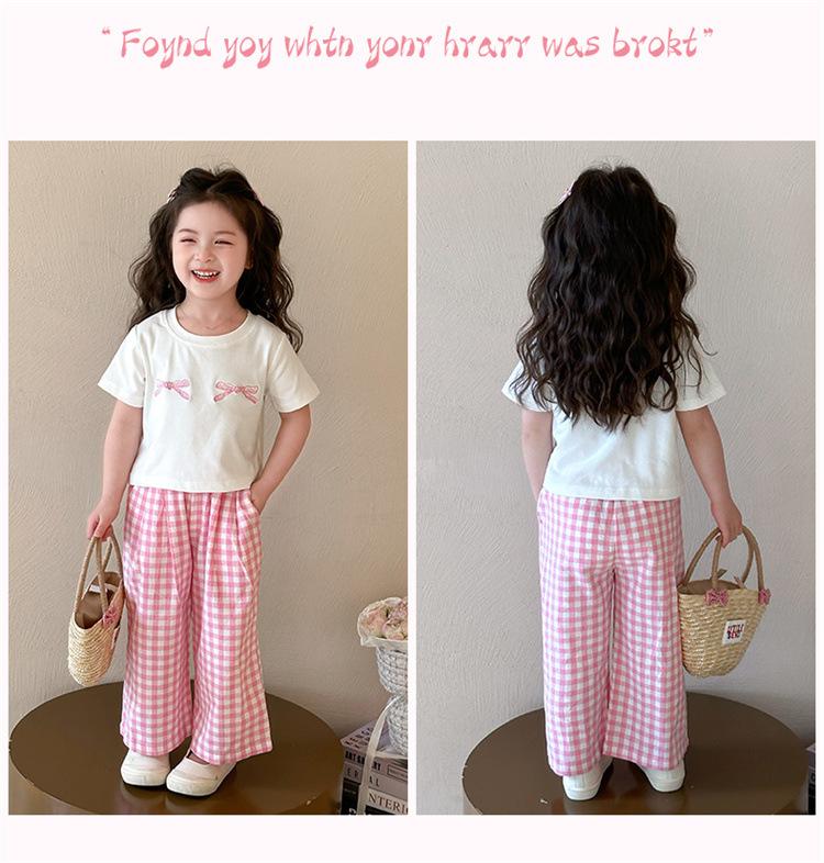 Traje de Lazo a Cuadros para Niñas 2025 Verano Nueva Moda Niña Elegante Conjunto de Dos Piezas Vestido de Verano para Niños