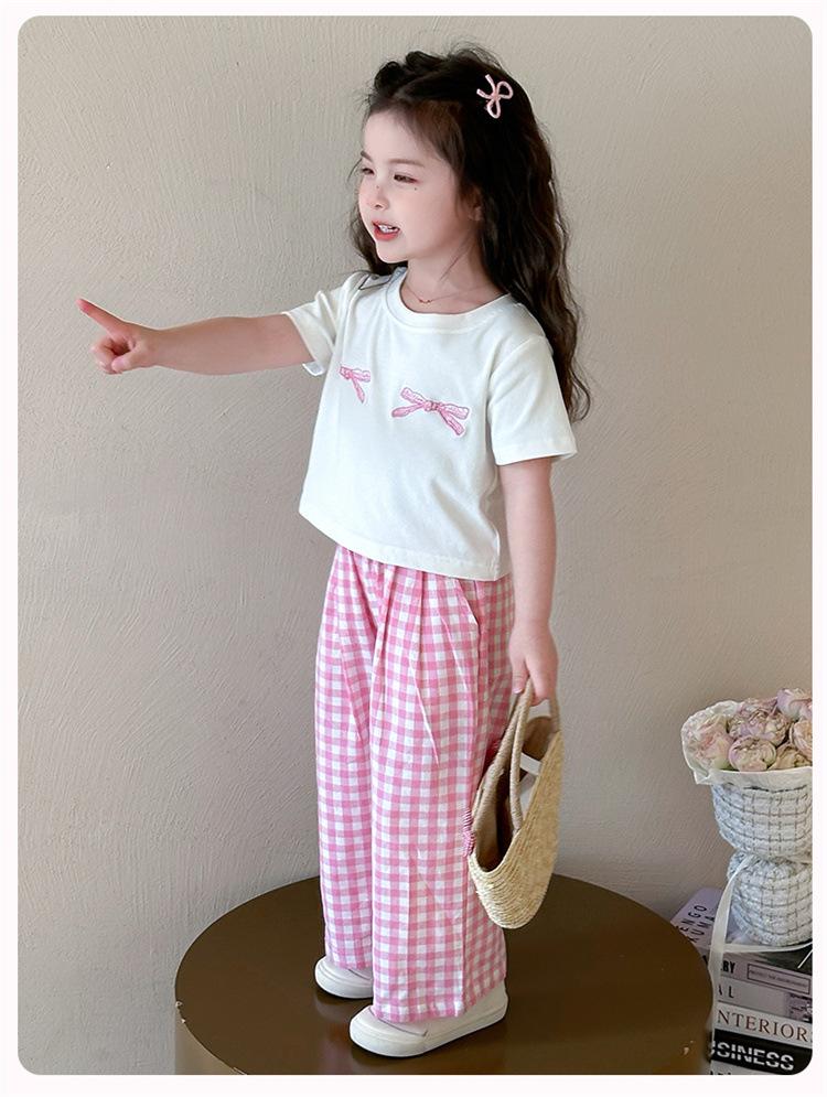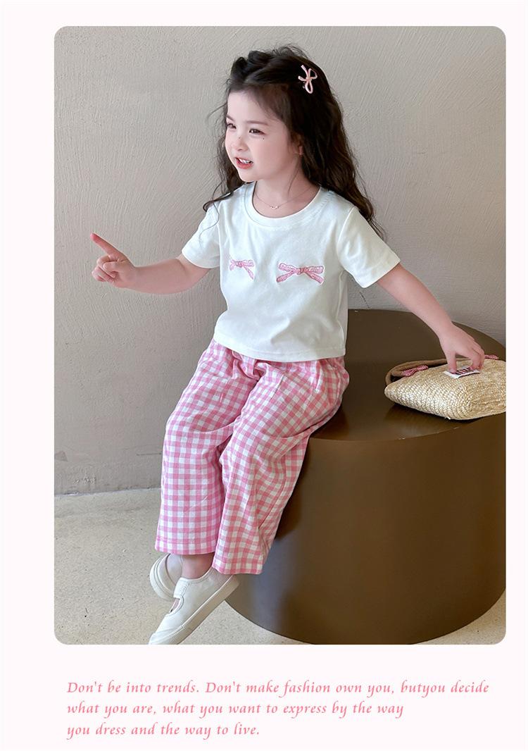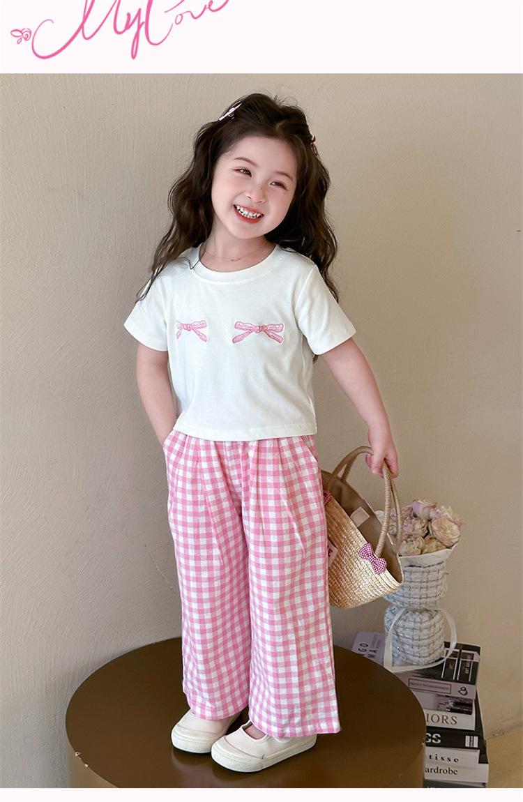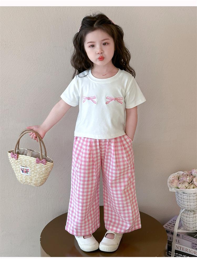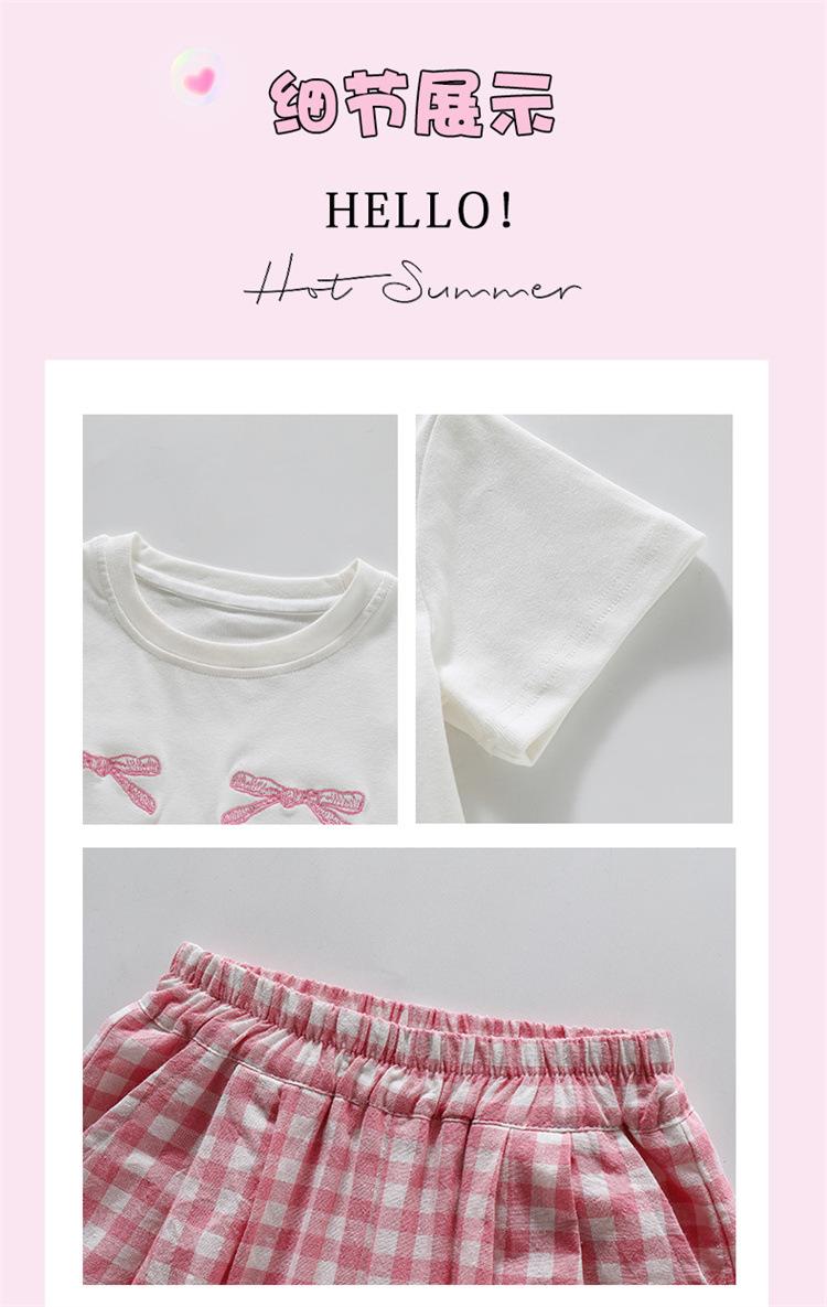 Traje de Lazo a Cuadros para Niñas 2025 Verano Nueva Moda Niña Elegante Conjunto de Dos Piezas Vestido de Verano para Niños