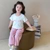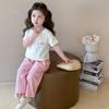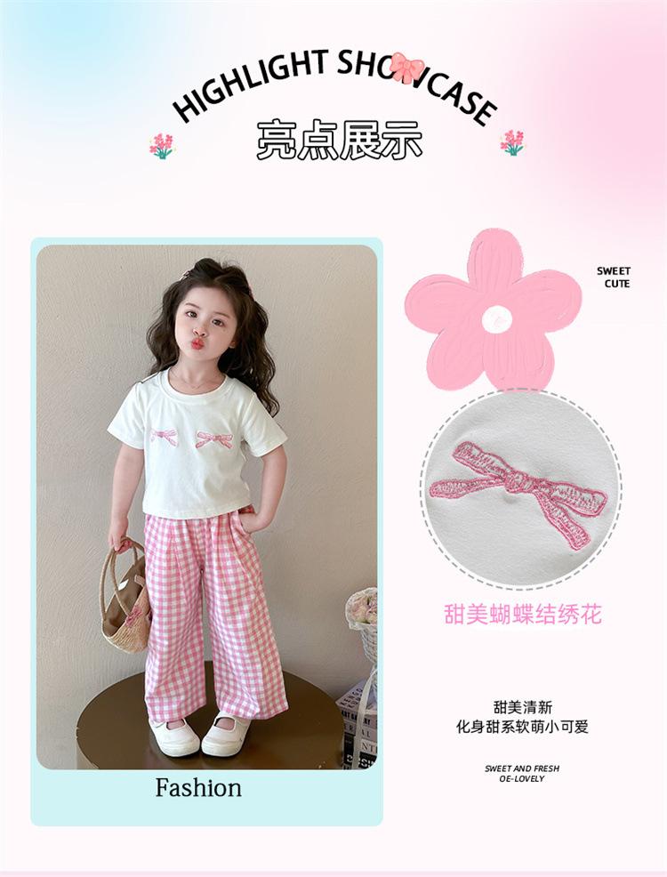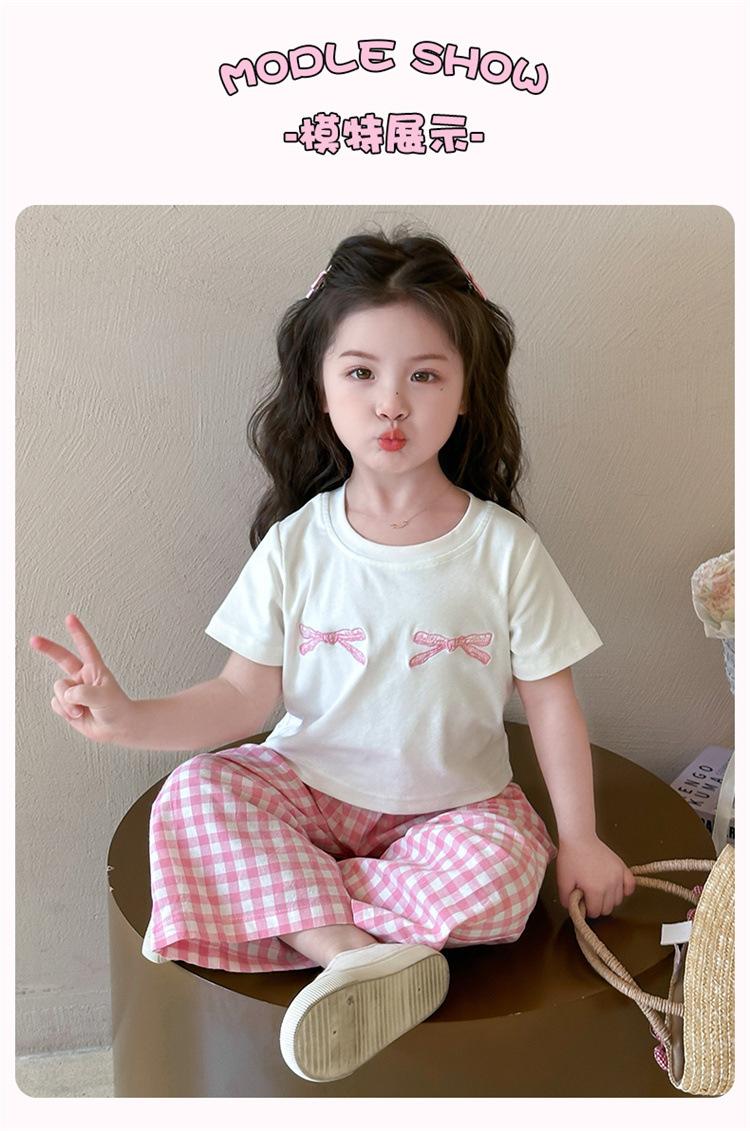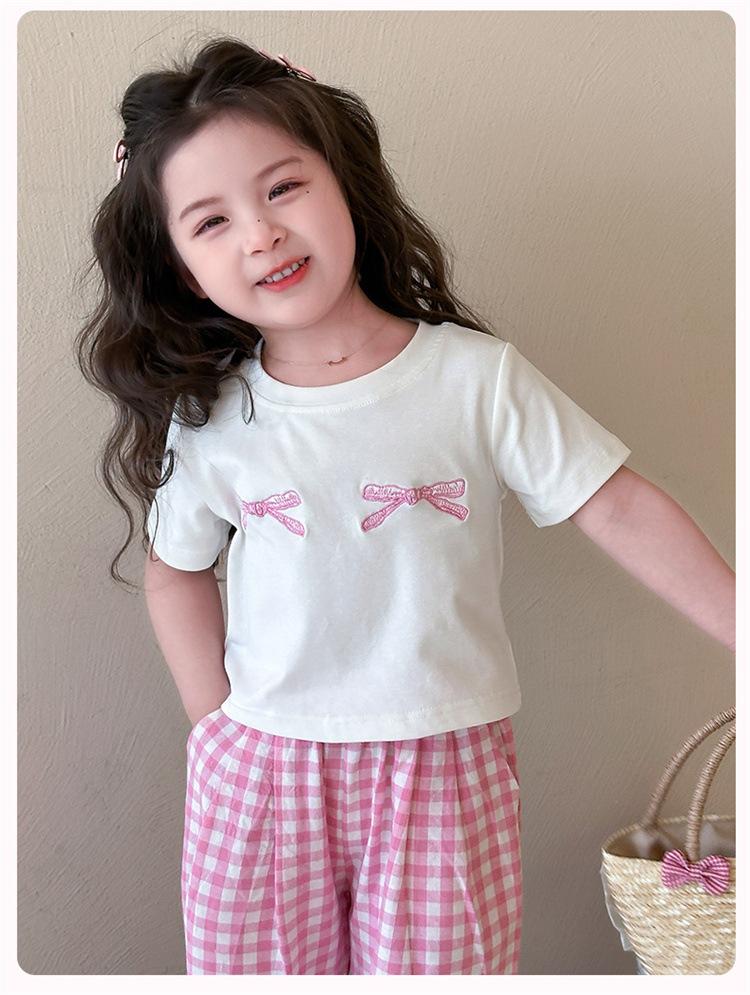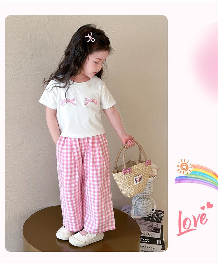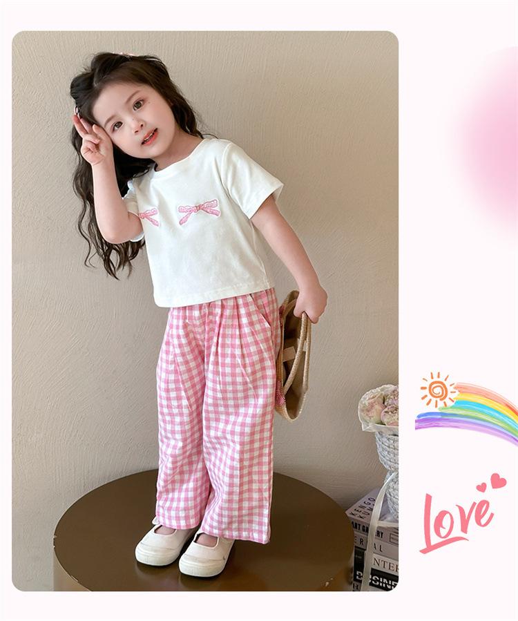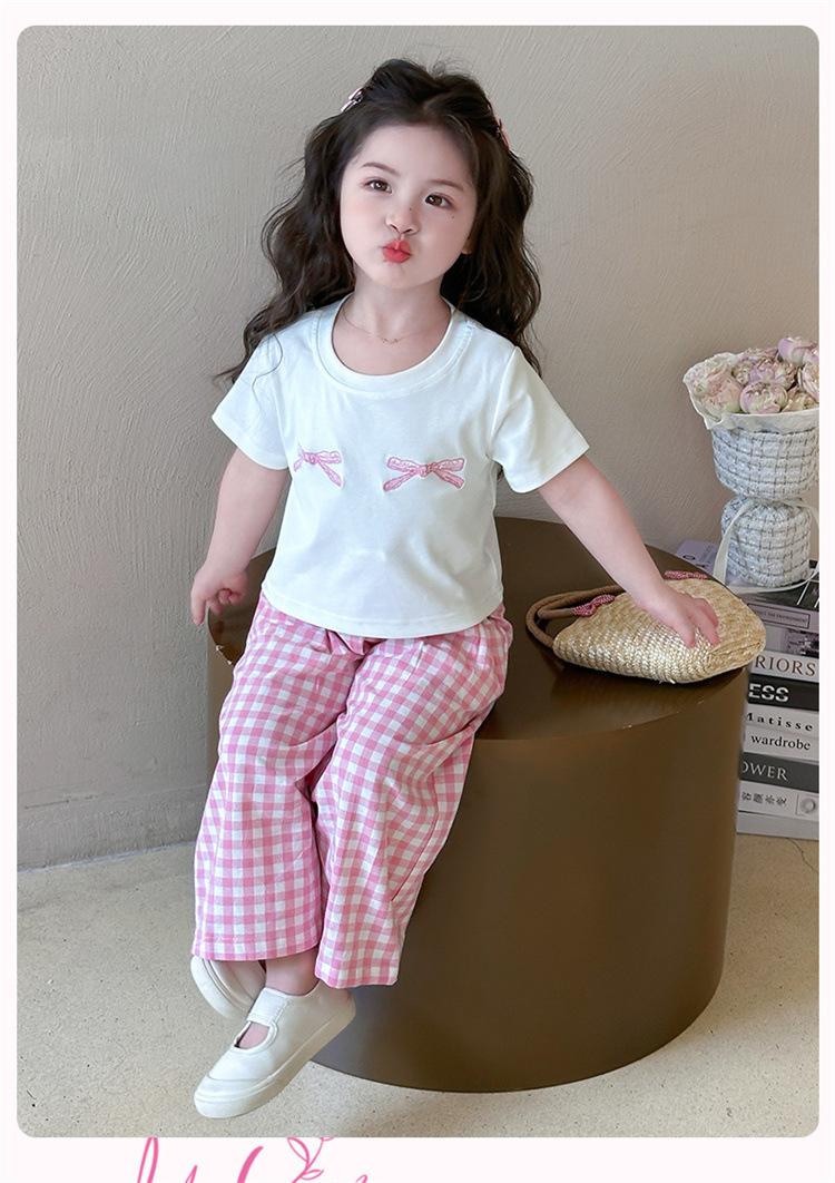 Traje de Lazo a Cuadros para Niñas 2025 Verano Nueva Moda Niña Elegante Conjunto de Dos Piezas Vestido de Verano para Niños