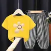 Traje de verano para niña, ropa de bebé de dos piezas de manga corta fina, conjunto de camiseta y pantalones para salir de verano.