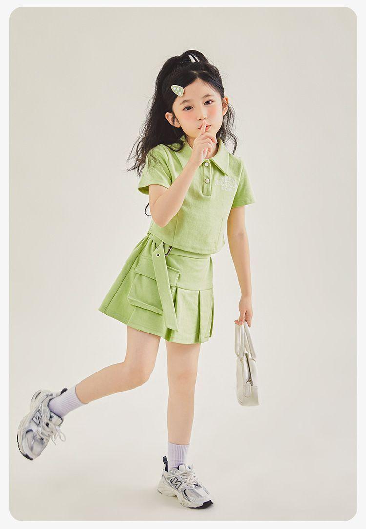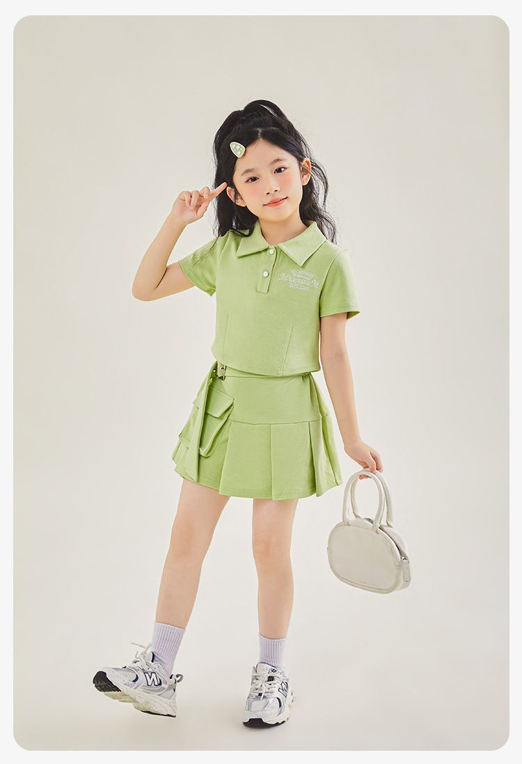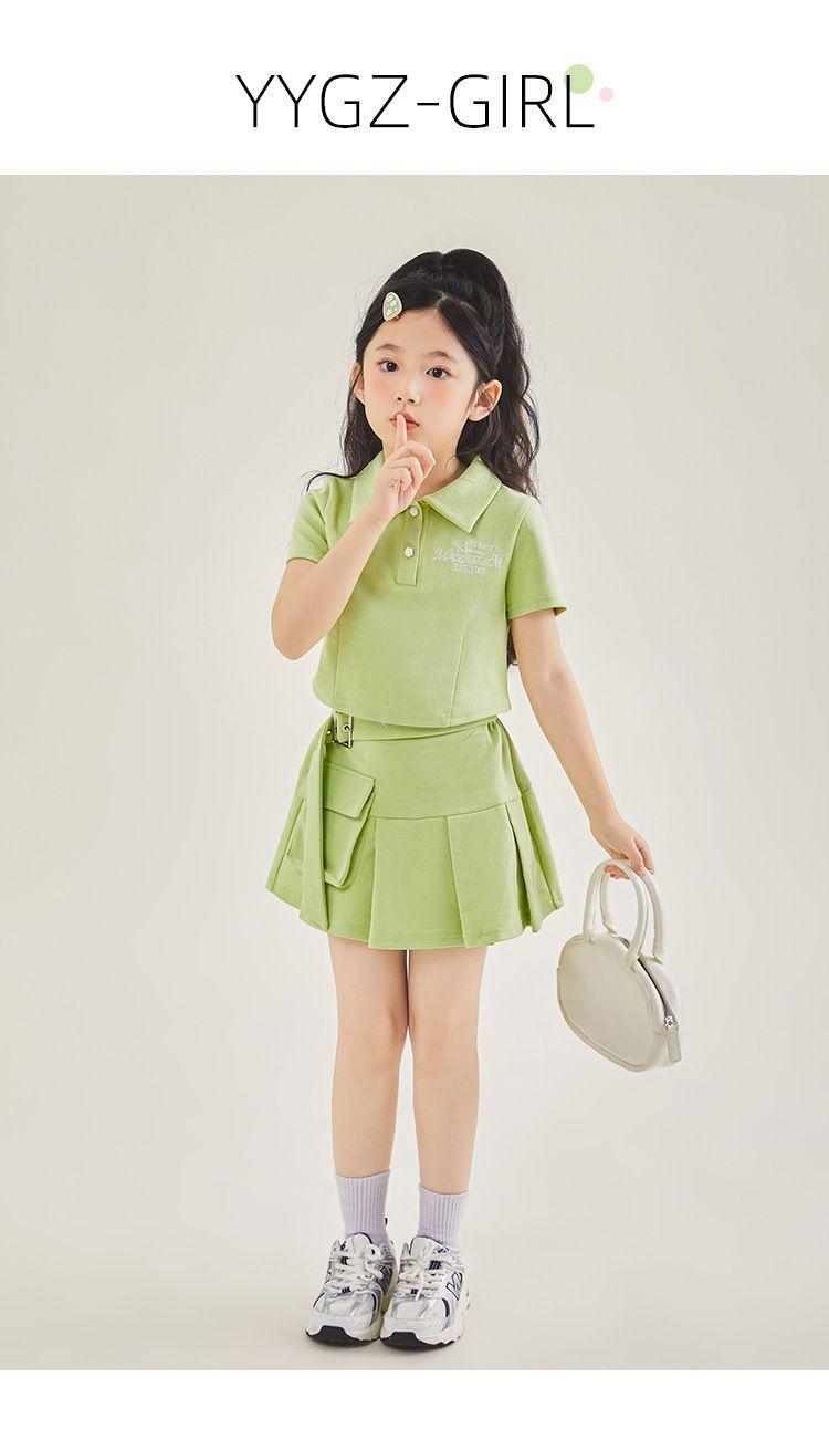 Traje para Niñas Verano 2025 Nuevo Estilo Estilo Coreano Polo de Manga Corta para Niños Falda Corta Moda Deportivo Conjunto de Dos Piezas
