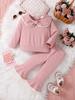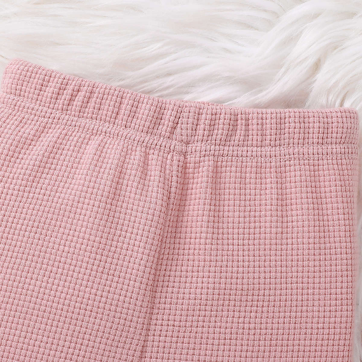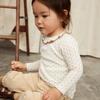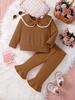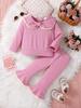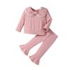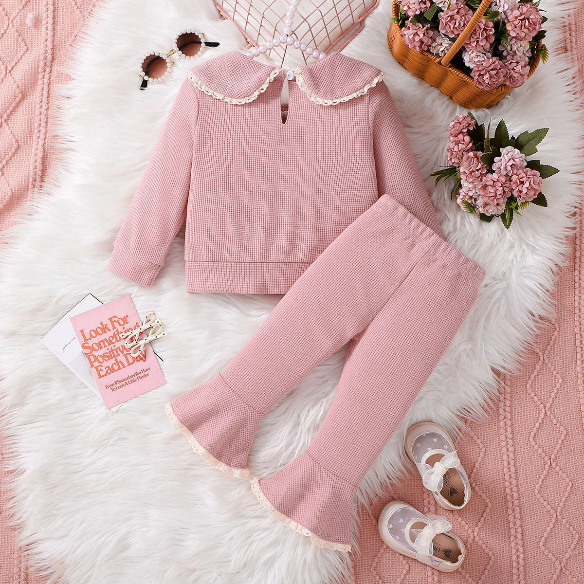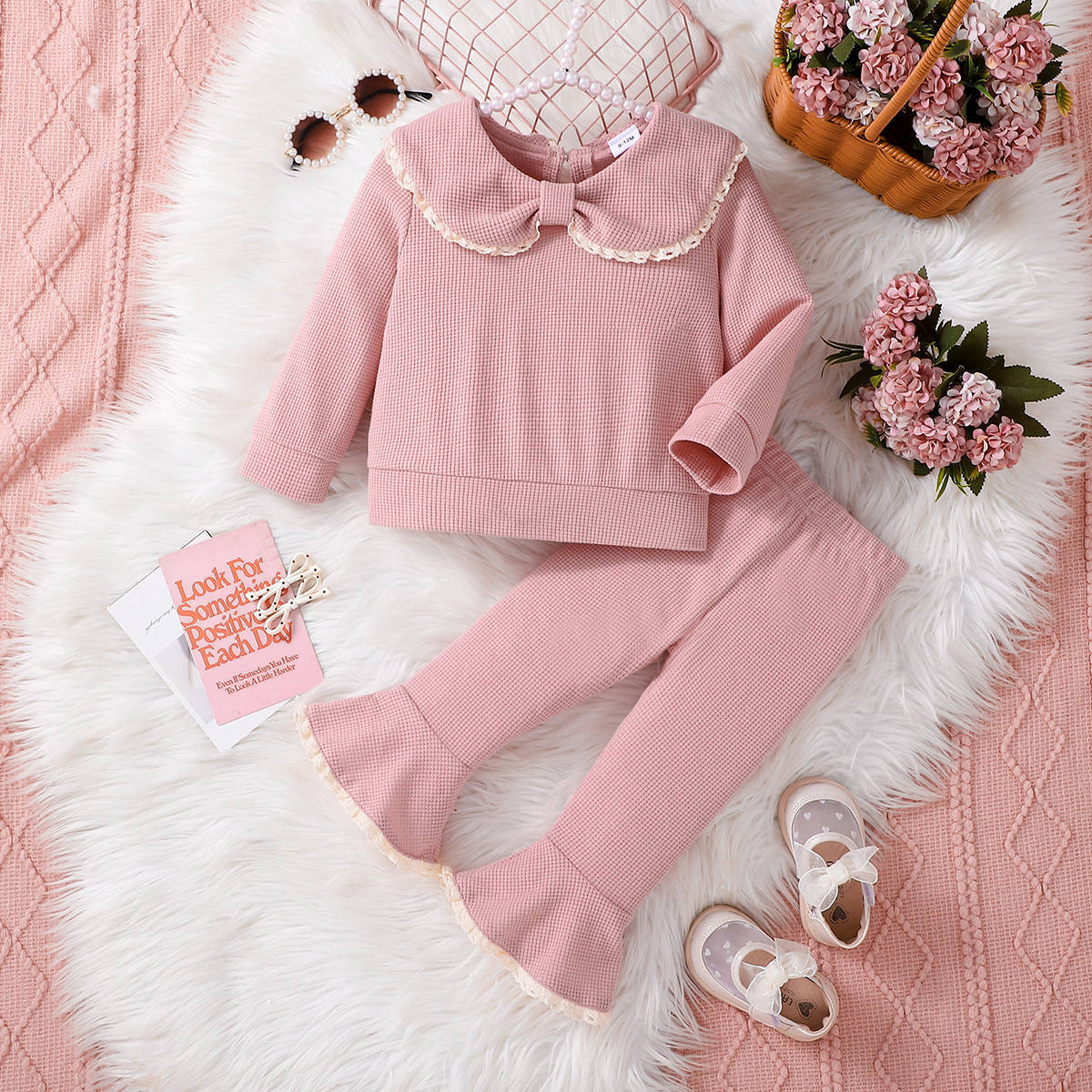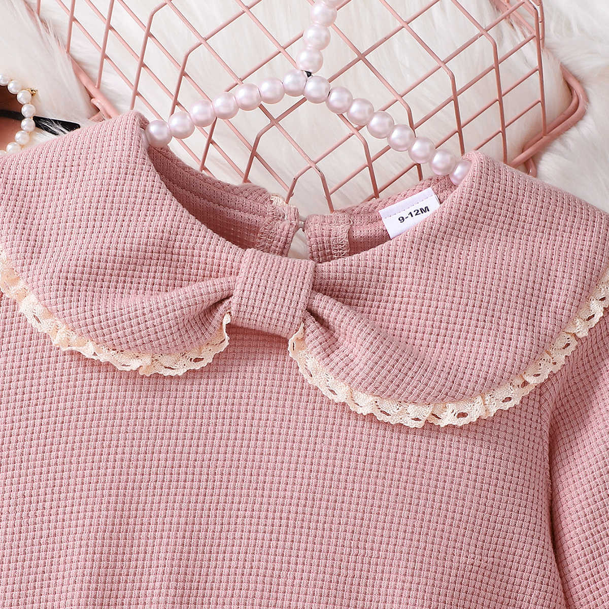 Primavera y Otoño Nuevo Estilo Coreano Bebé Niña Lindo Color Sólido Lazo Cuello de Muñeca Manga Larga Color Contraste Encaje Traje de Pantalón