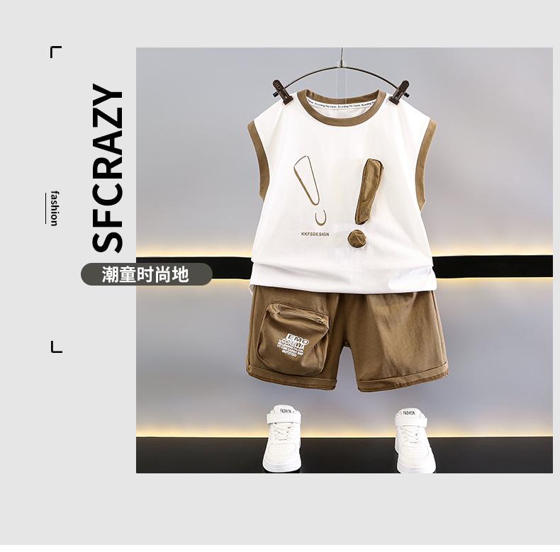 Traje para niños 2025 Nuevo Bebé Verano Moda Chaleco Sin Mangas Dos Piezas Guapo Niños Verano Delgado Ropa para Niños