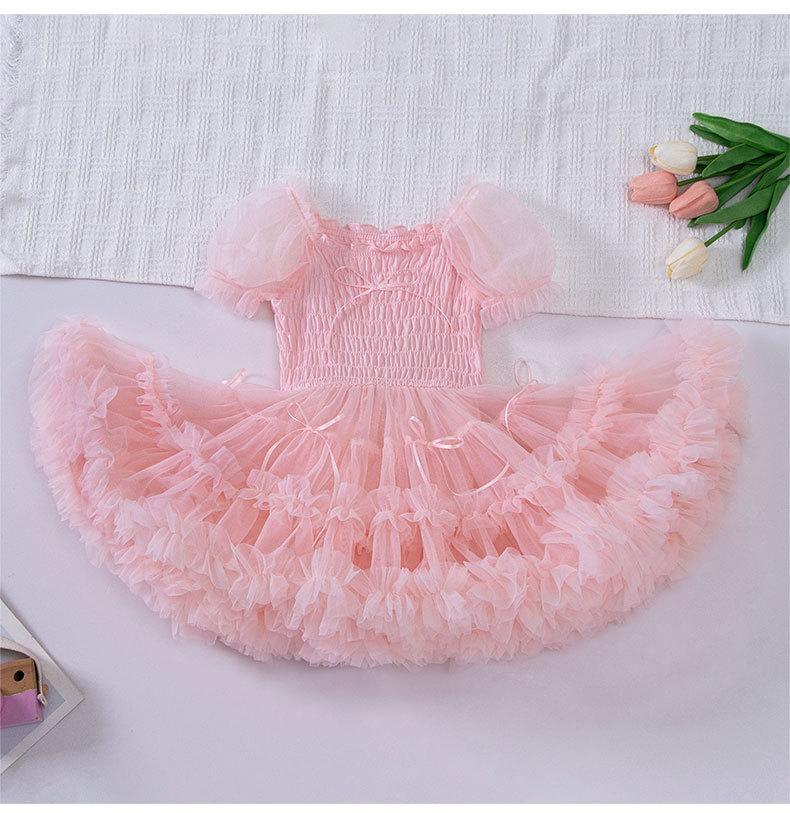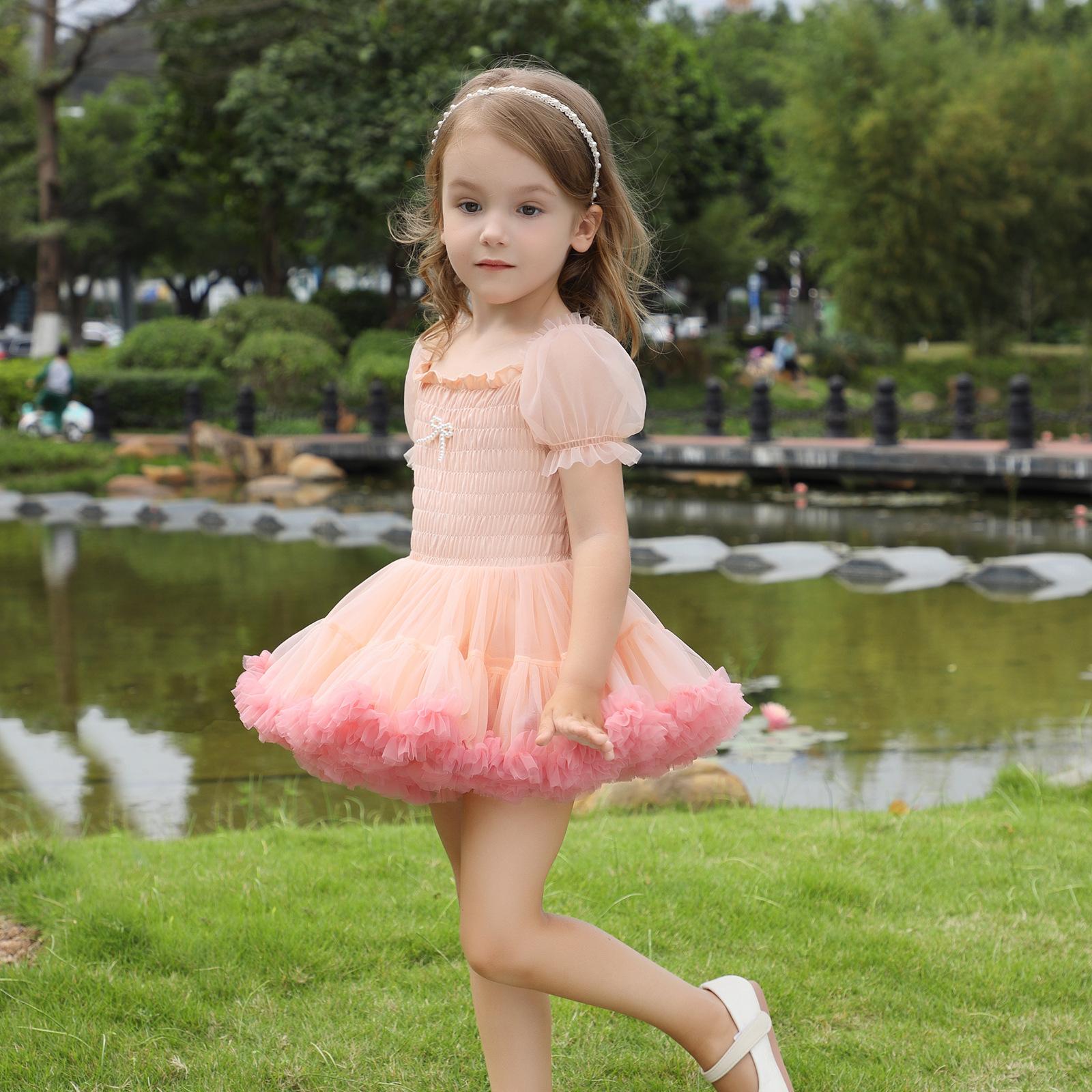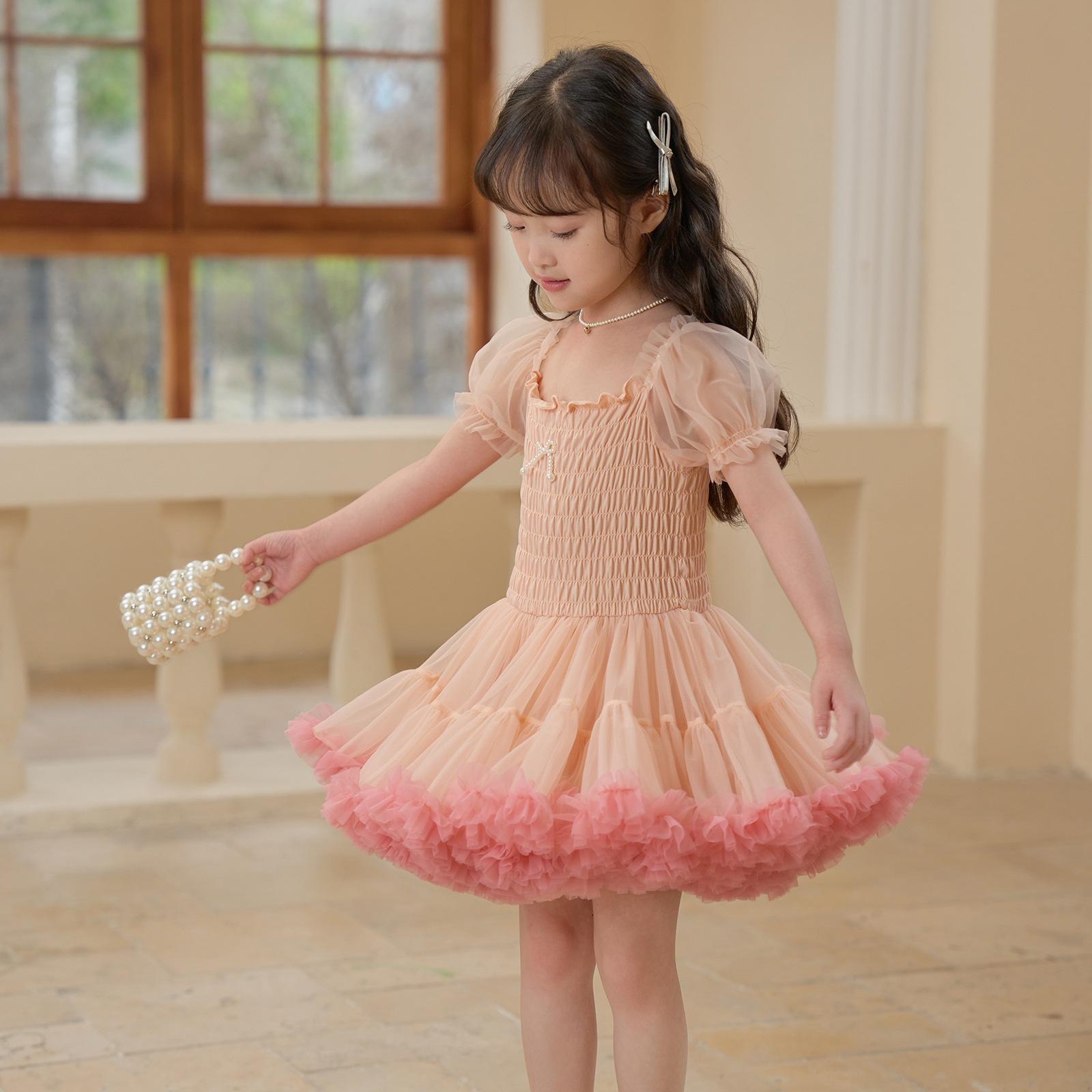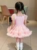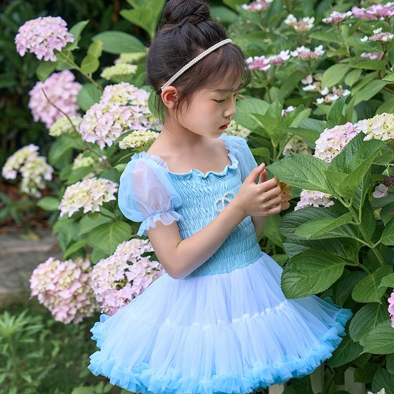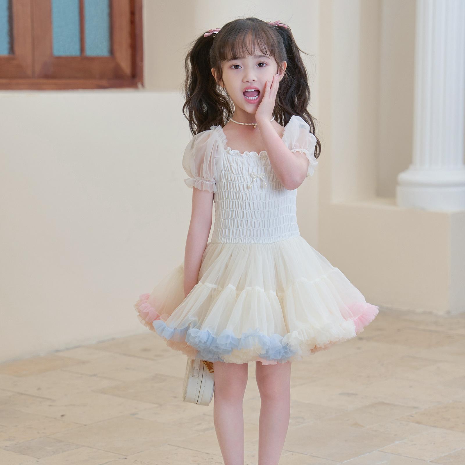 Vestido de tutú con mangas abullonadas para niñas, nuevo vestido de princesa de verano para niñas, vestido de pastel con lazo estilo occidental a la moda