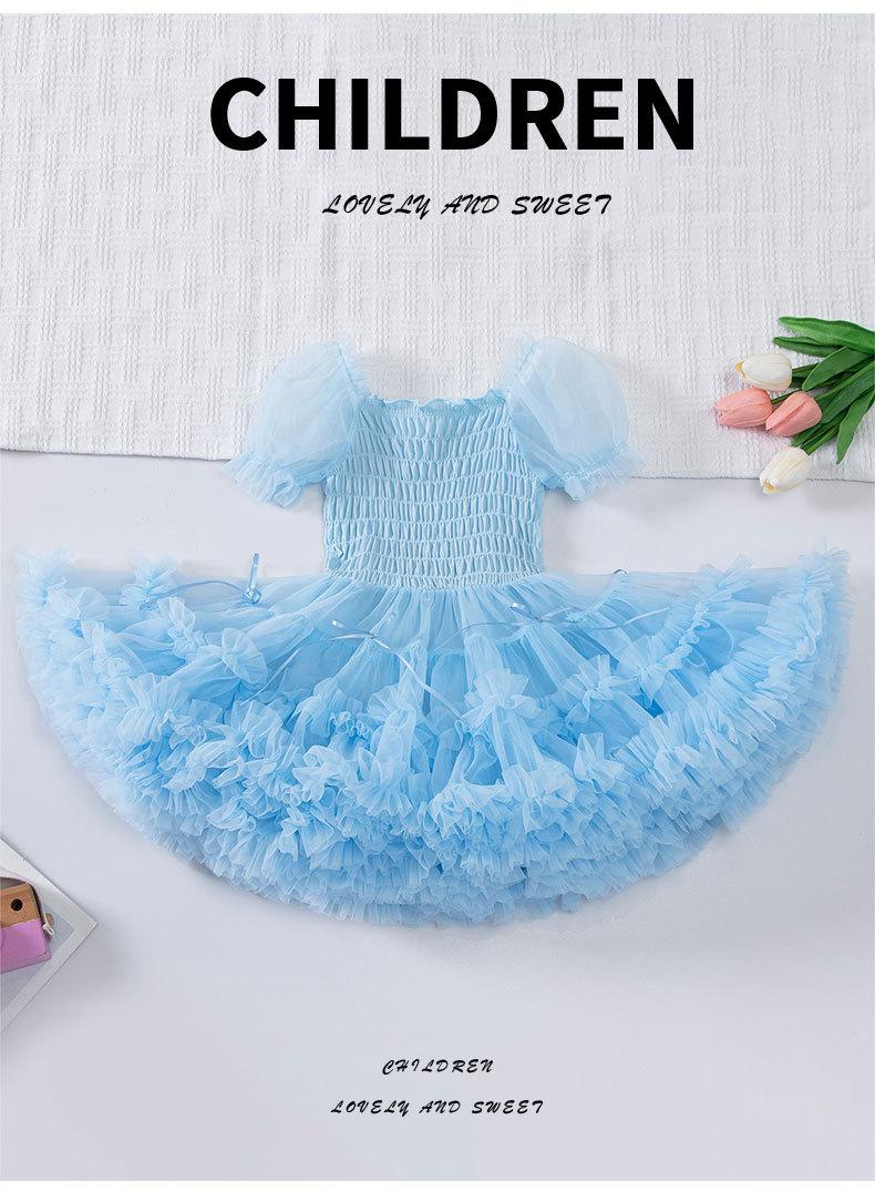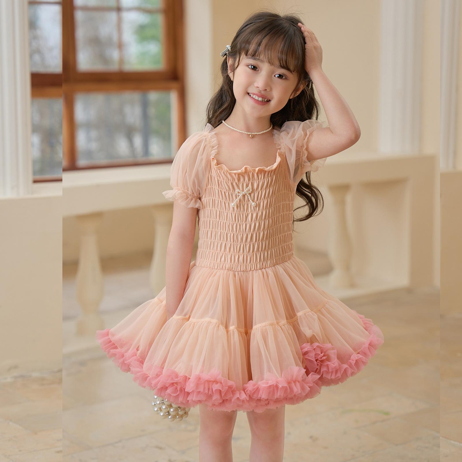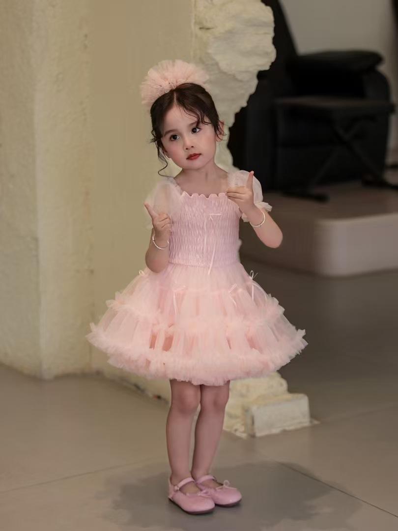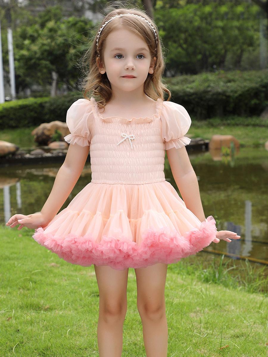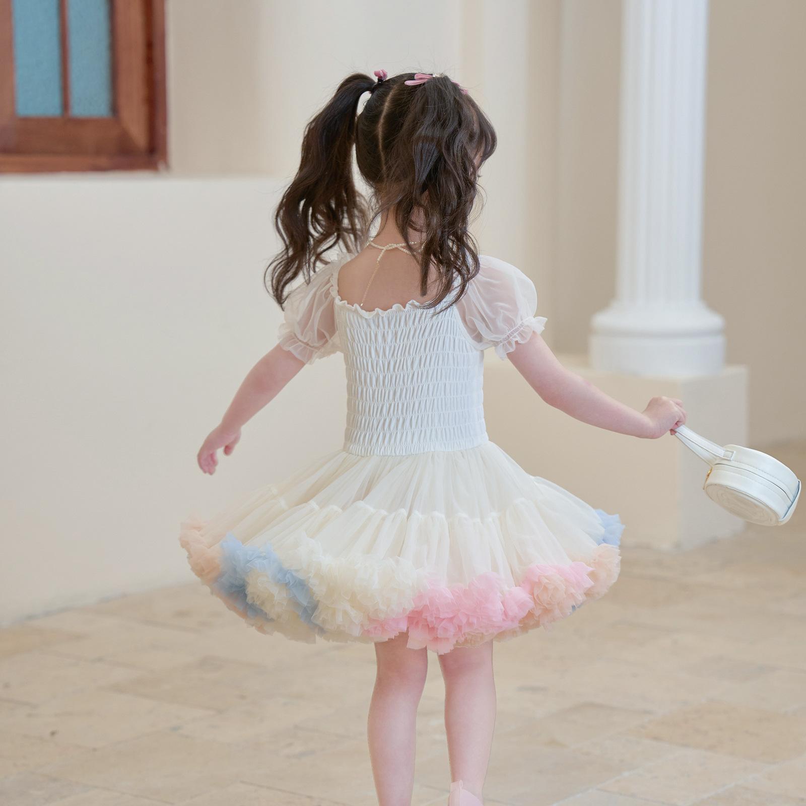 Vestido de tutú con mangas abullonadas para niñas, nuevo vestido de princesa de verano para niñas, vestido de pastel con lazo estilo occidental a la moda
