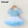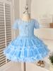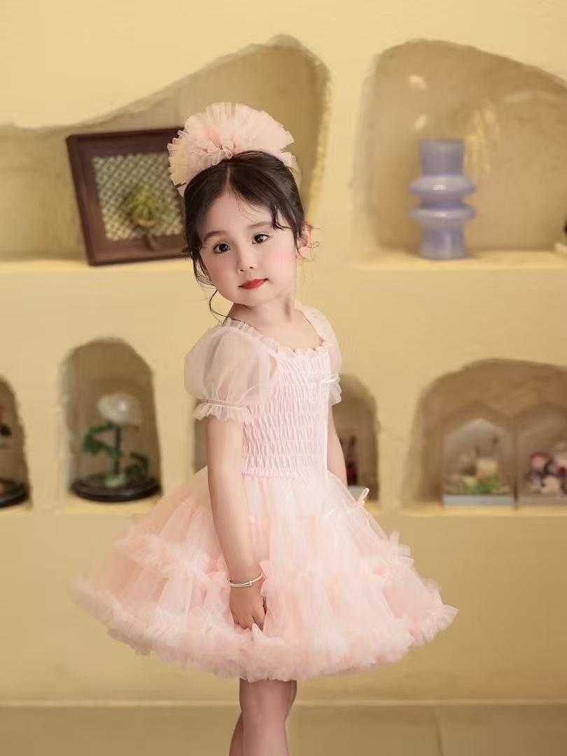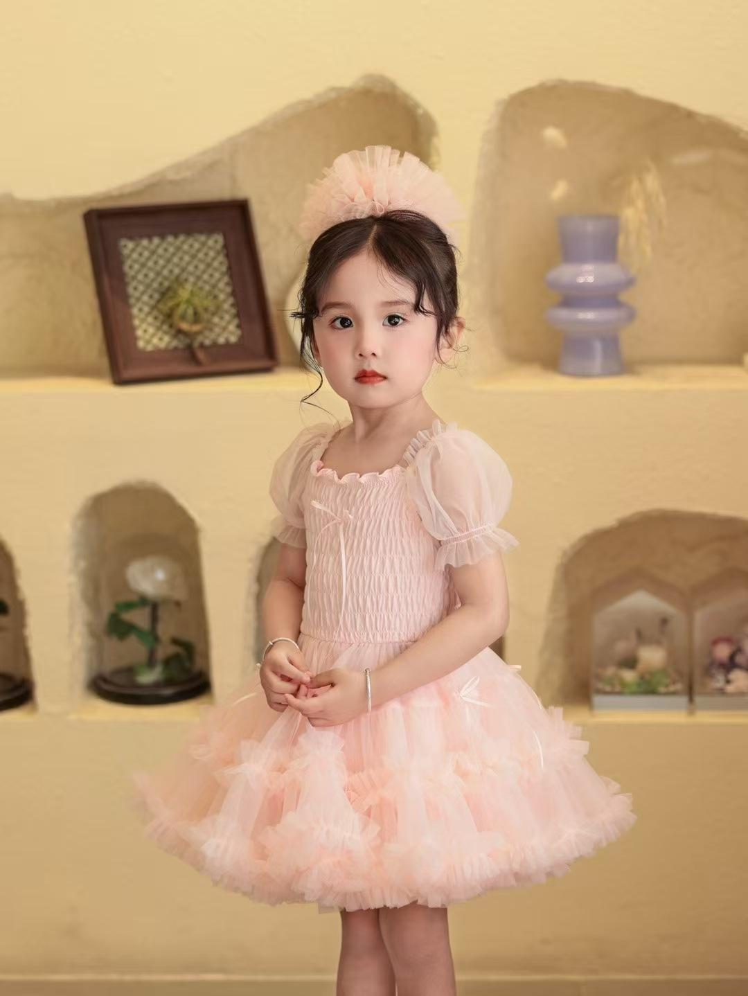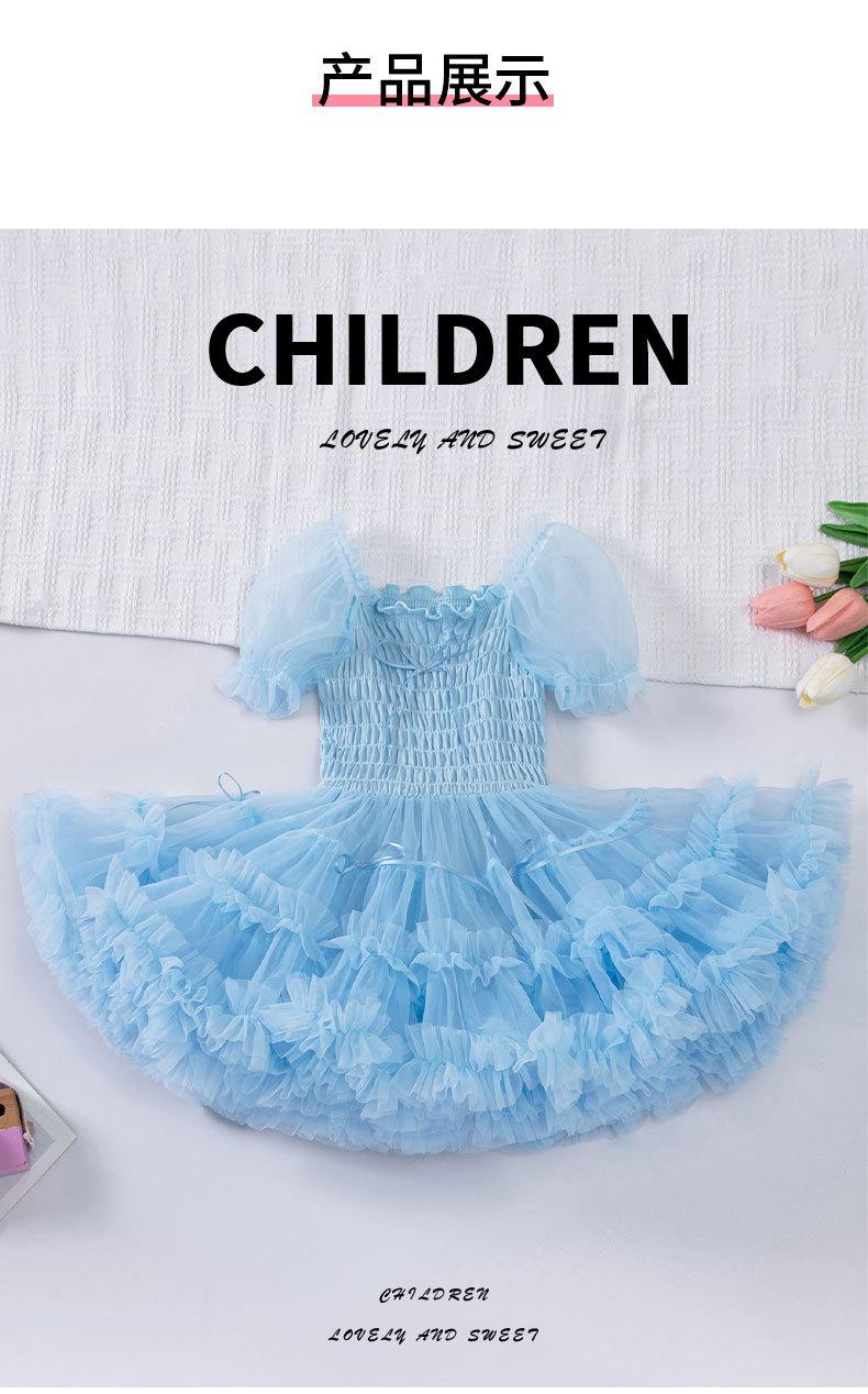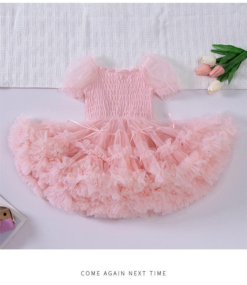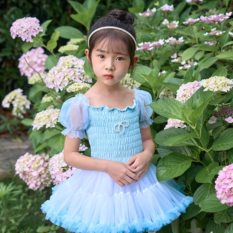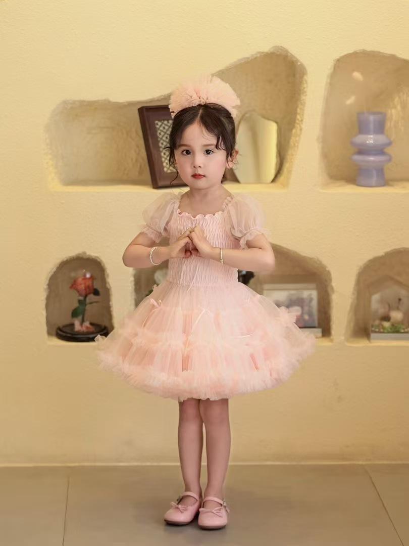 Vestido de tutú con mangas abullonadas para niñas, nuevo vestido de princesa de verano para niñas, vestido de pastel con lazo estilo occidental a la moda