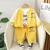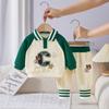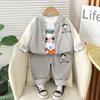 Traje infantil primavera 2025, nuevo conjunto de tres piezas con estampado de dibujos animados para bebés, informal, tridimensional, estilo occidental.