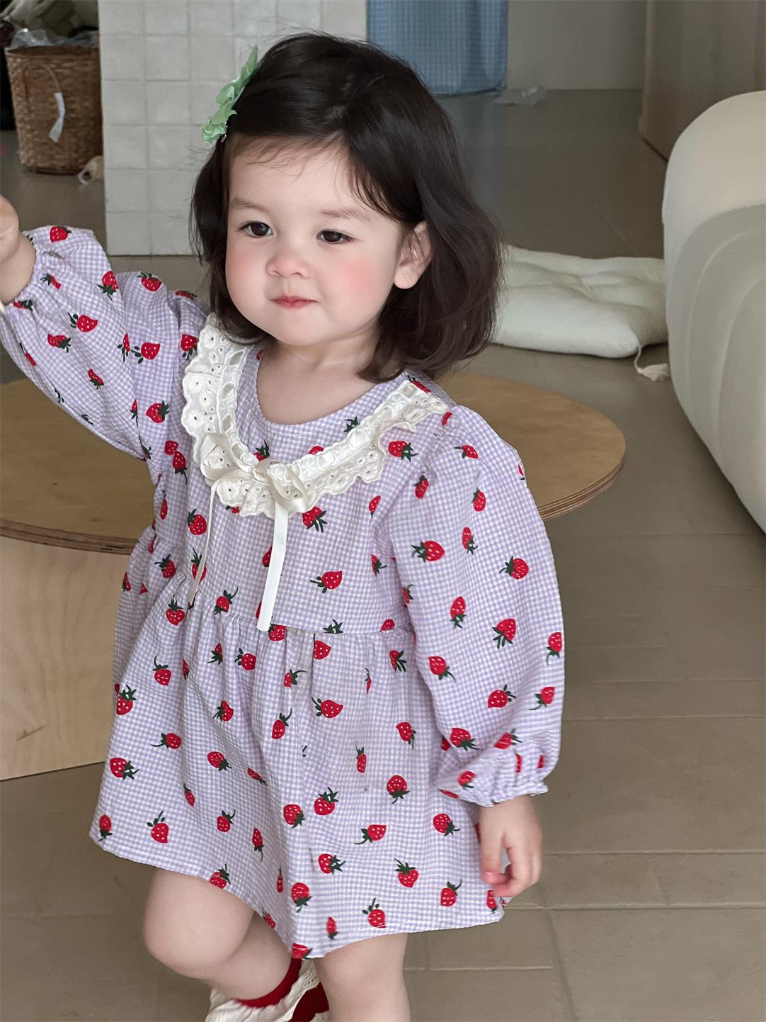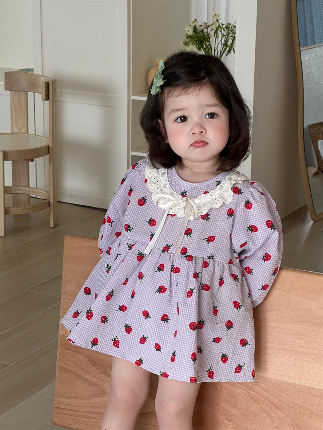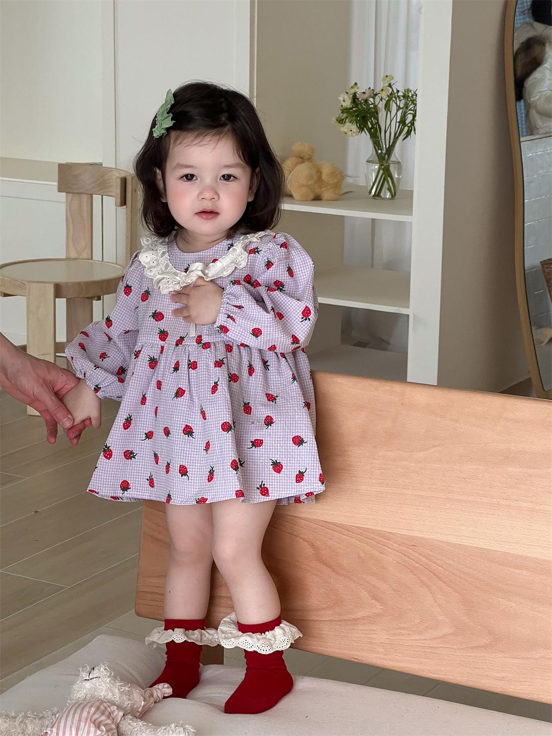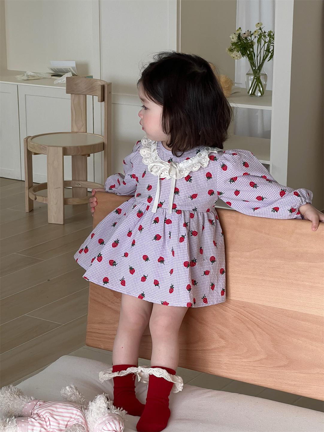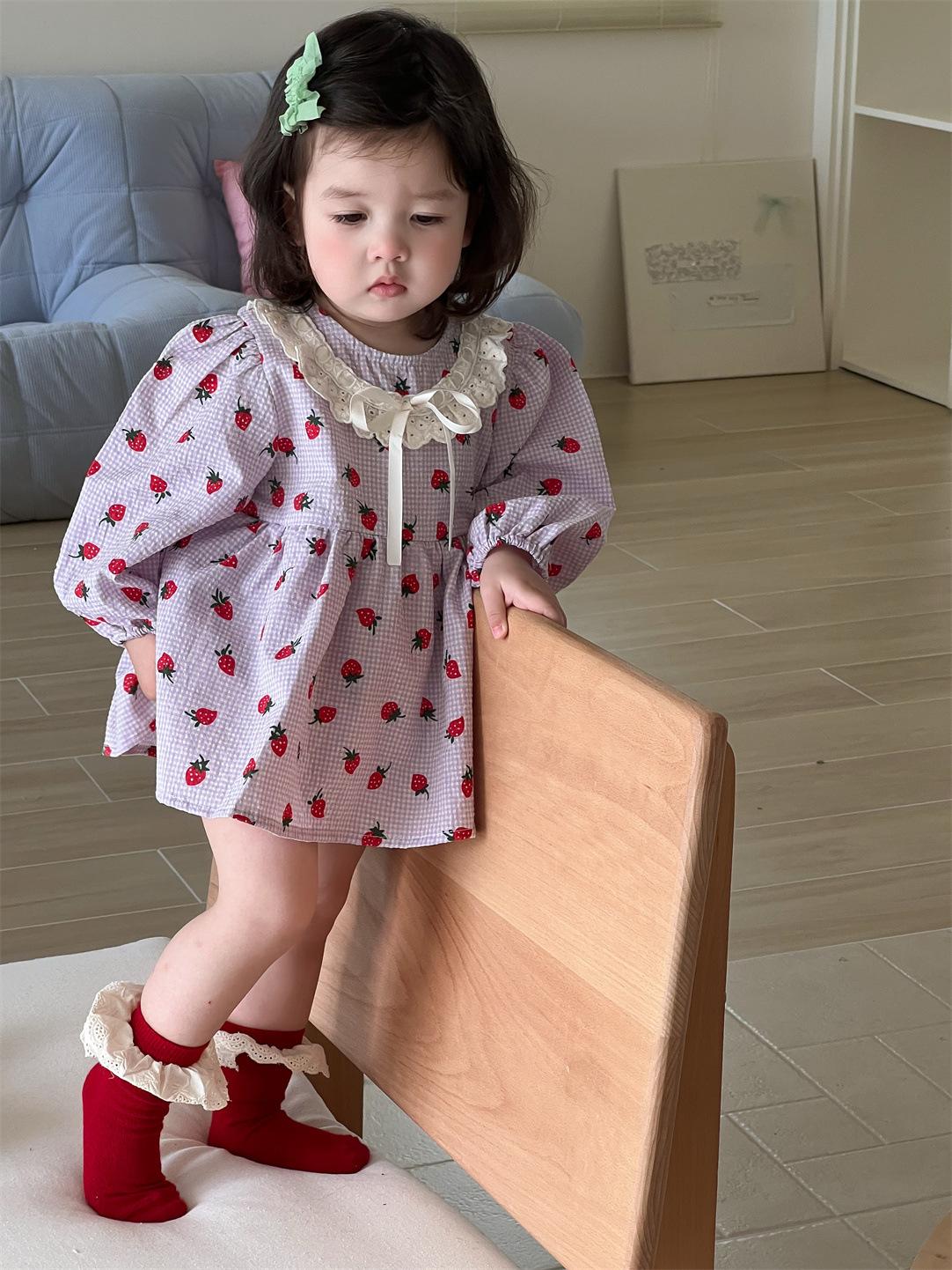Ropa de Otoño para Niños Ropa para Niños Estilo Coreano Vestido de Encaje con Bolsa para Bebé Falda de Otoño para Niñas Vestido de Princesa de Fresa