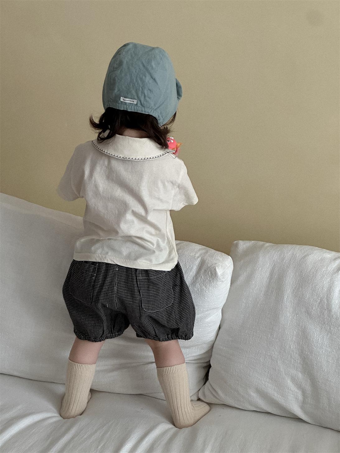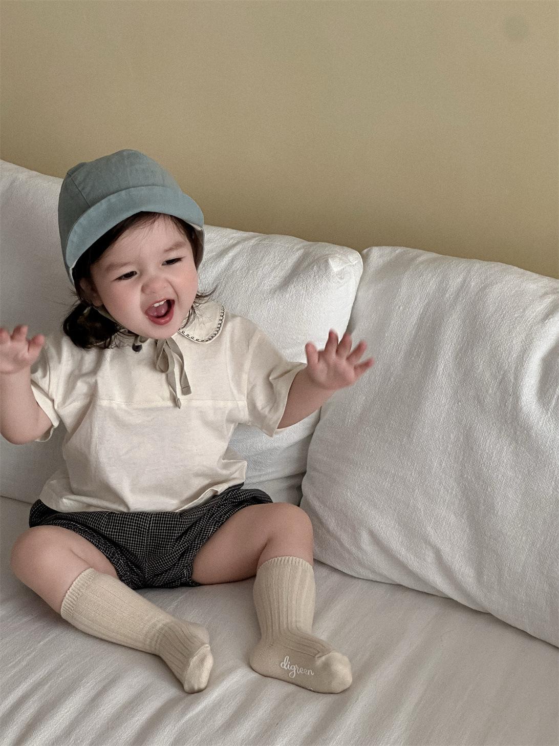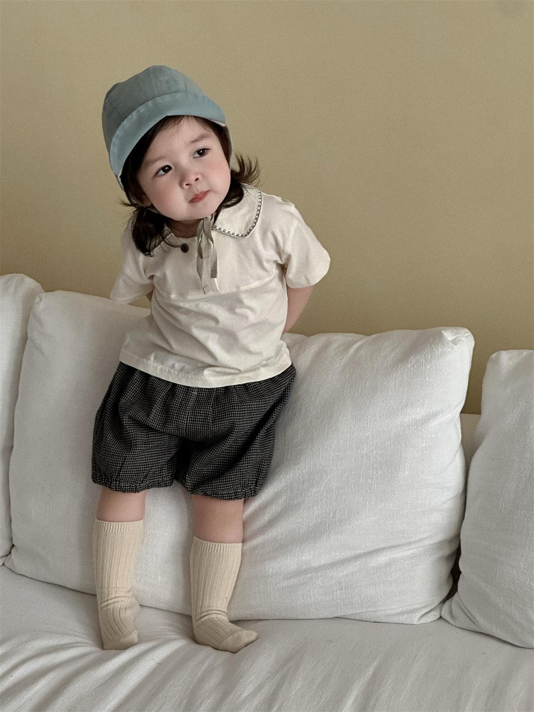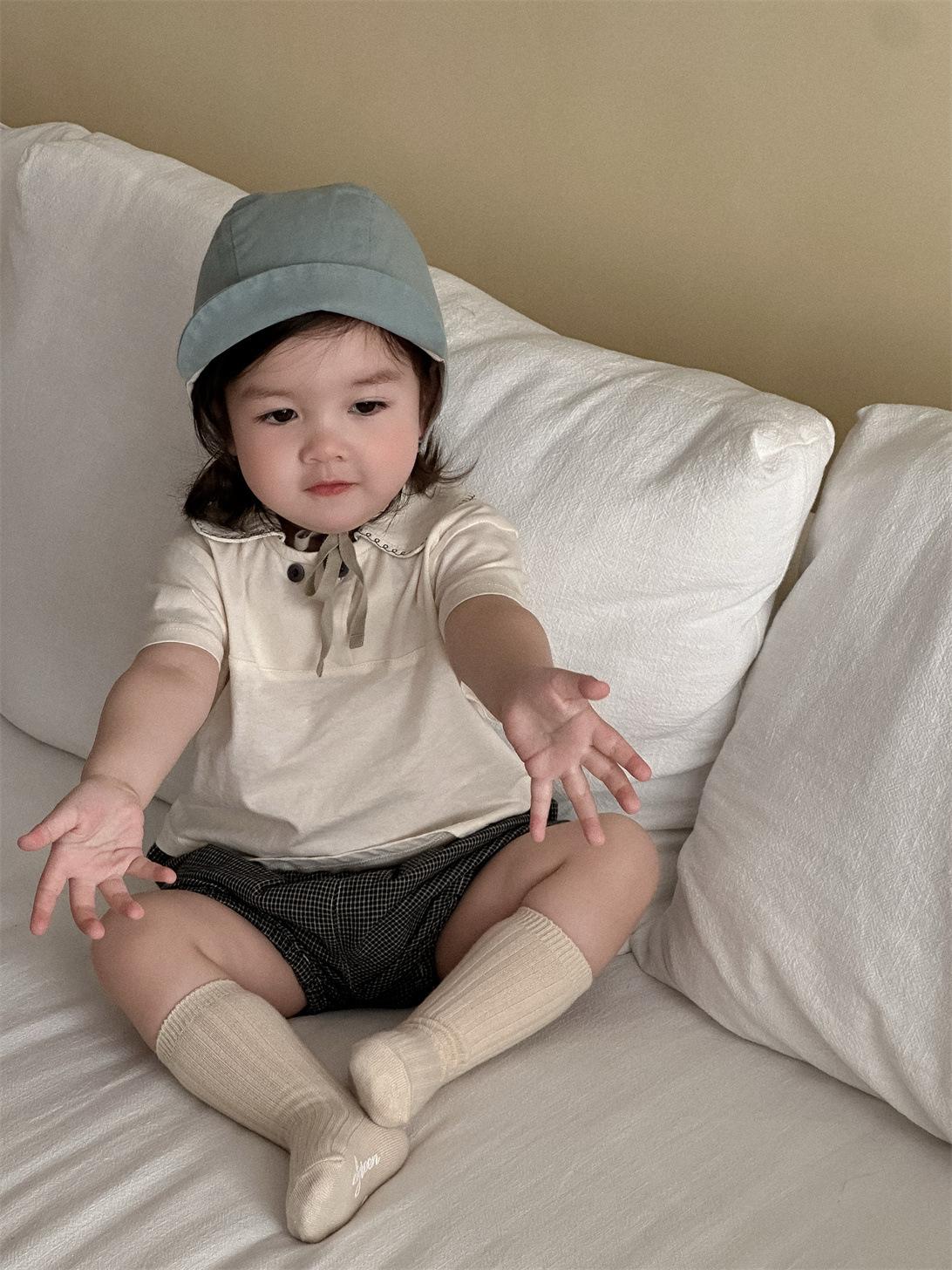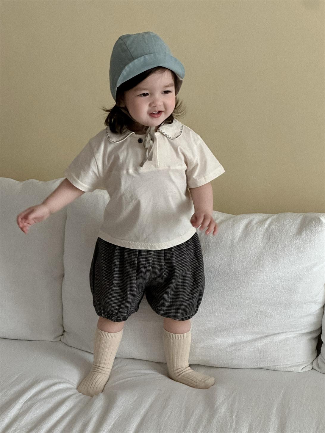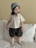 Ropa de bebé, ropa fina coreana para niños, verano 2025, nueva camiseta con solapa y pantalones cortos para niñas