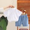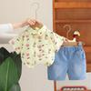 Traje nuevo de verano 2025 para niños Ropa infantil de manga corta Camisa de dibujos animados con estampado completo Traje de verano Conjunto de moda de dos piezas