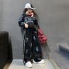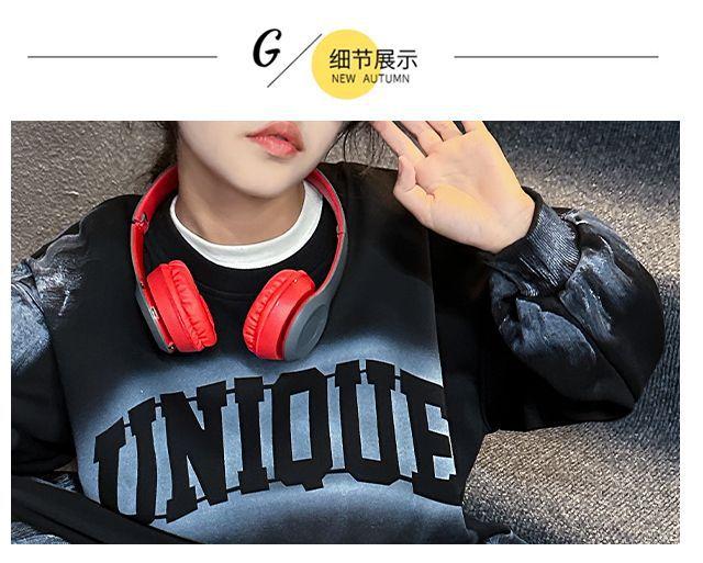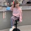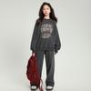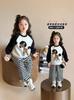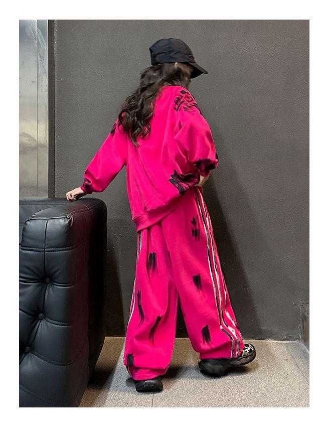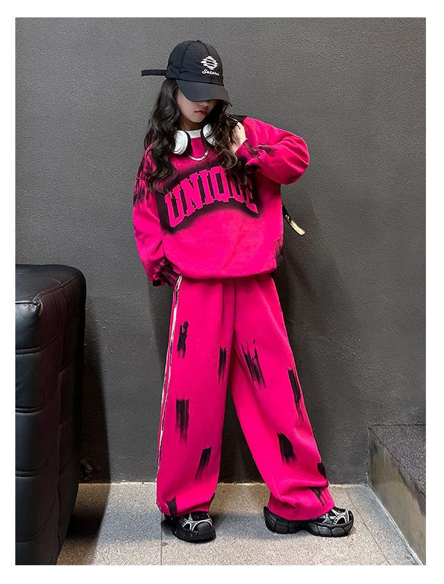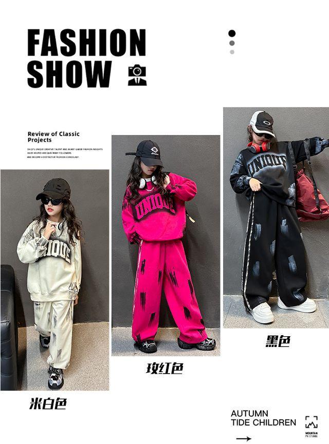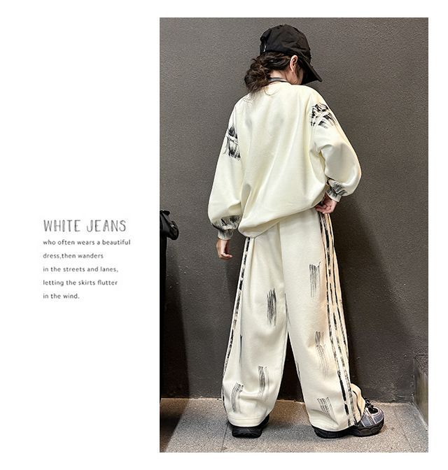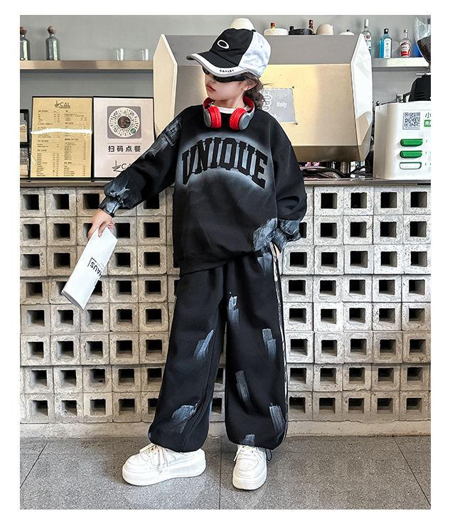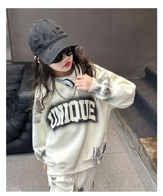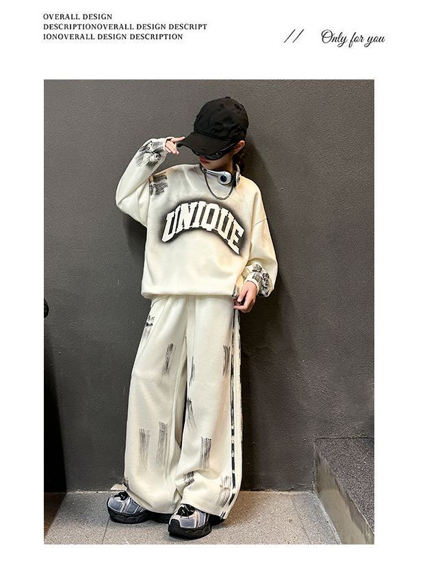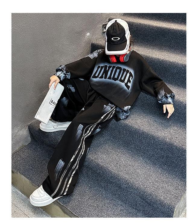Conjunto deportivo de estilo coreano para niñas de talla mediana y grande, primavera y otoño, nuevo y elegante conjunto de dos piezas con pantalones a rayas y parte superior con letras a la moda.
