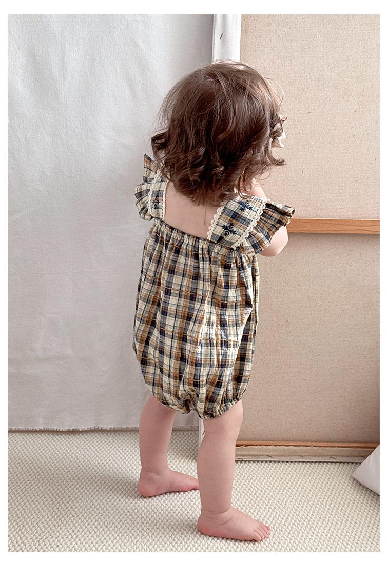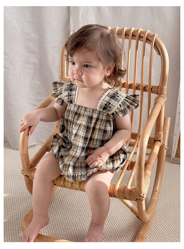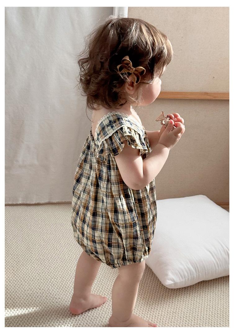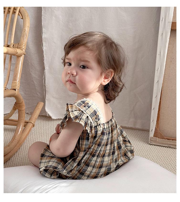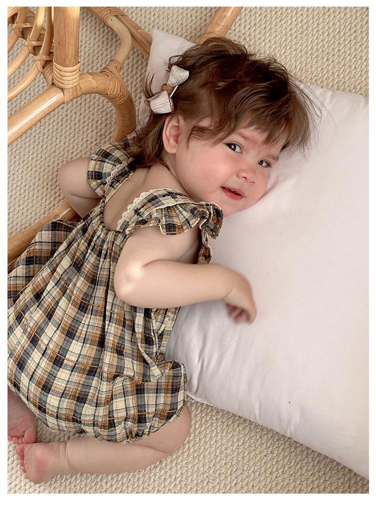 Bolso para Bebé Estilo Escandinavo, Bolso Bandolera de Verano a Cuadros para Niña, Harem Lindo con Mangas Volantes Pequeñas para Niña