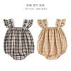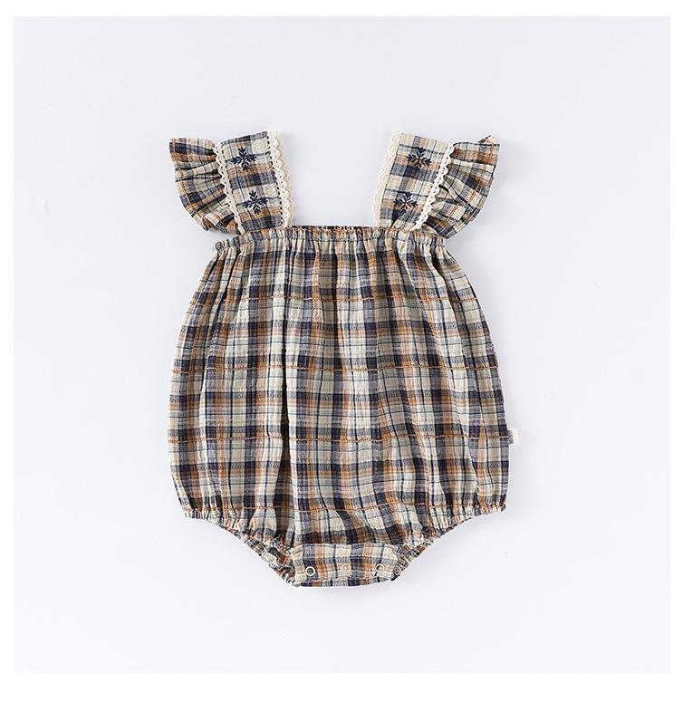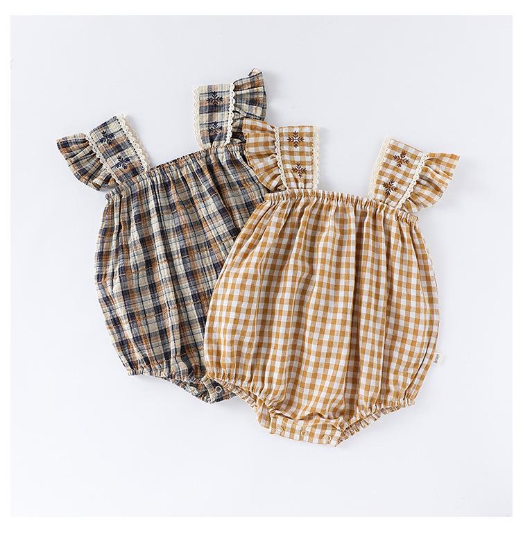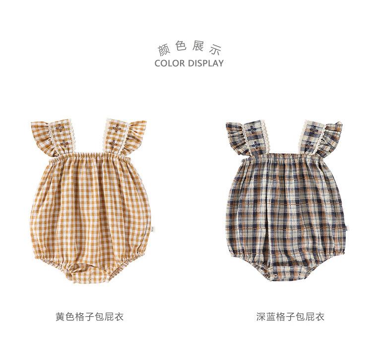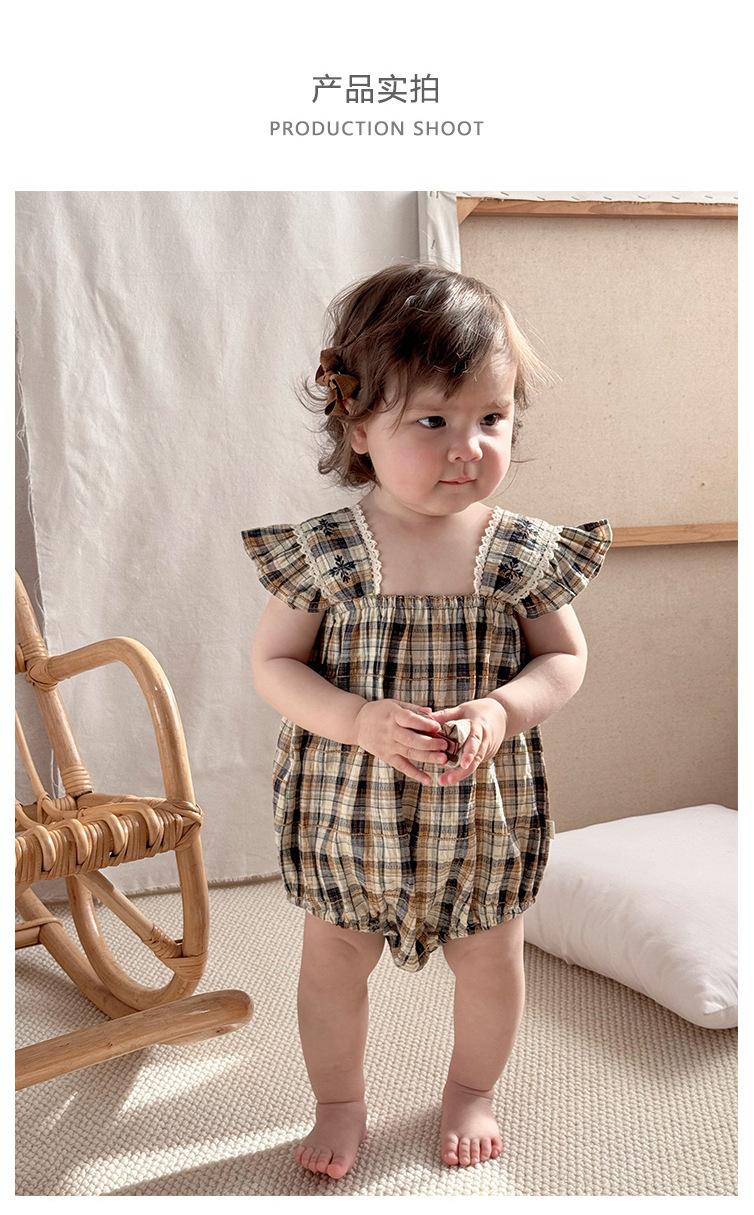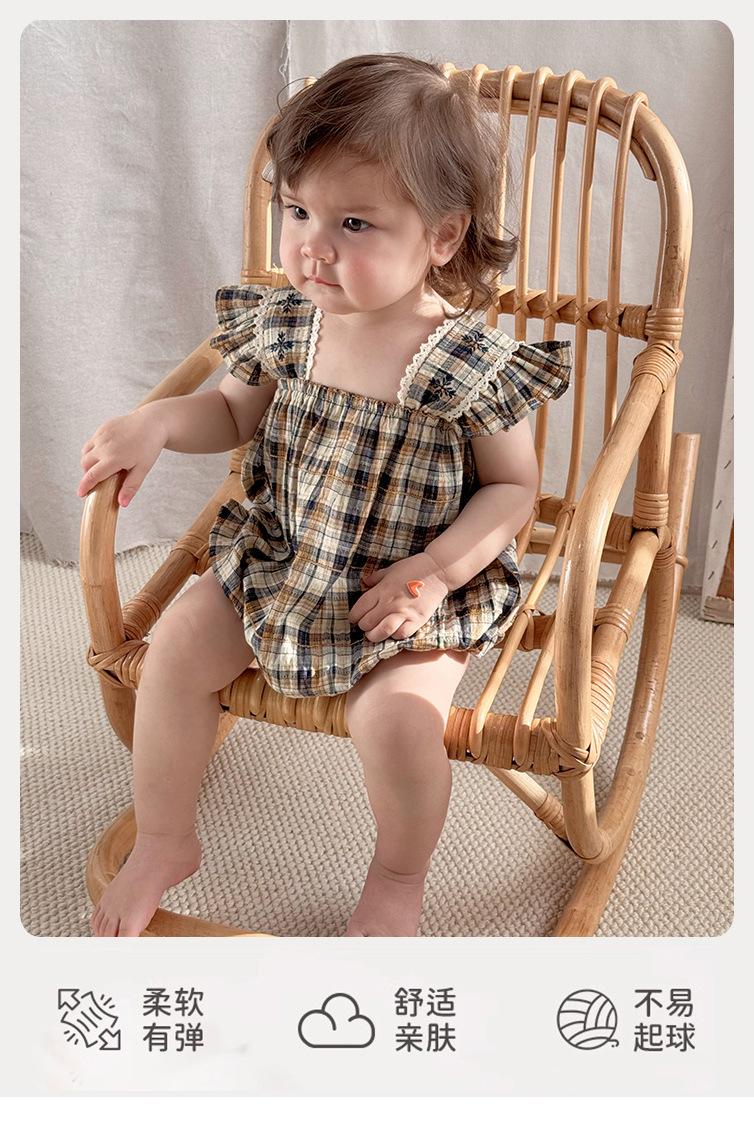 Bolso para Bebé Estilo Escandinavo, Bolso Bandolera de Verano a Cuadros para Niña, Harem Lindo con Mangas Volantes Pequeñas para Niña