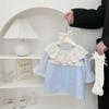 Vestido coreano para niña bebé, primavera/verano 2025, camisa a cuadros para niña, falda lencero estilo occidental, conjunto de dos piezas