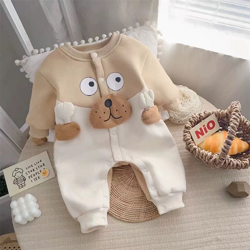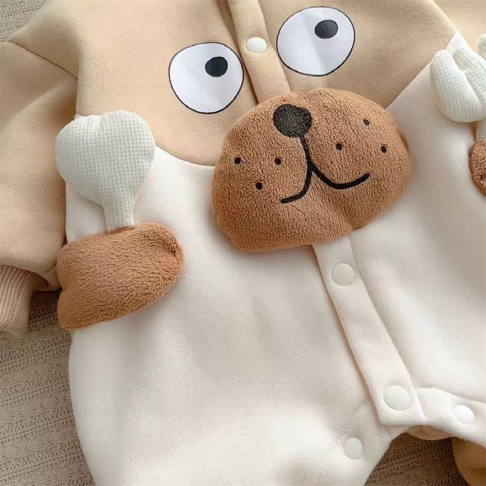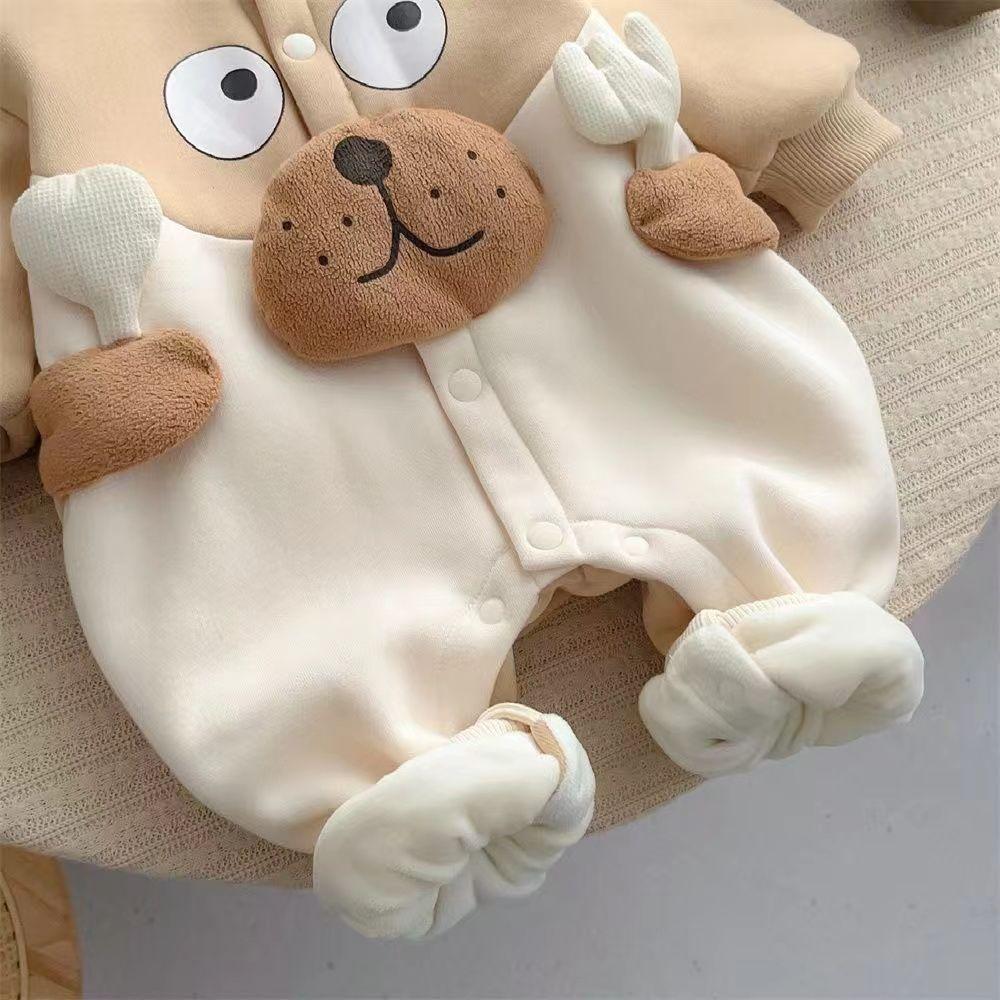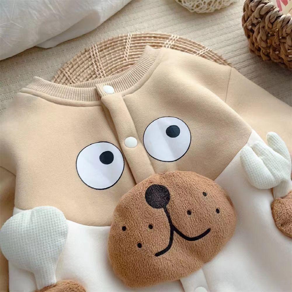 Traje Grueso para Bebé para Trepar, Estampado de Cachorro de Dibujos Animados con Costuras, Manga Larga con Forro Polar, Ropa Cálida