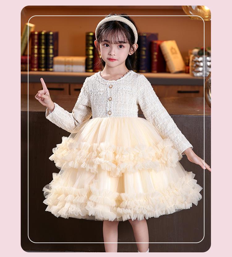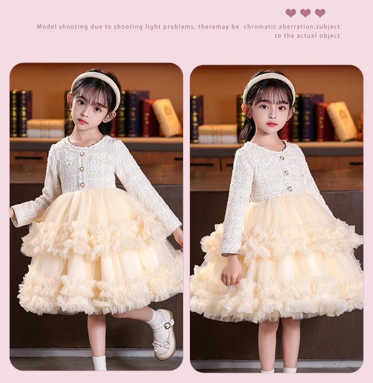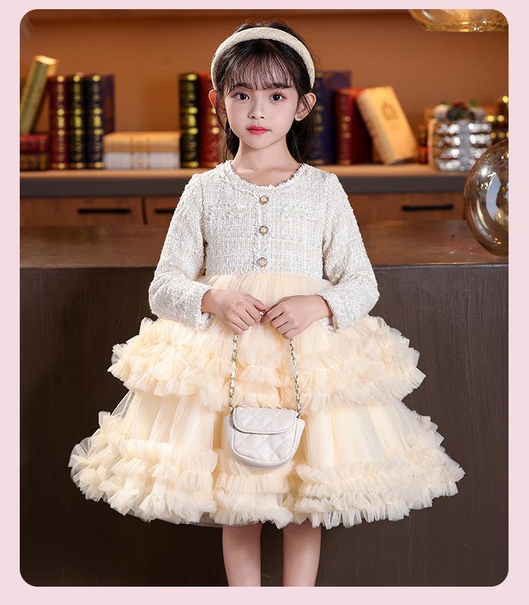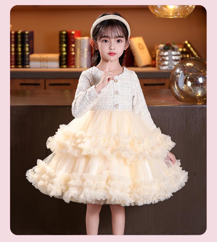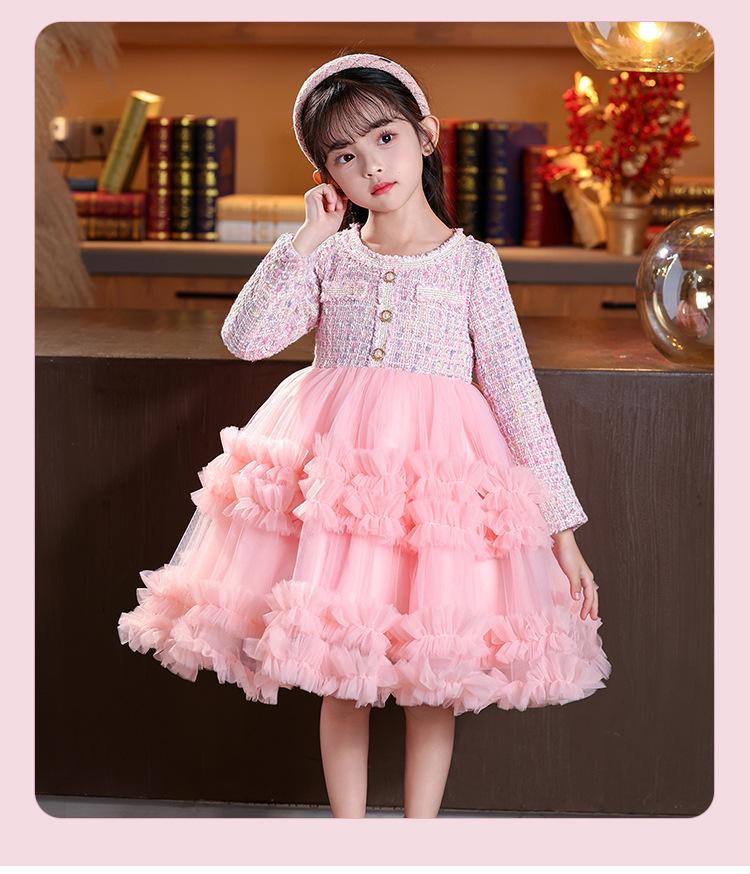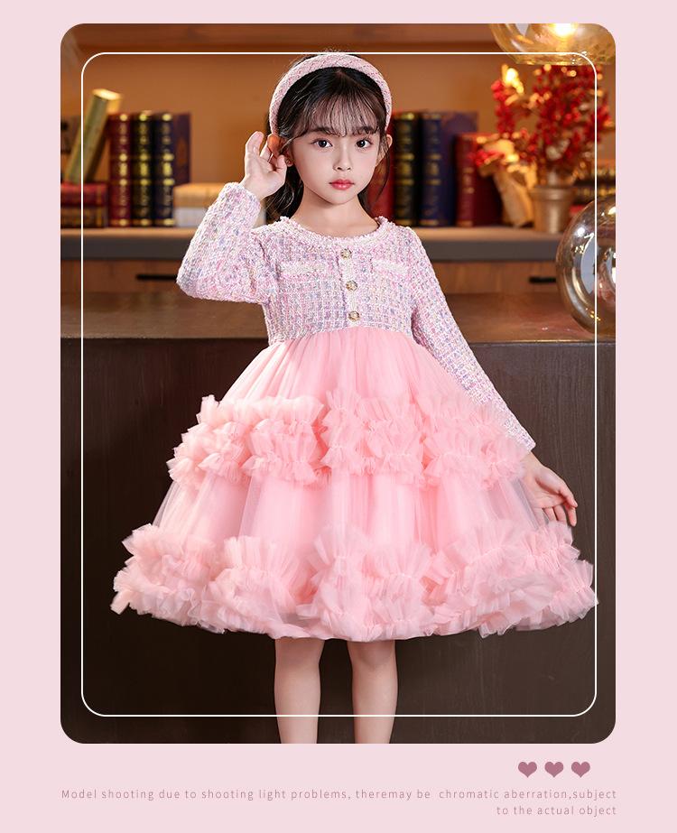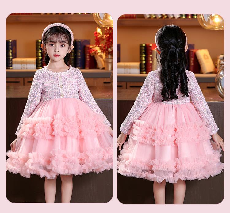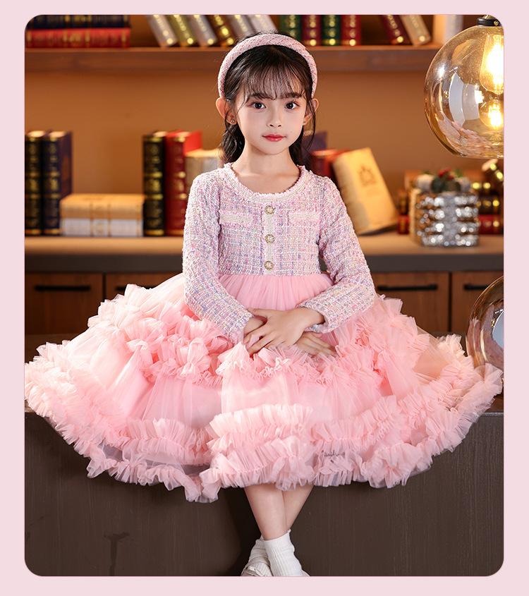 Vestido de niña superventas en stock, estilo invernal, novedad 2025, falda abullonada, falda pastel, falda infantil.