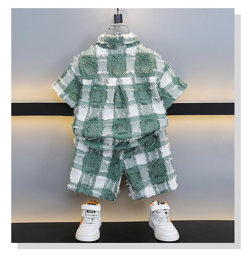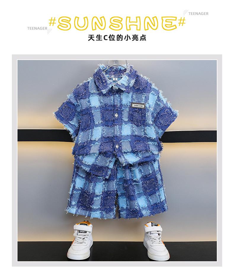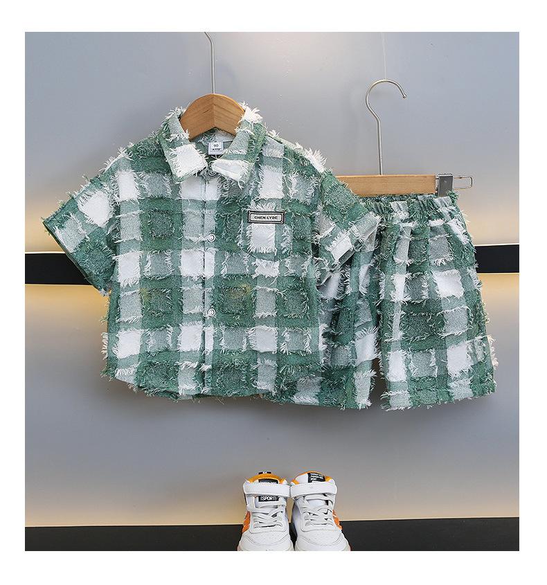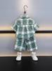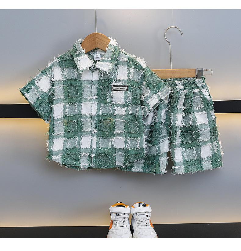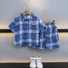 Conjunto de camisa de verano para niño 2025, nuevo conjunto coreano de ropa de calle para bebé, conjunto de dos piezas de manga corta a la moda para niño
