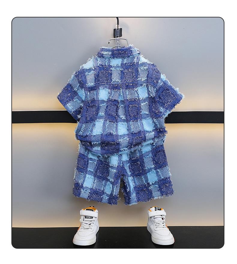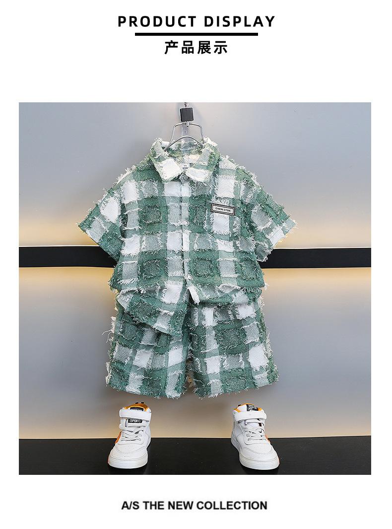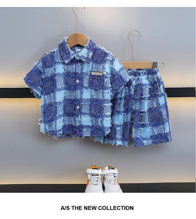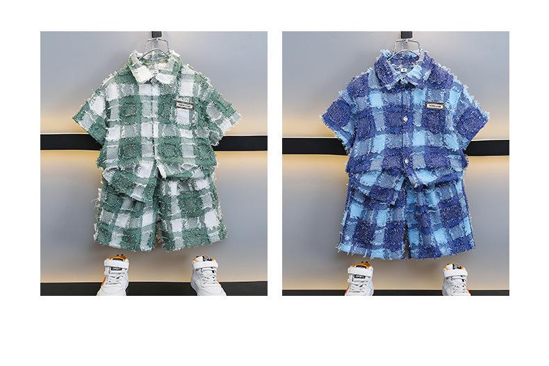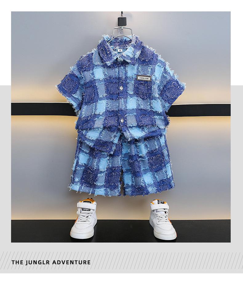 Conjunto de camisa de verano para niño 2025, nuevo conjunto coreano de ropa de calle para bebé, conjunto de dos piezas de manga corta a la moda para niño