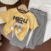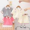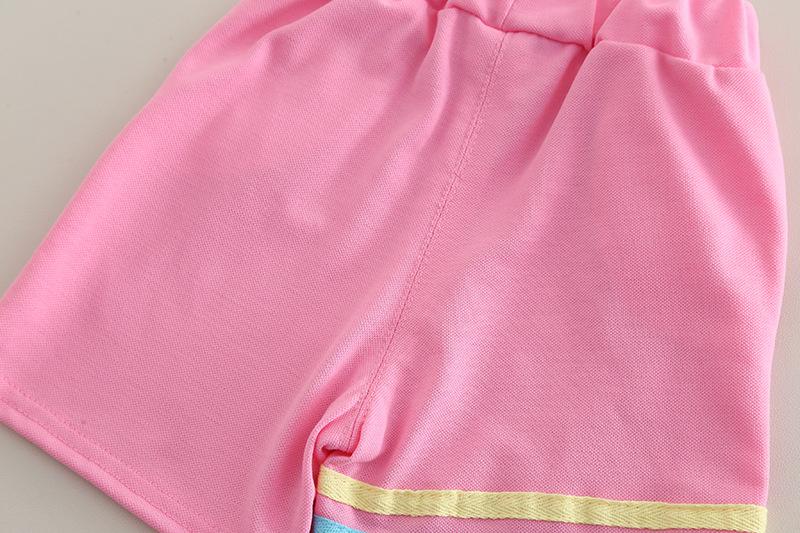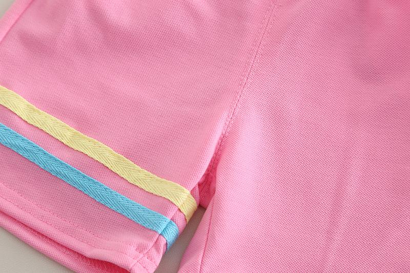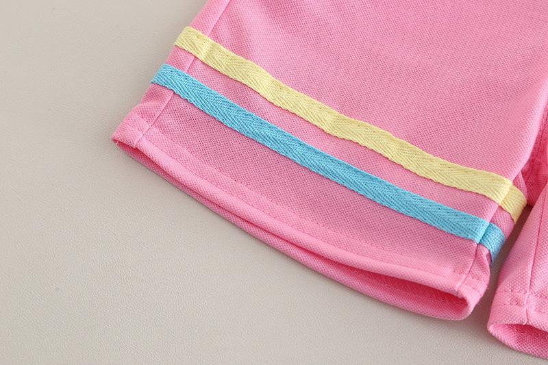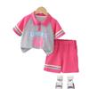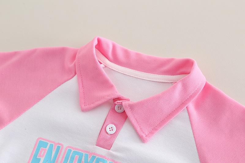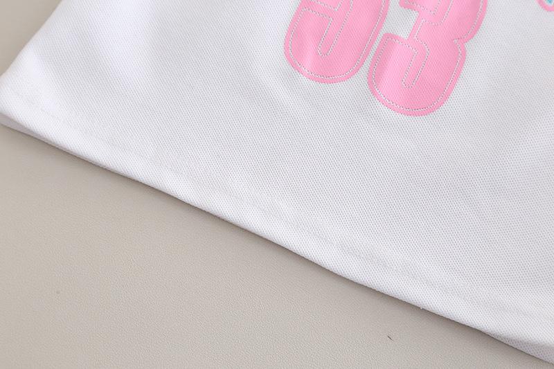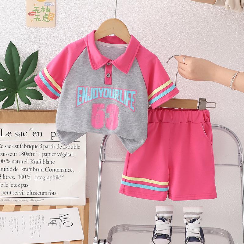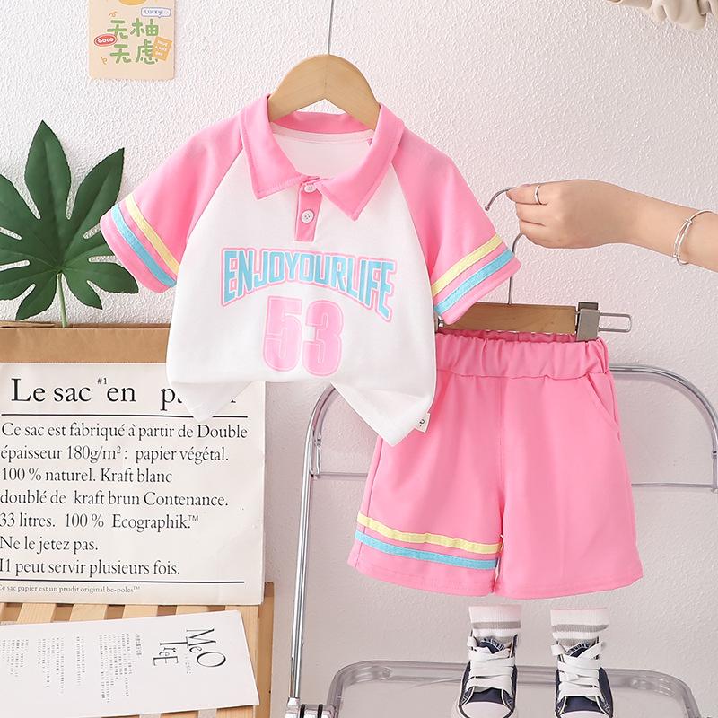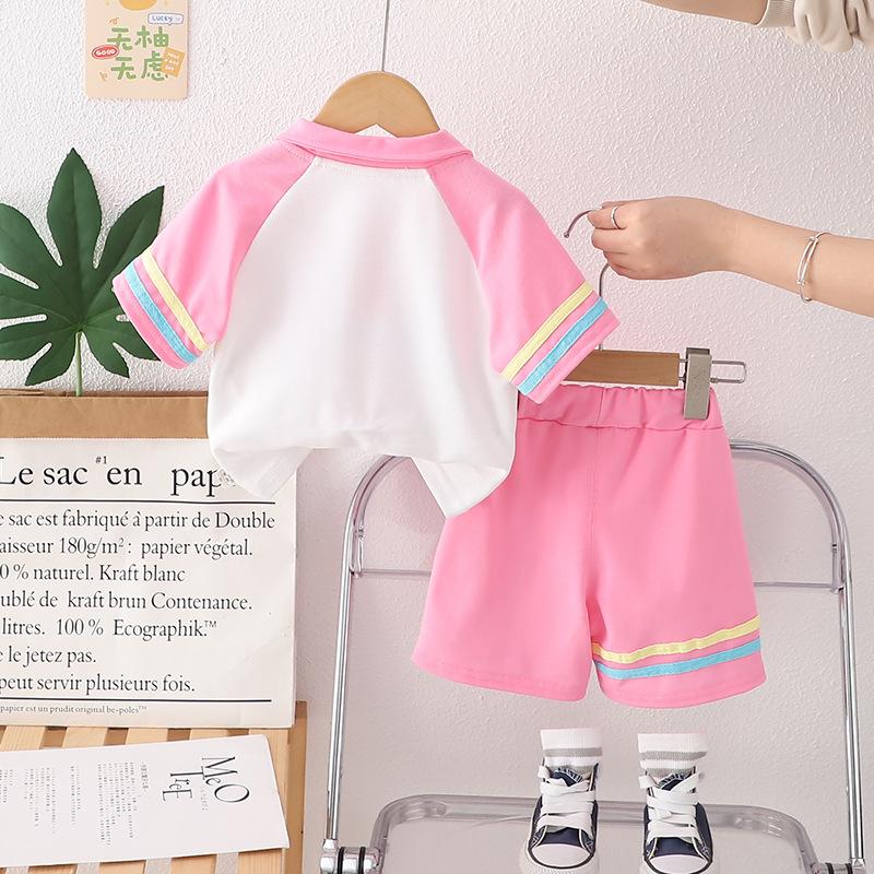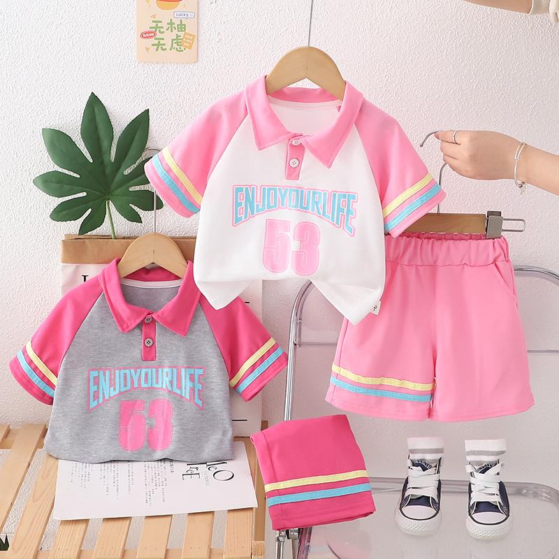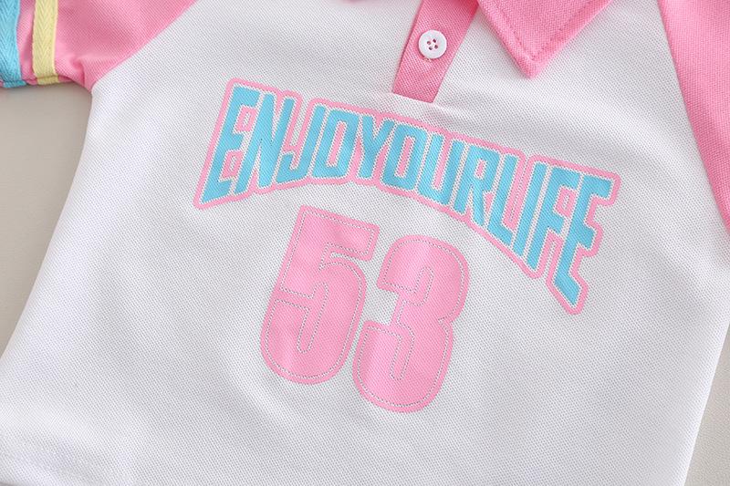 Traje Delgado de Verano para Bebé Niña Ropa para Niños Infantil Combinación de Colores Letra Polo Manga Corta Conjunto de Dos Piezas Moderno