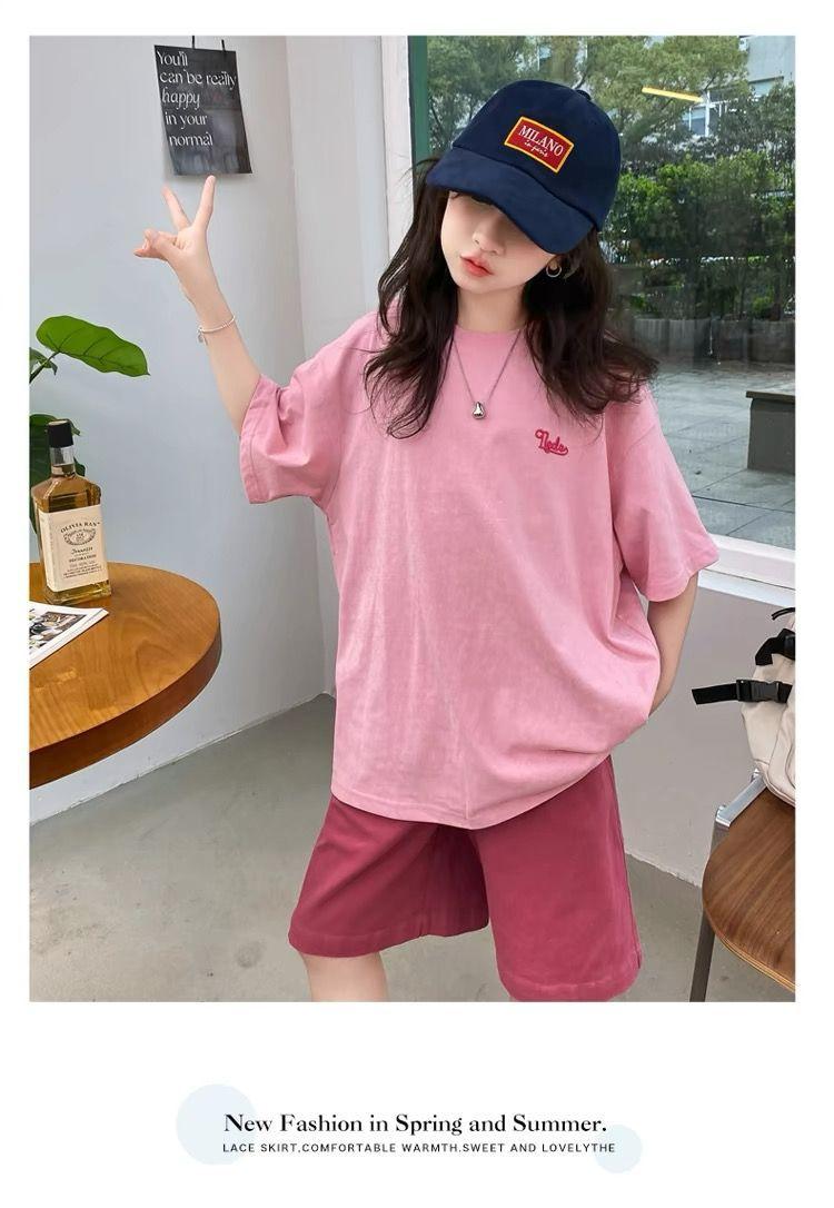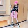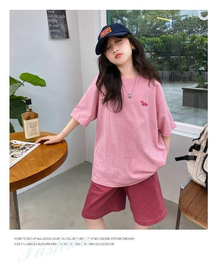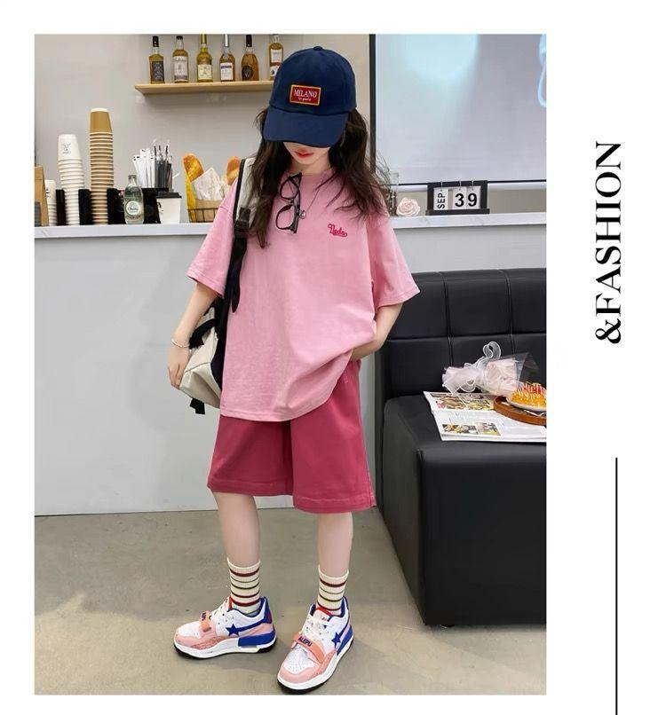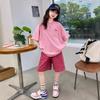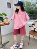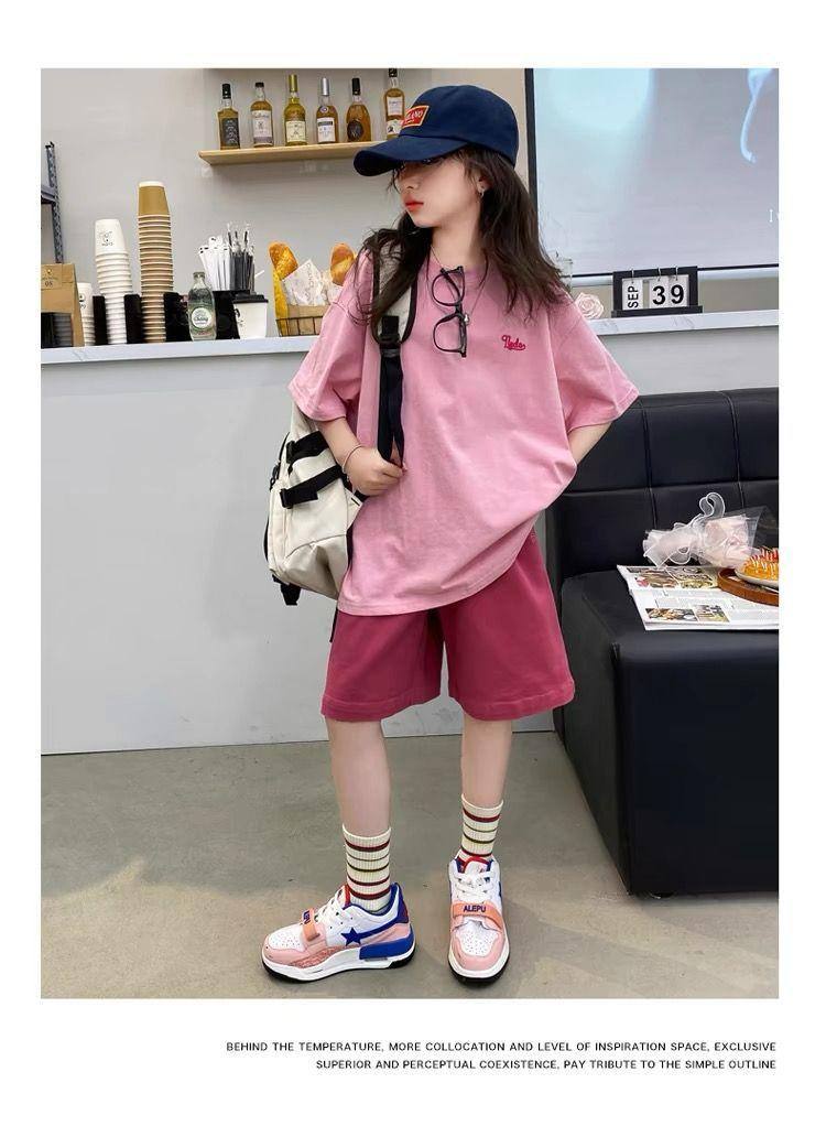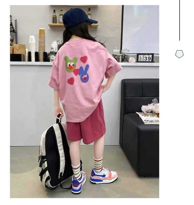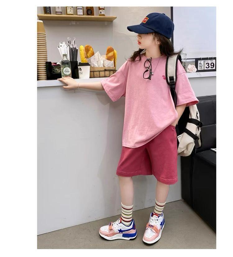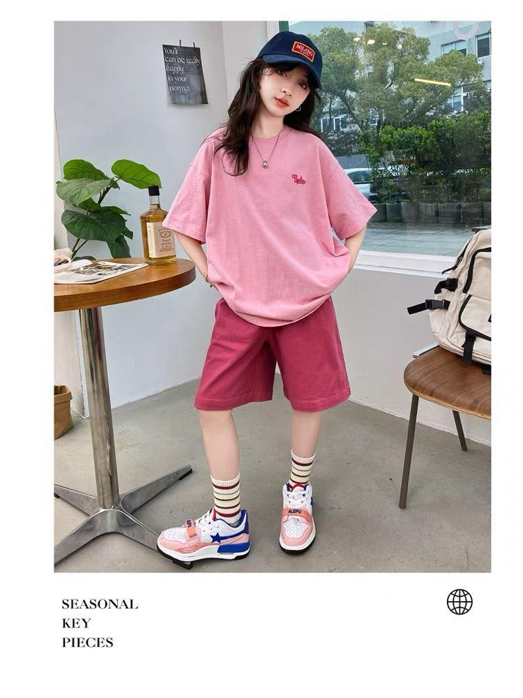 Traje deportivo de ocio para niñas Verano Celebridad de Internet Niños Estilo occidental Camiseta suelta para niña Shorts Calle Frita Conjunto de dos piezas