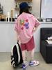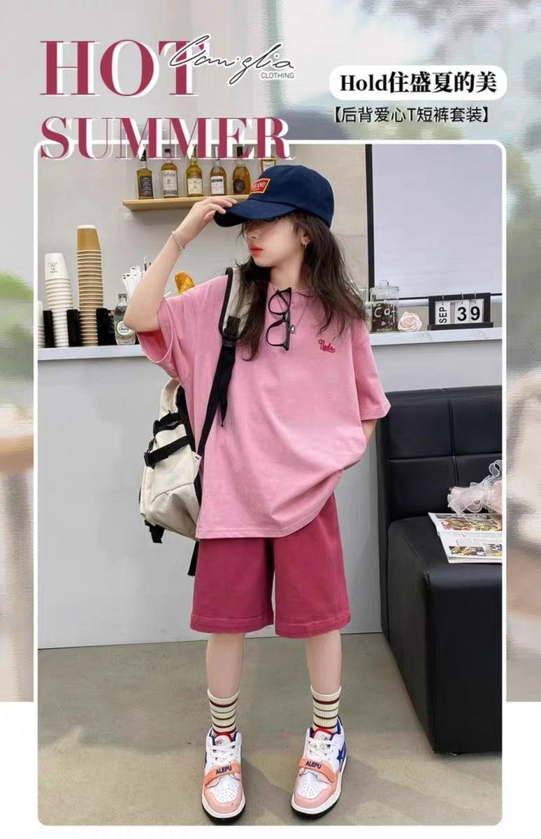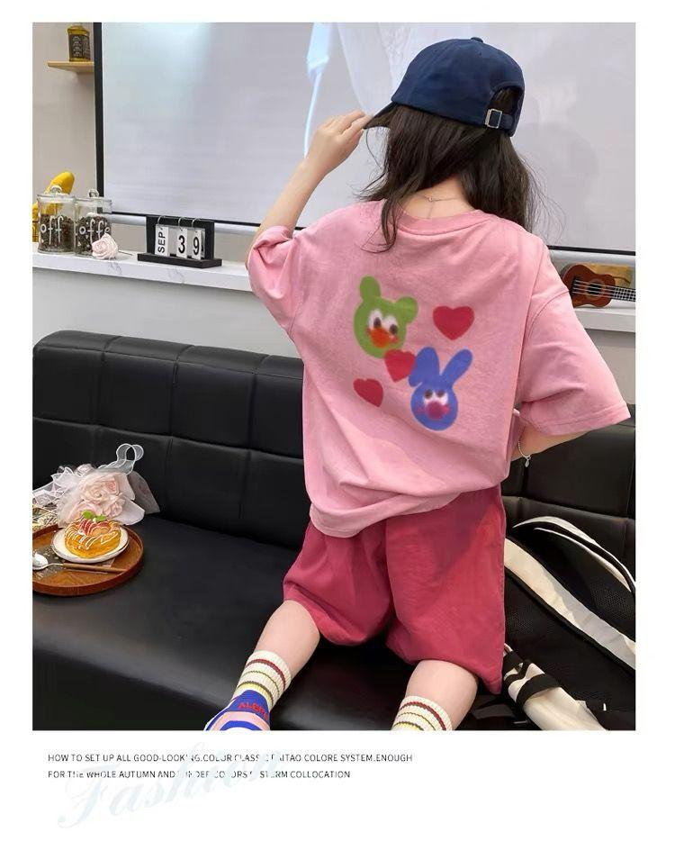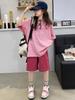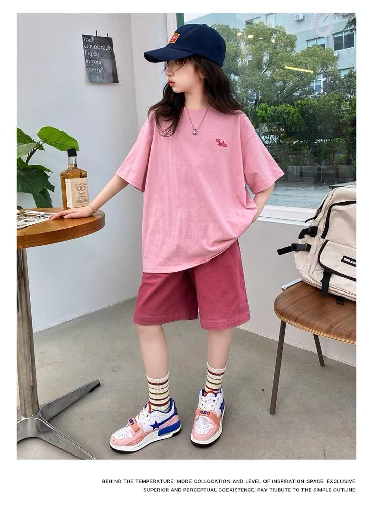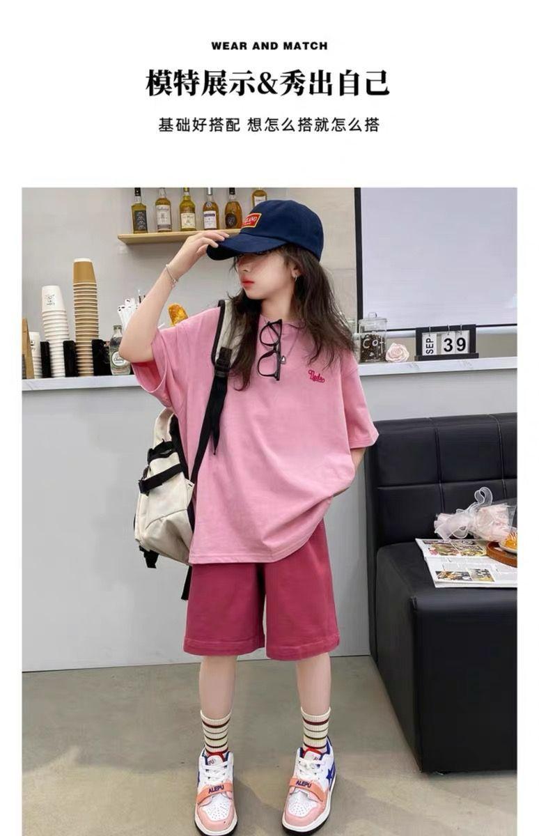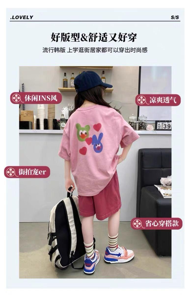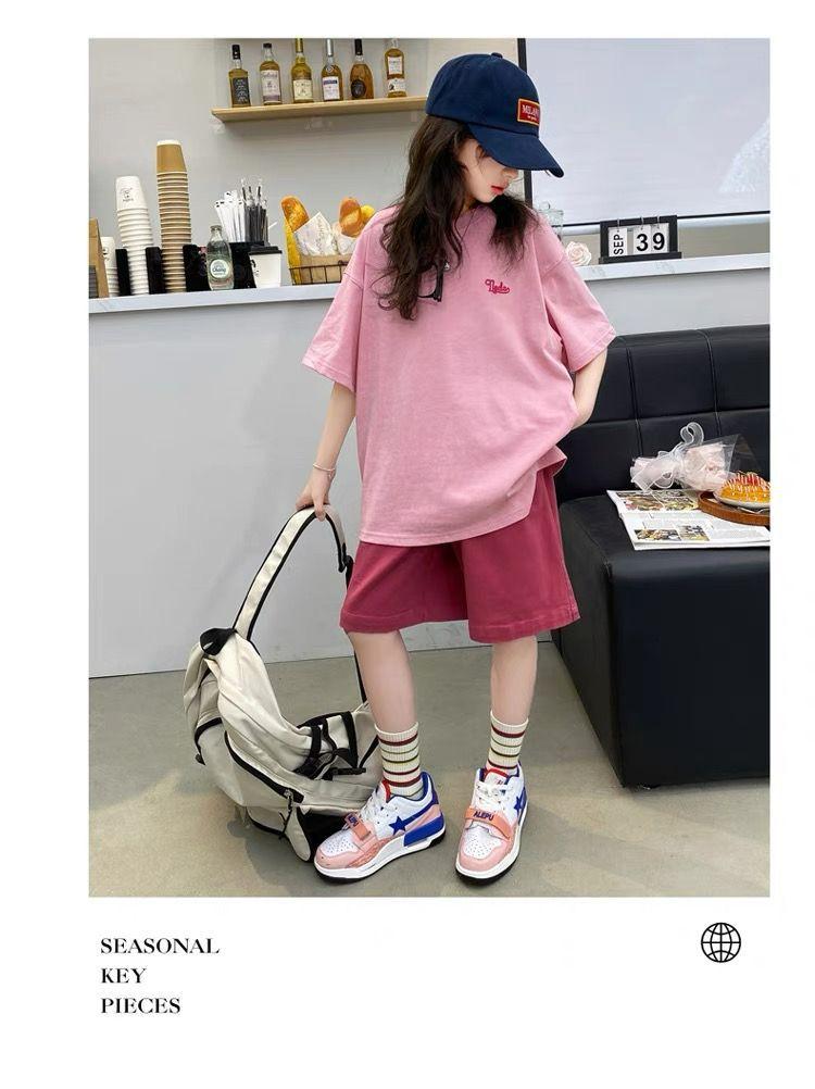 Traje deportivo de ocio para niñas Verano Celebridad de Internet Niños Estilo occidental Camiseta suelta para niña Shorts Calle Frita Conjunto de dos piezas