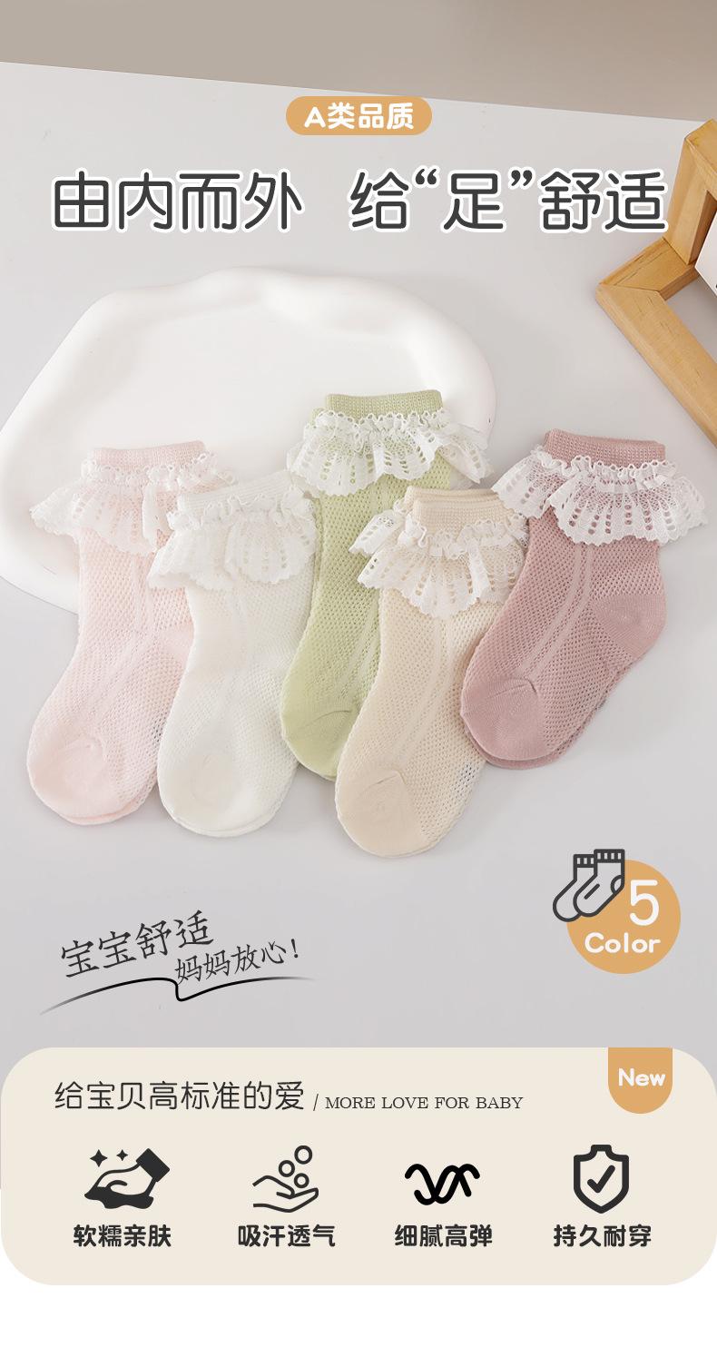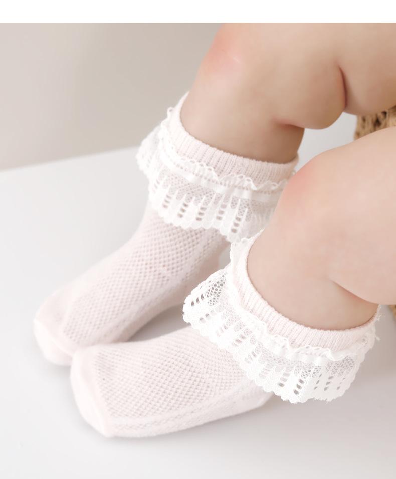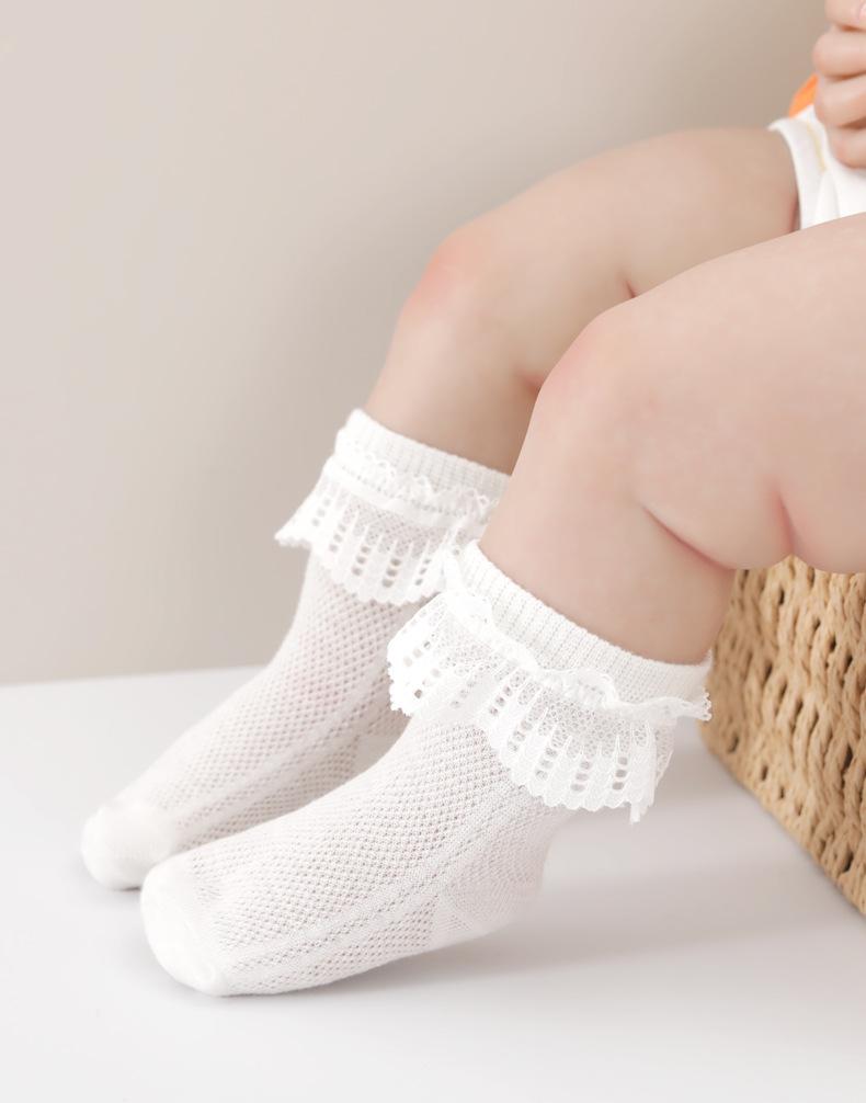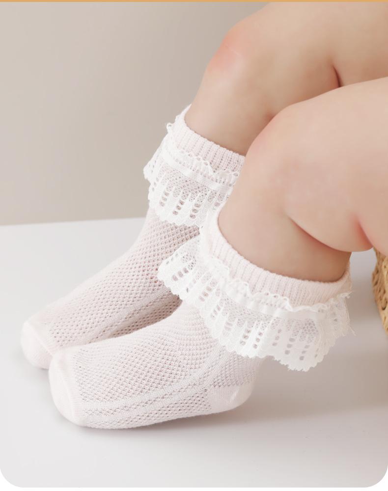 2025 encaje primavera y verano calcetines finos de malla niñas occidentales bebé algodón peinado princesa calcetines para niños al por mayor