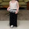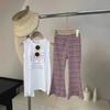 Traje de verano para niñas, elegante, personalizado, de marca moderna, con dibujos animados, camiseta, falda, pantalones acampanados a rayas.