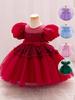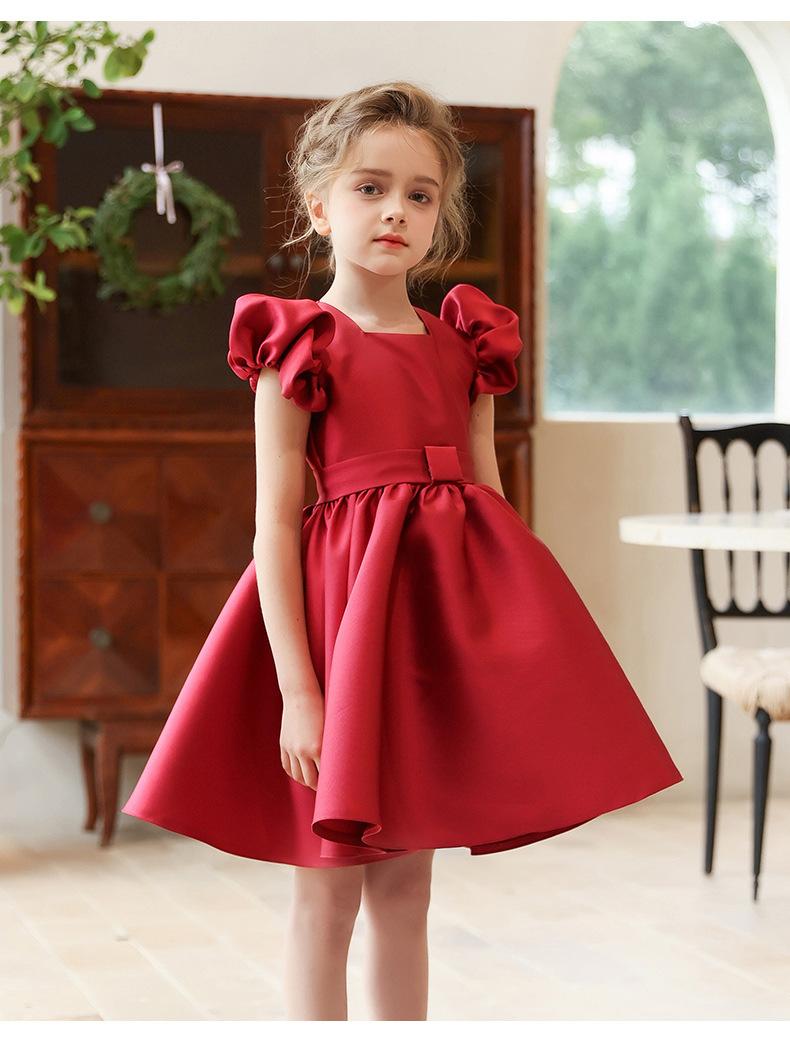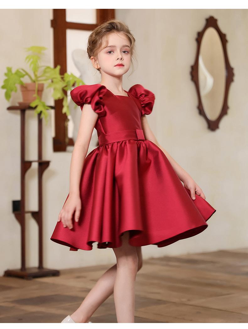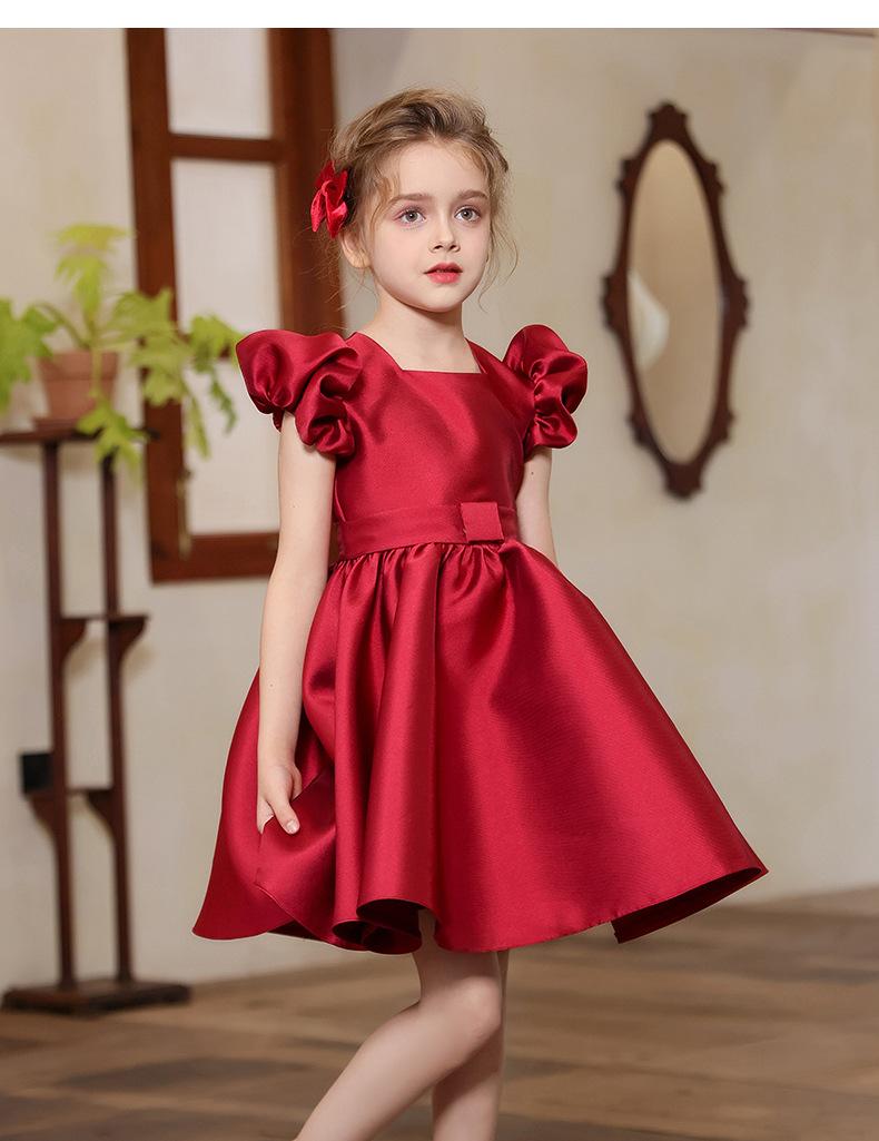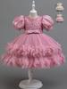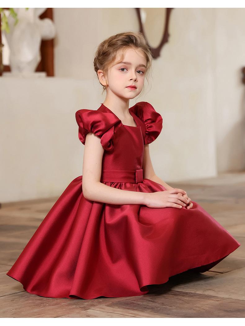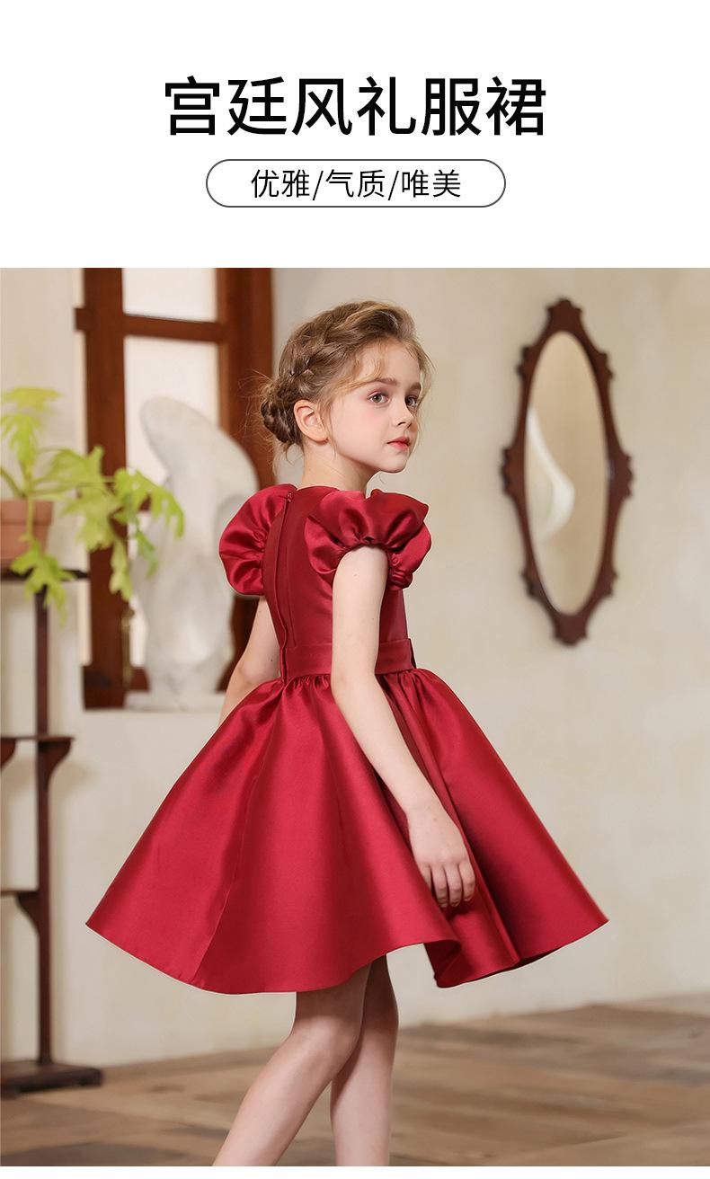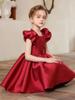Vestido Nuevo para Niñas Transfronterizo Europeo y Americano Vestido de Princesa de Manga Abullonada para Niñas Ropa de Satén para Niños Actuación de Festival de Alta Gama