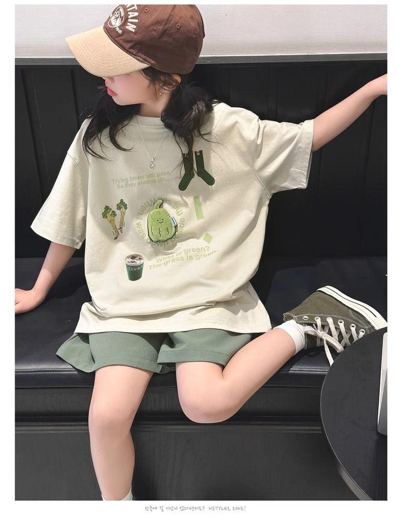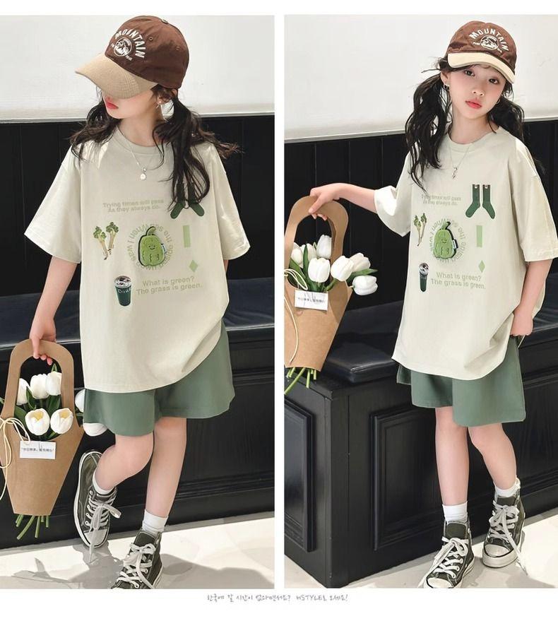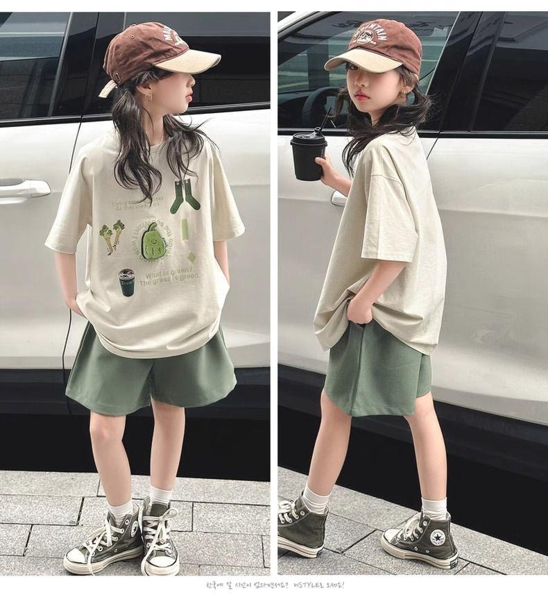 Traje de Moda de Estilo Occidental Nuevo para Verano 2025 para Niñas Niñas Niños Grandes Celebridad de Internet Calle Frita Verano Traje de Dos Piezas para Niños
