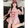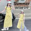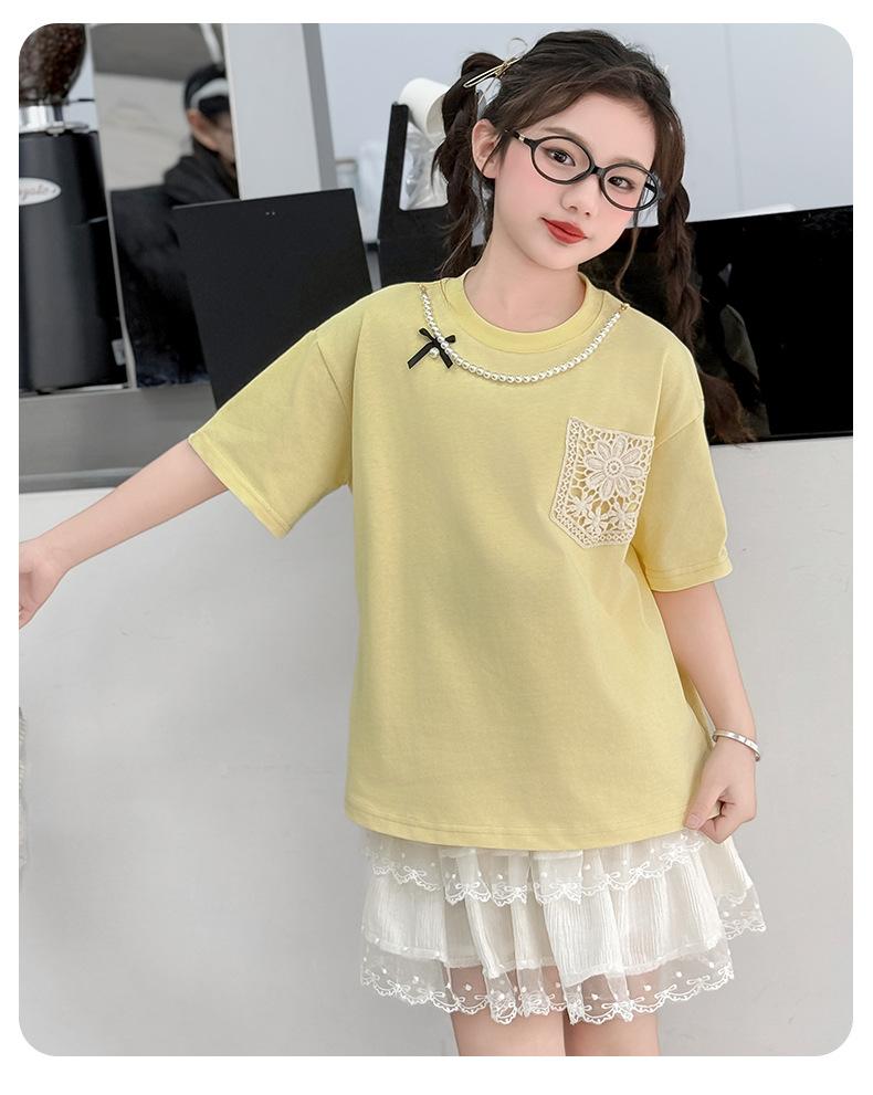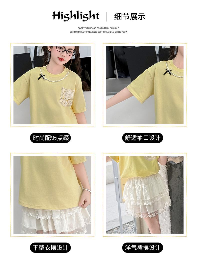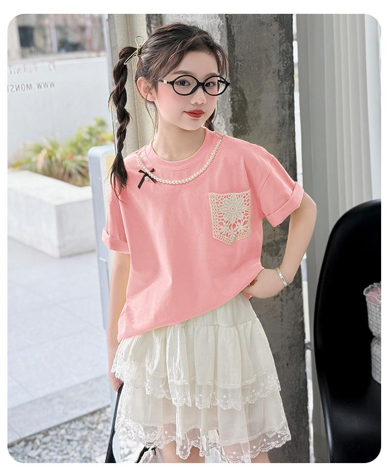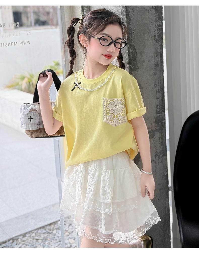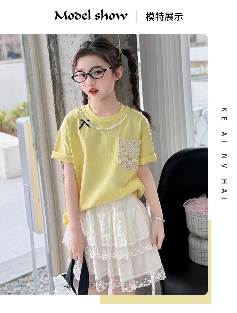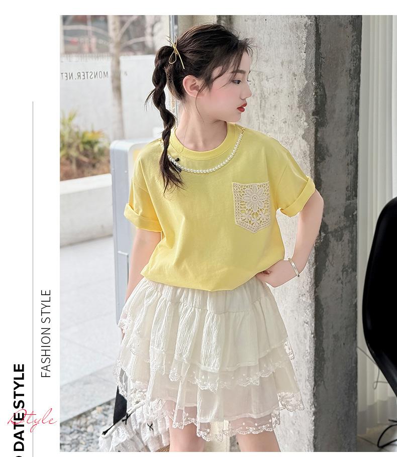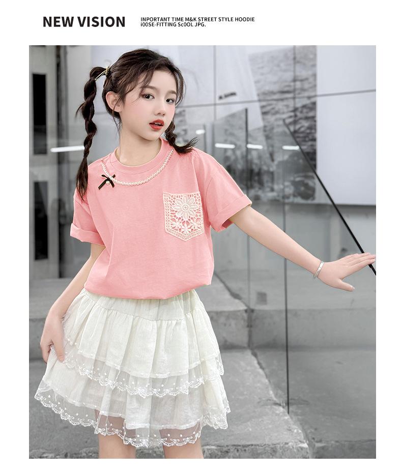 Traje de verano de manga corta para niñas 2025, nuevo conjunto de dos piezas de falda de media longitud de verano para niñas de estilo occidental a la moda para niñas de tallas medianas y grandes.