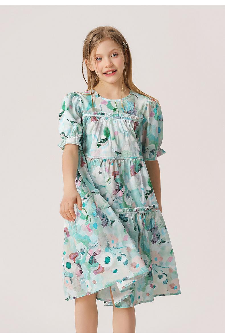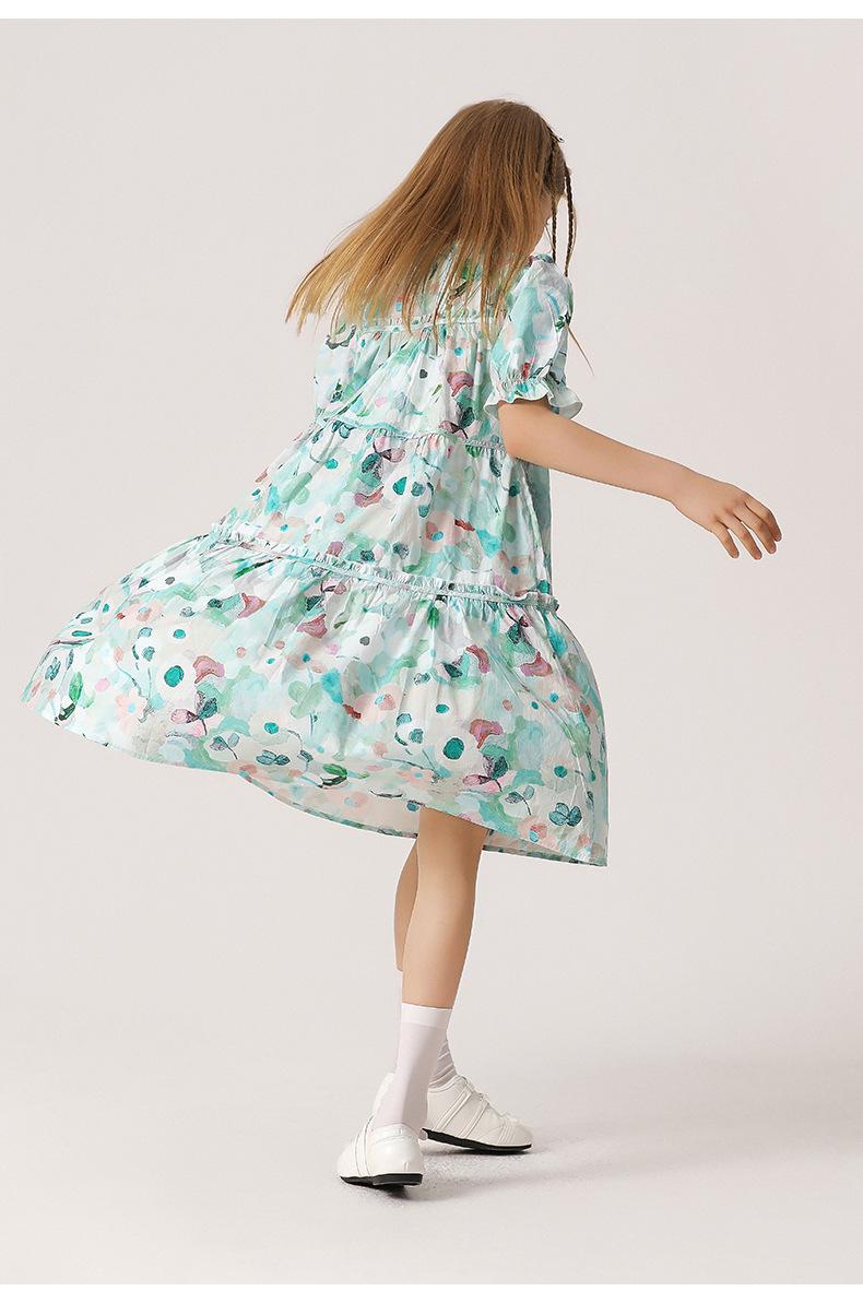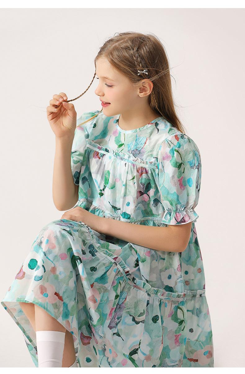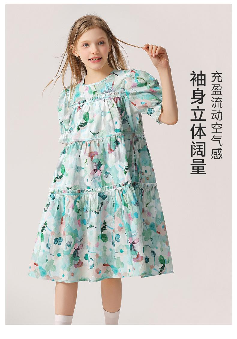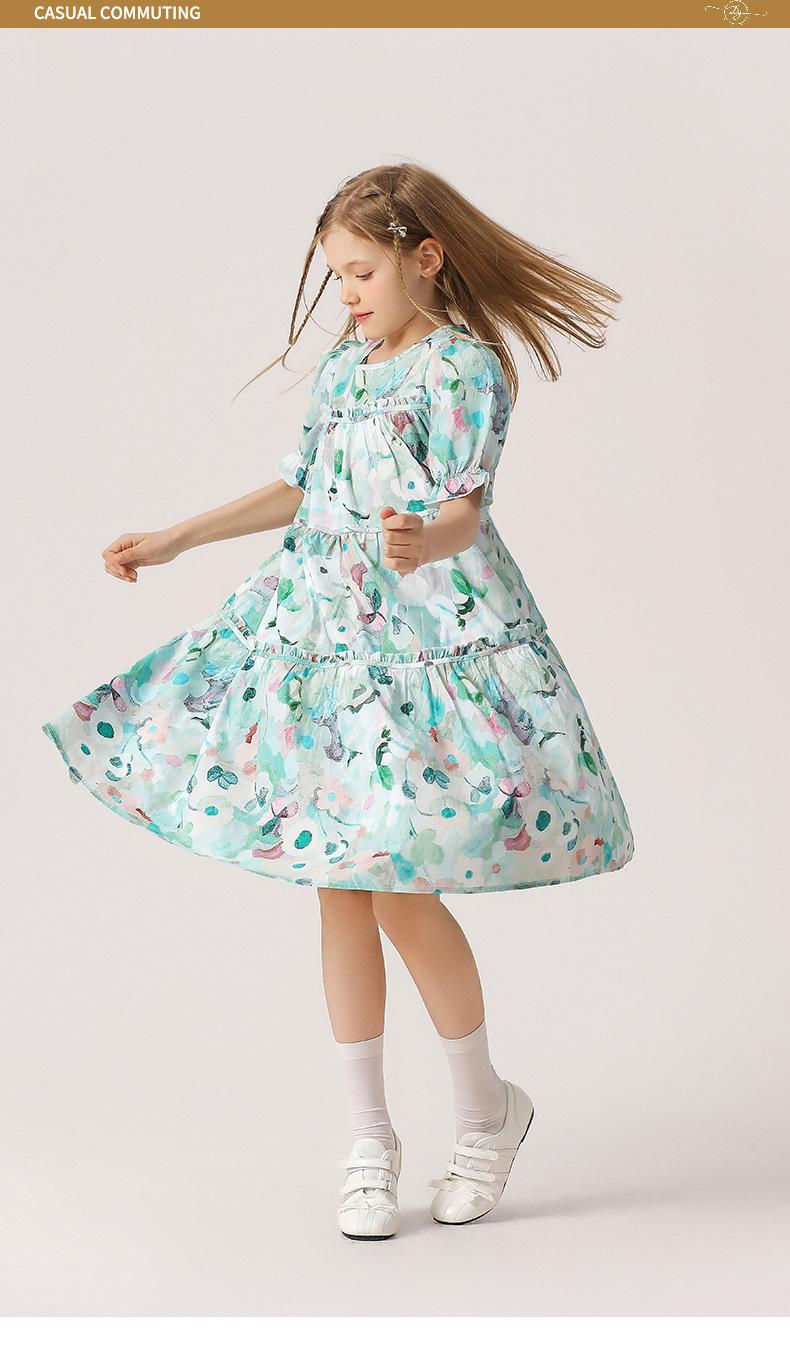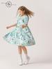 Vestido de princesa floral con mangas abullonadas para niña, verano 2025, nuevo estilo, estilo occidental, vestido fino de algodón de verano.