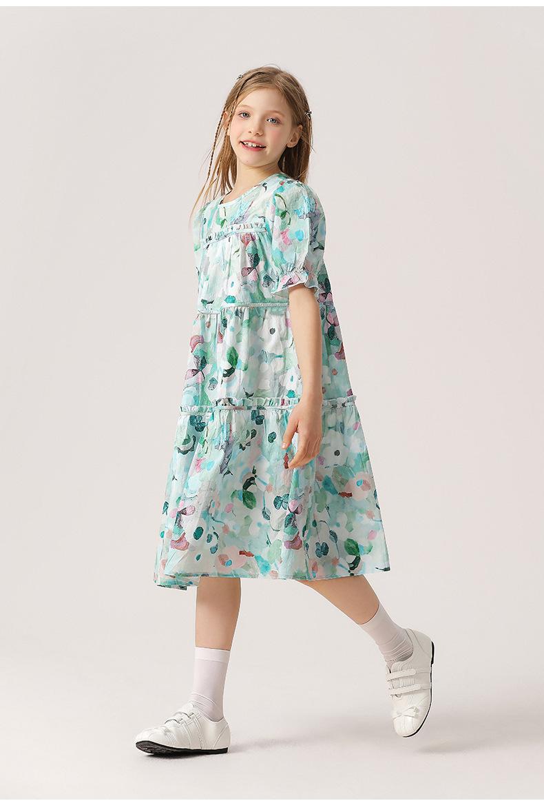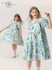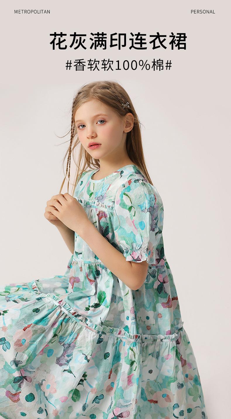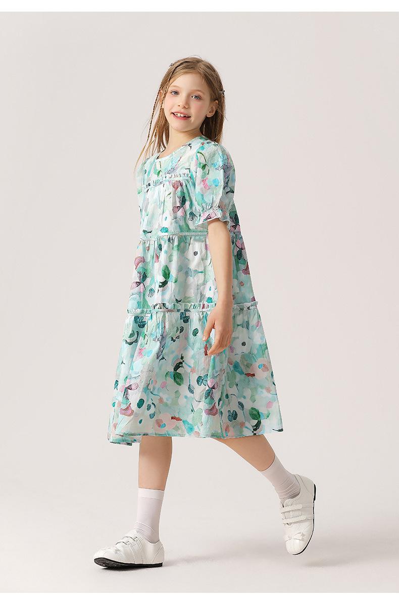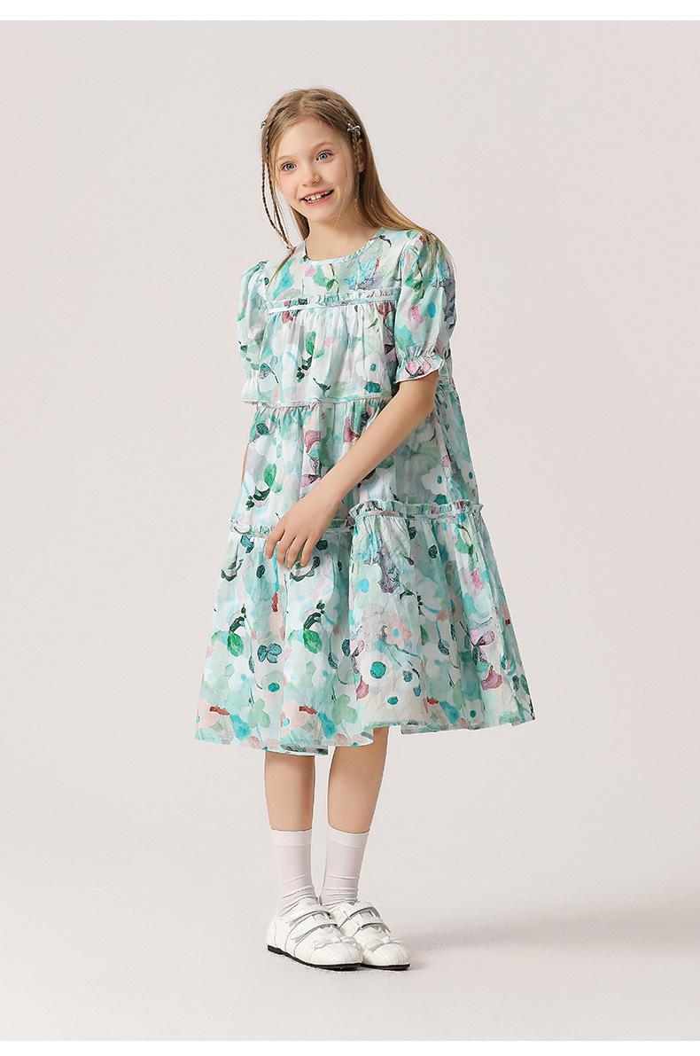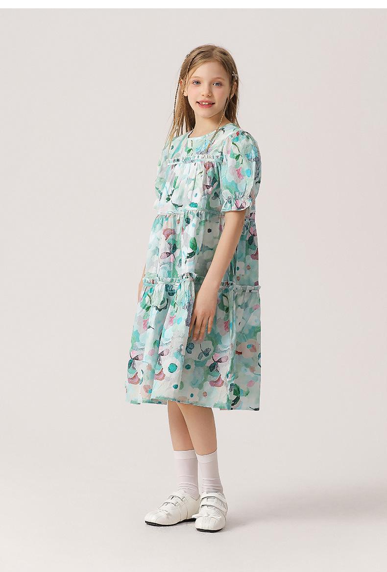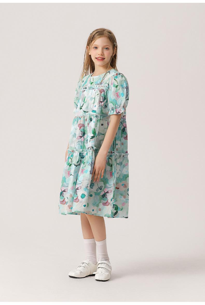 Vestido de princesa floral con mangas abullonadas para niña, verano 2025, nuevo estilo, estilo occidental, vestido fino de algodón de verano.