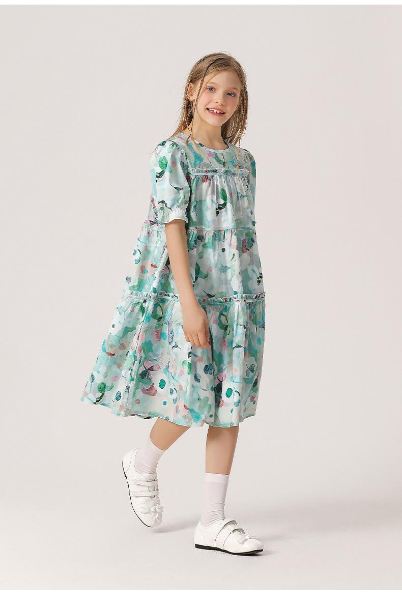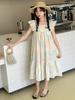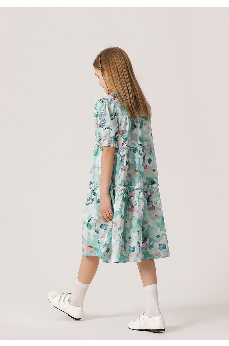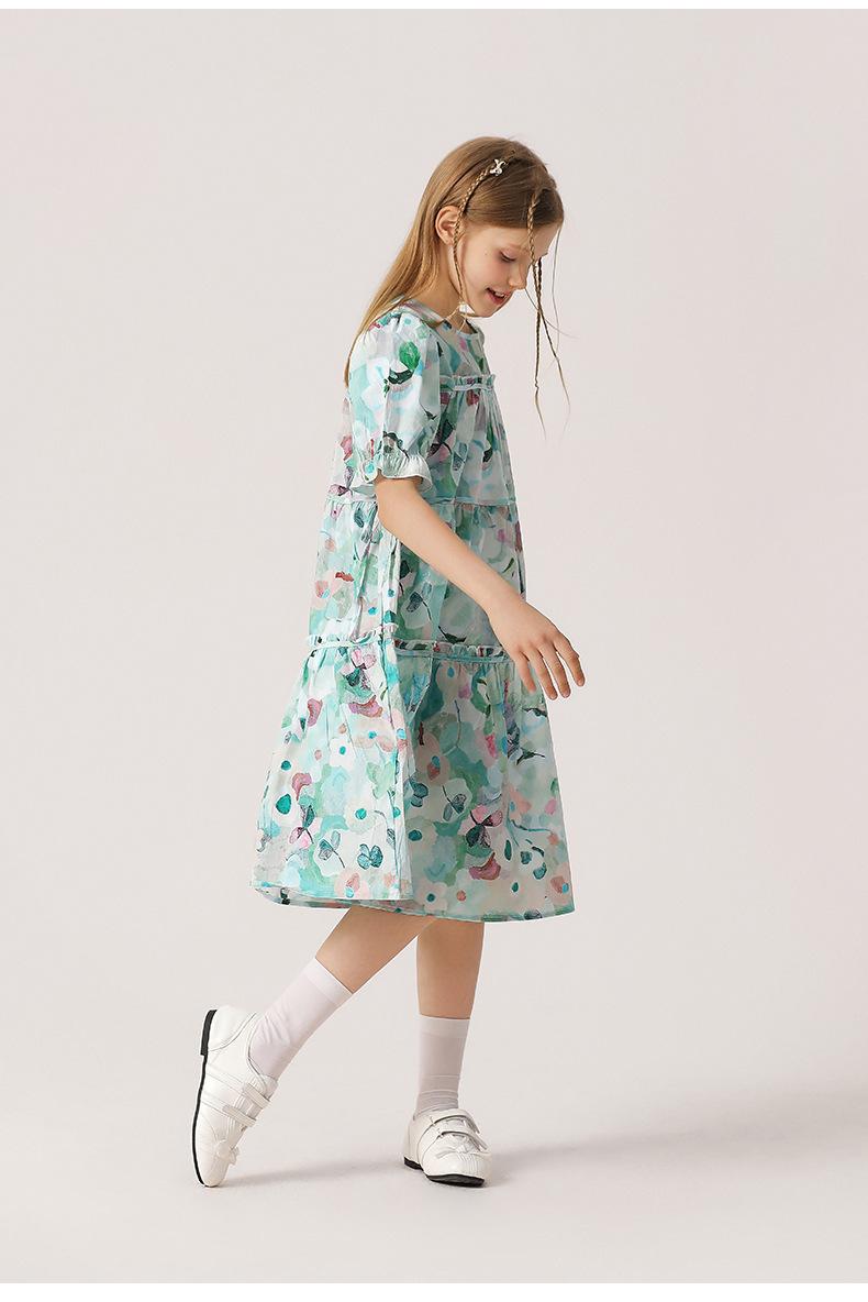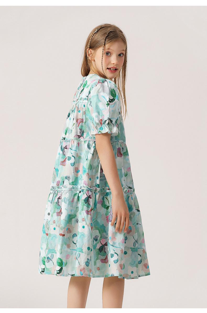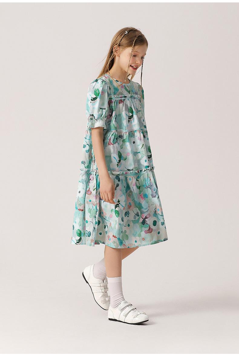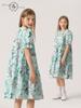 Vestido de princesa floral con mangas abullonadas para niña, verano 2025, nuevo estilo, estilo occidental, vestido fino de algodón de verano.