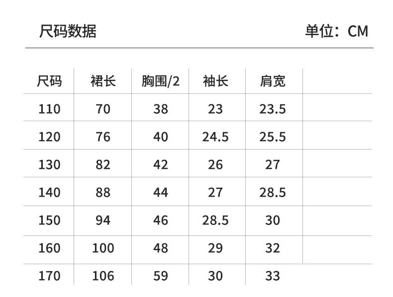110cm, 120cm, 130cm, 140cm, 150cm, 160cm, 170cm
