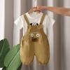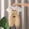 Light brown big-eyed dog short-sleeved overalls suit, Dark brown big-eyed dog short-sleeved overalls suit, Off...