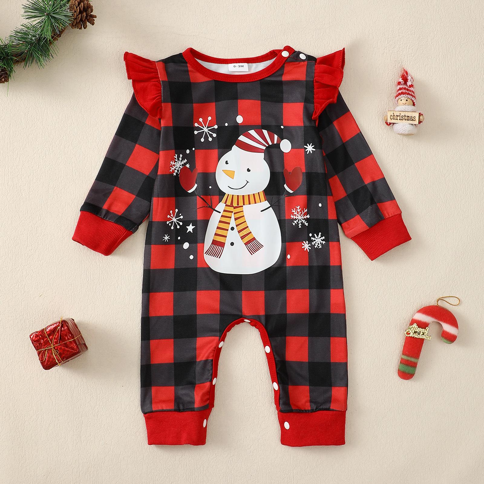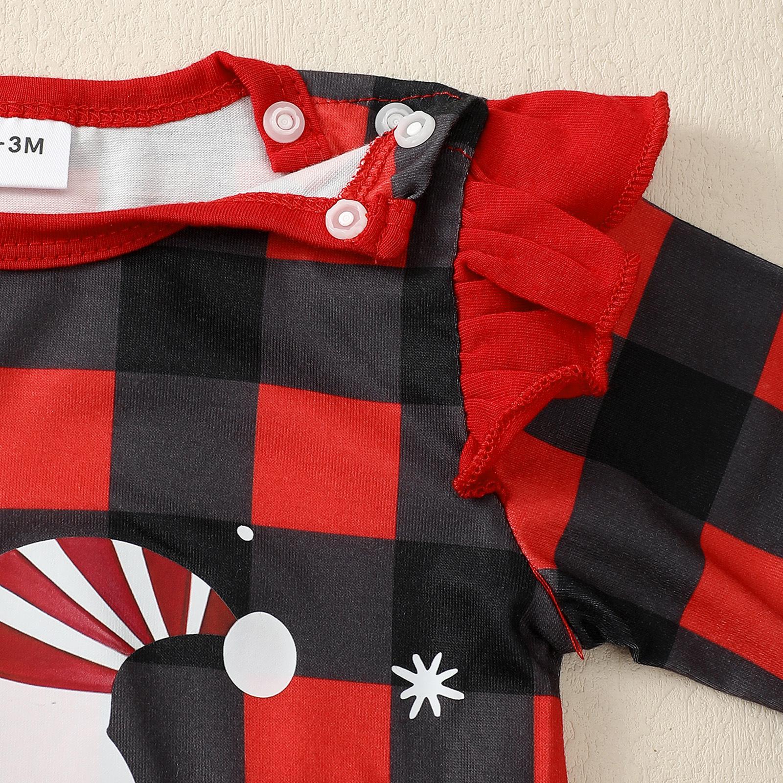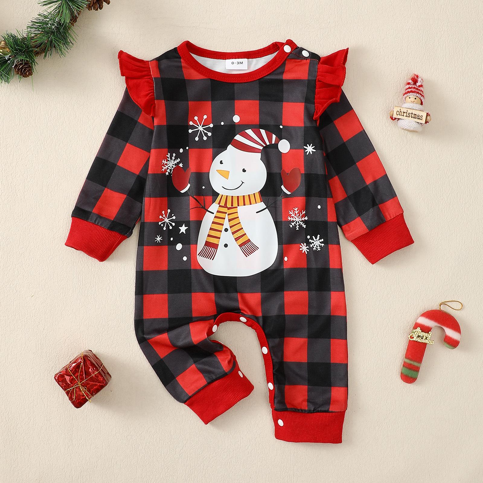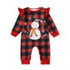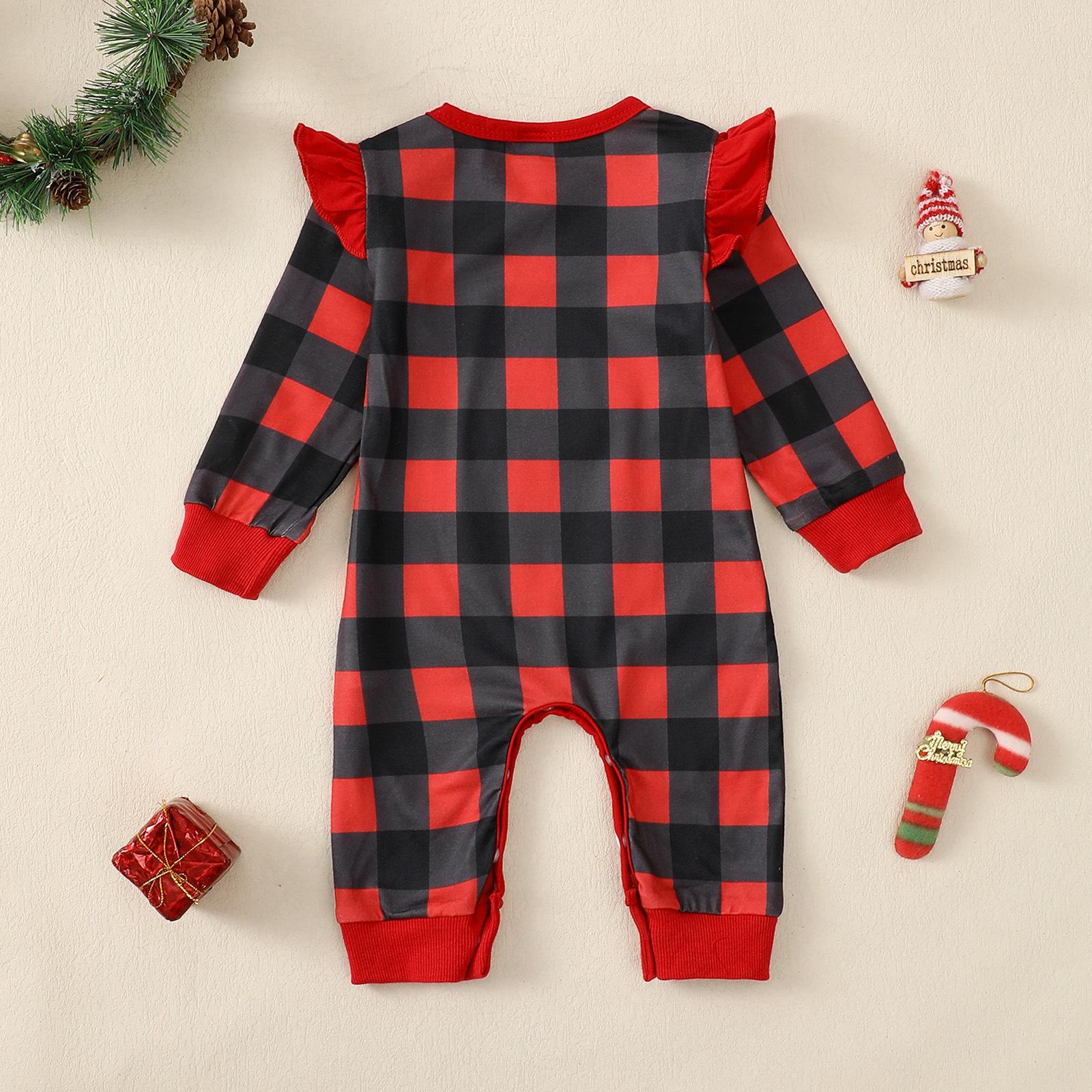Bebés y Niños Pequeños Transfronterizos Invierno Europeo y Americano Neutro Bebé Navidad Cuadros Negros y Rojos Mangas Pequeñas Volantes Mameluco de Manga Larga