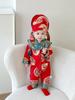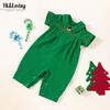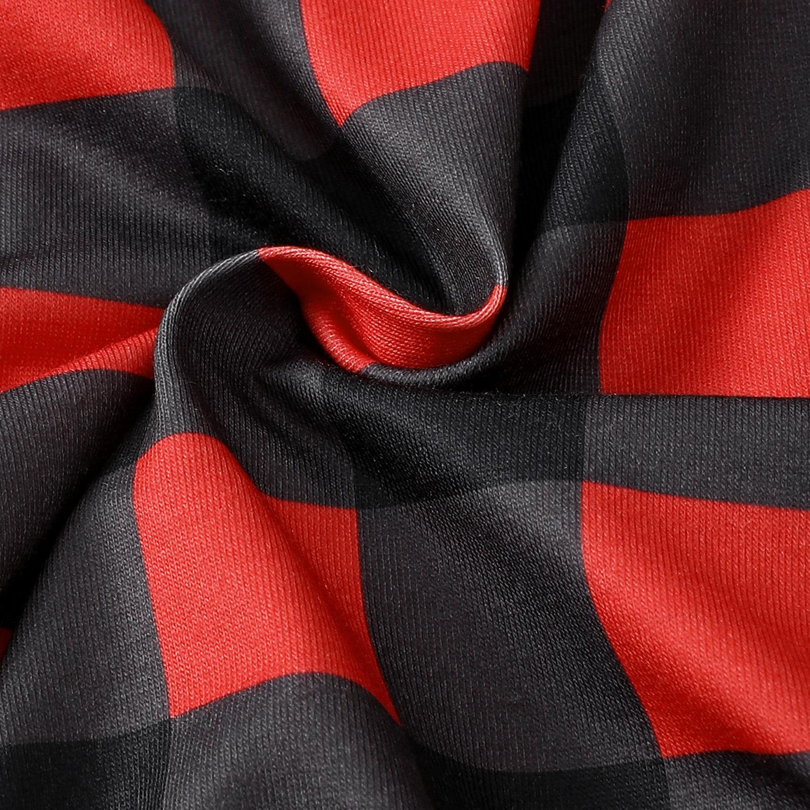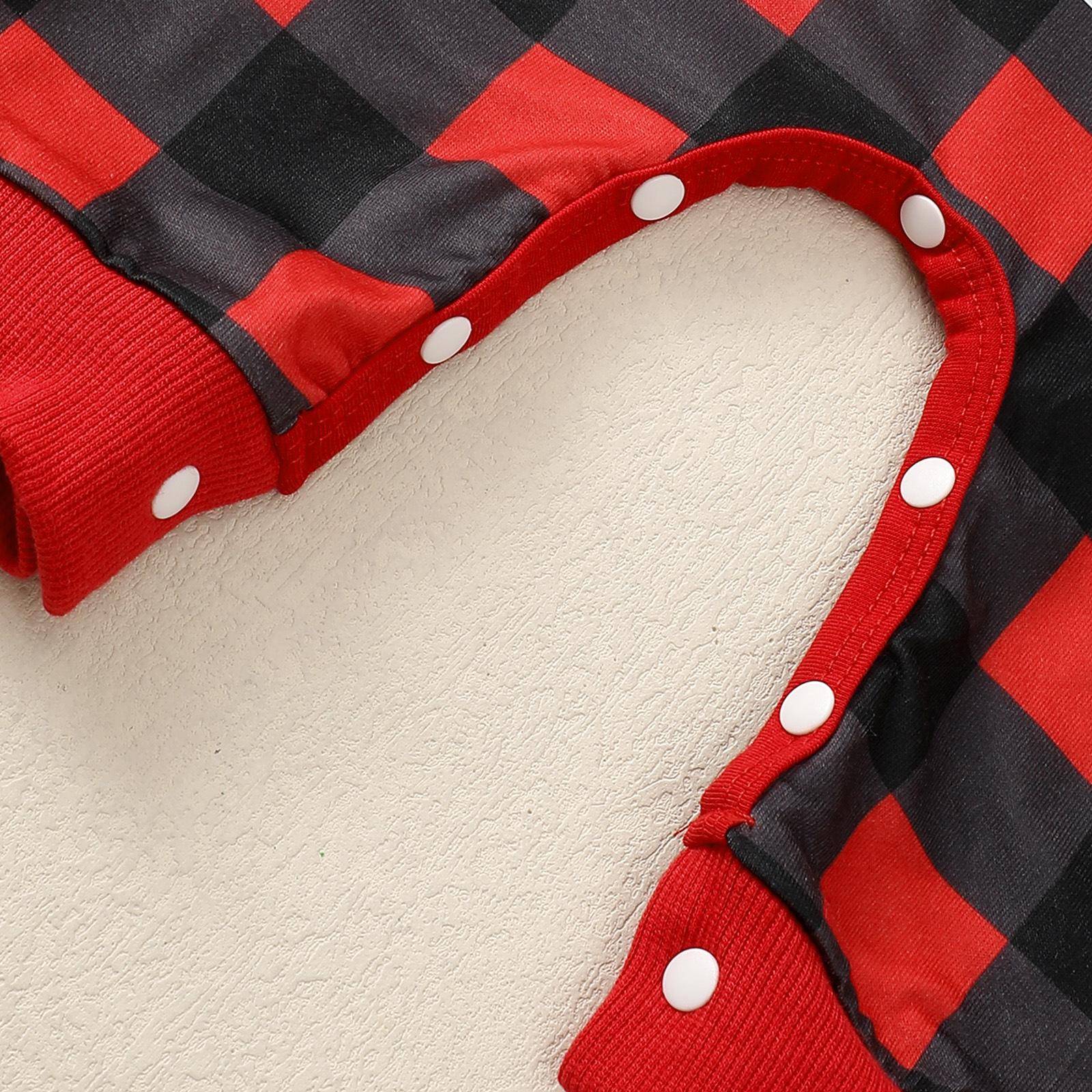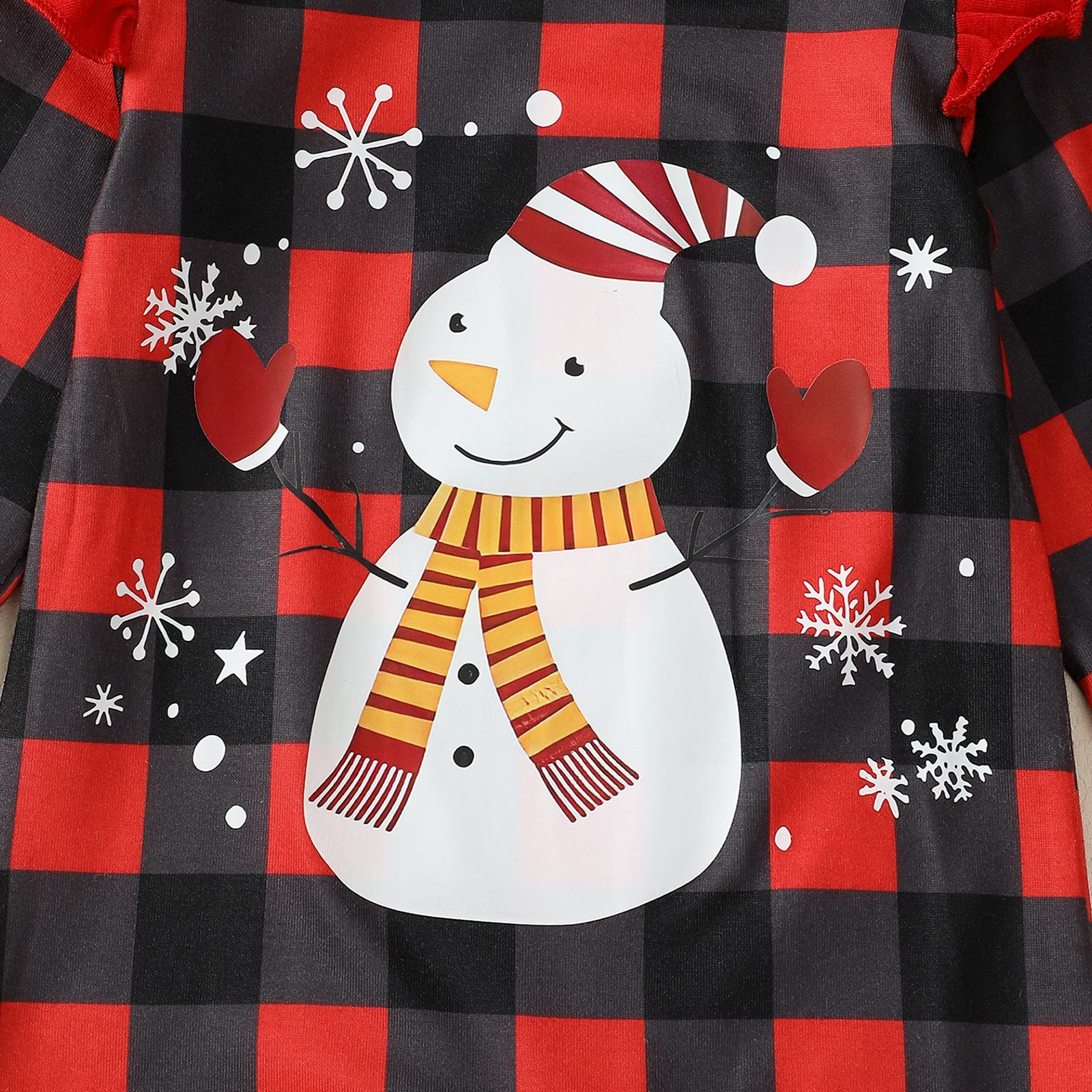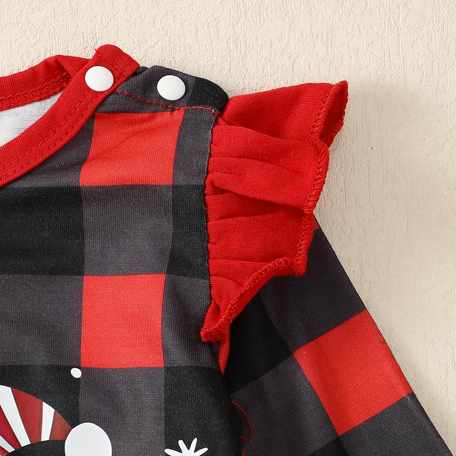 Bebés y Niños Pequeños Transfronterizos Invierno Europeo y Americano Neutro Bebé Navidad Cuadros Negros y Rojos Mangas Pequeñas Volantes Mameluco de Manga Larga
