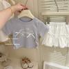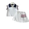 Traje de estilo coreano para niñas, ropa de verano para niños, nueva moda, elegante, polo sin mangas para niñas, falda corta, conjunto de dos piezas