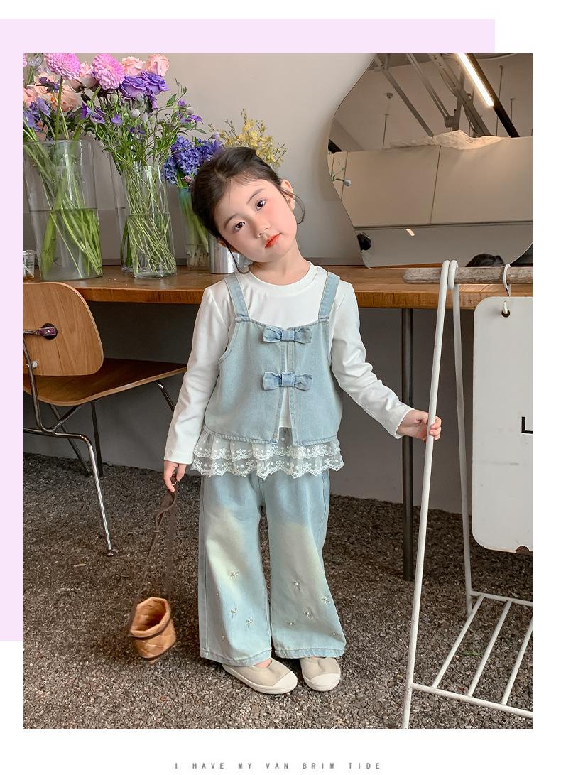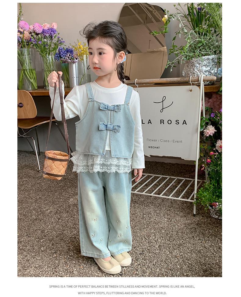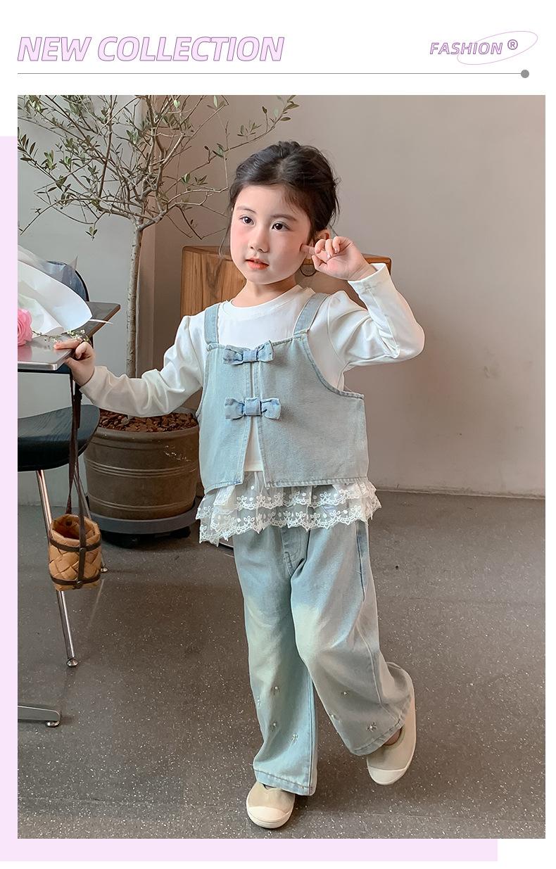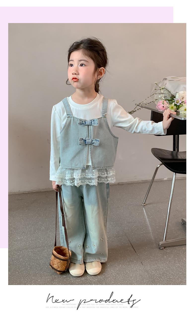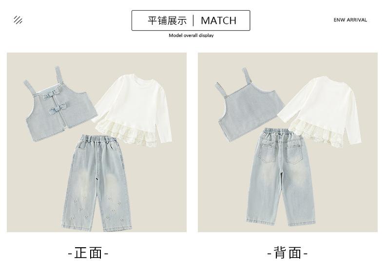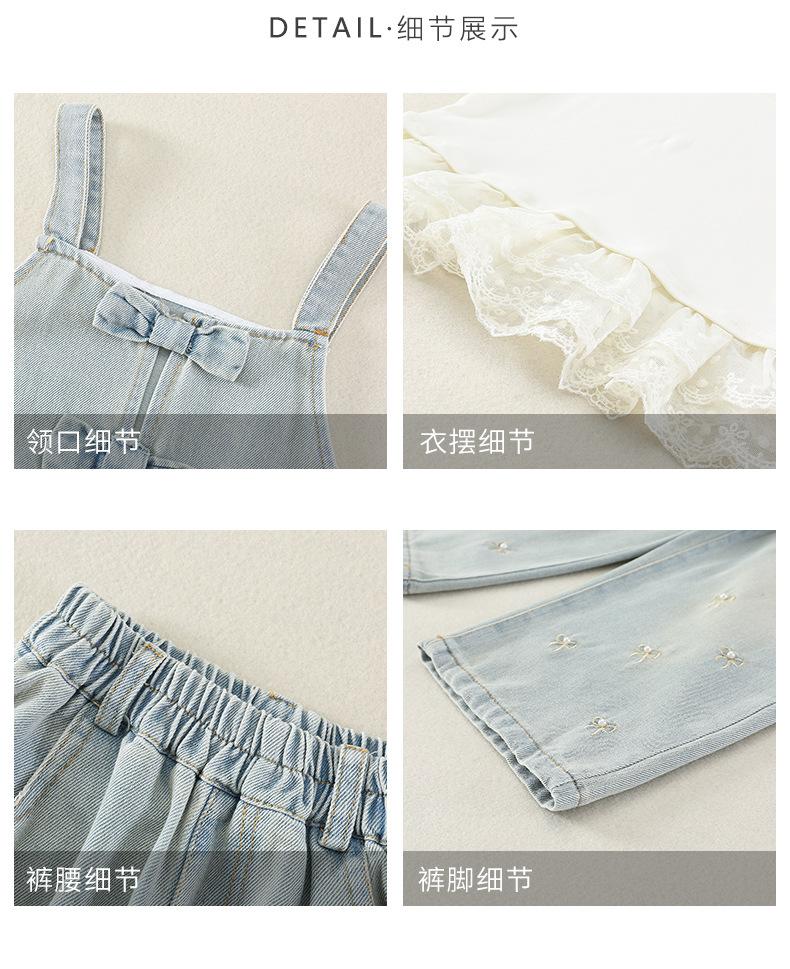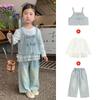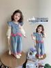 Traje para niñas Primavera y Otoño 2025 Nuevo Primavera para niñas Denim de tres piezas Ropa de encaje de primavera para niños
