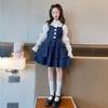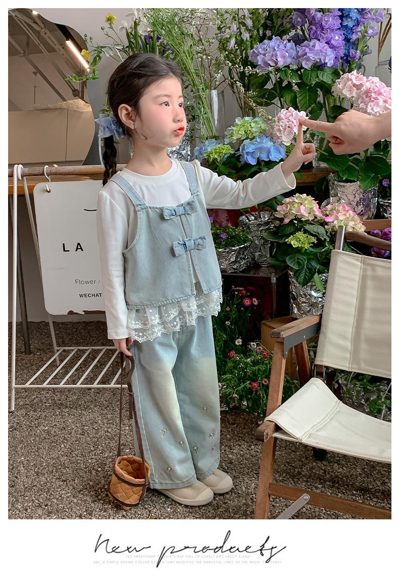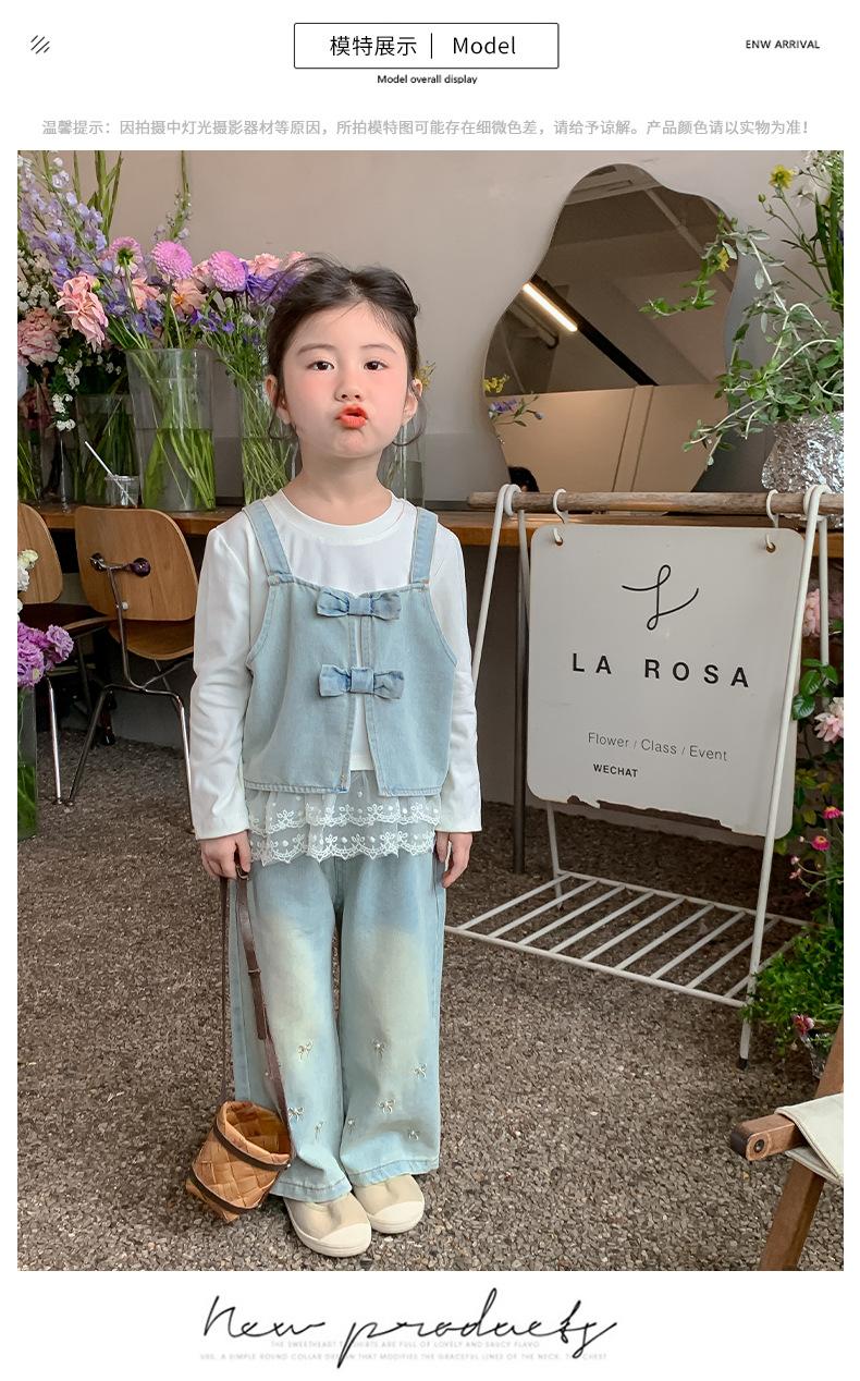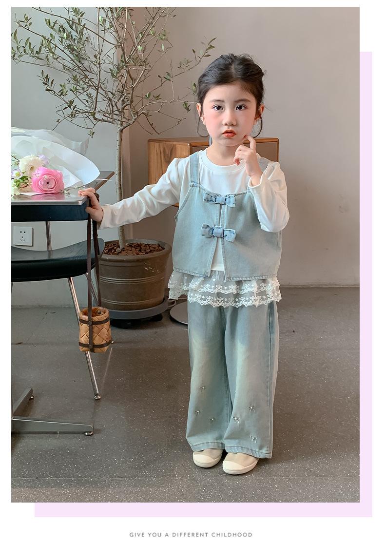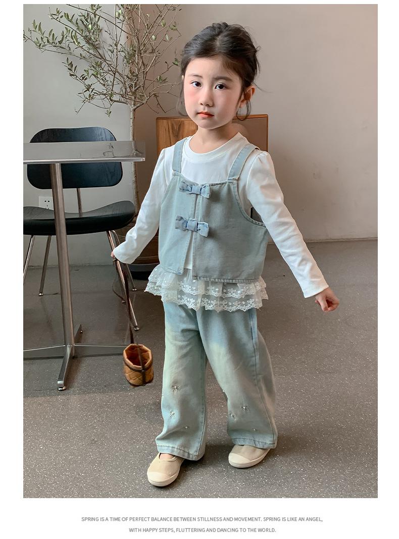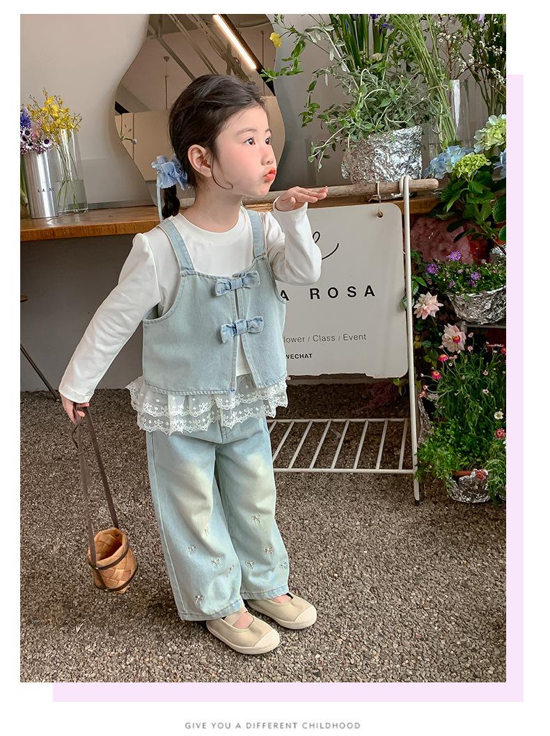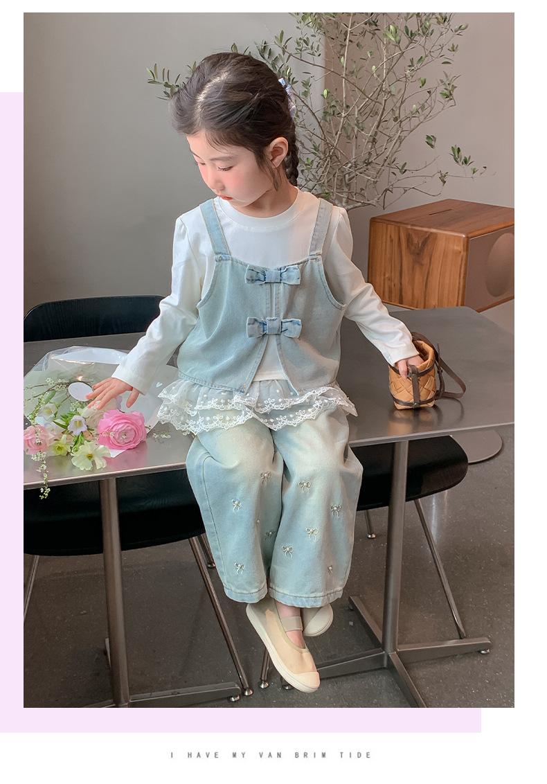 Traje para niñas Primavera y Otoño 2025 Nuevo Primavera para niñas Denim de tres piezas Ropa de encaje de primavera para niños