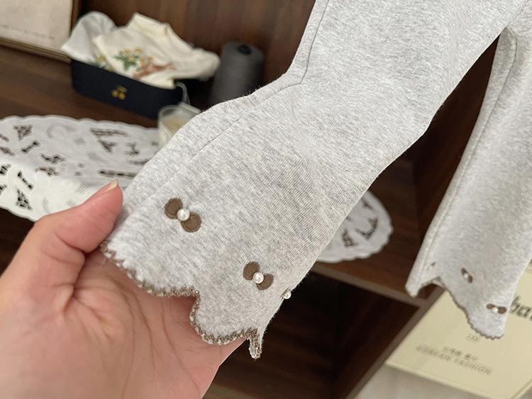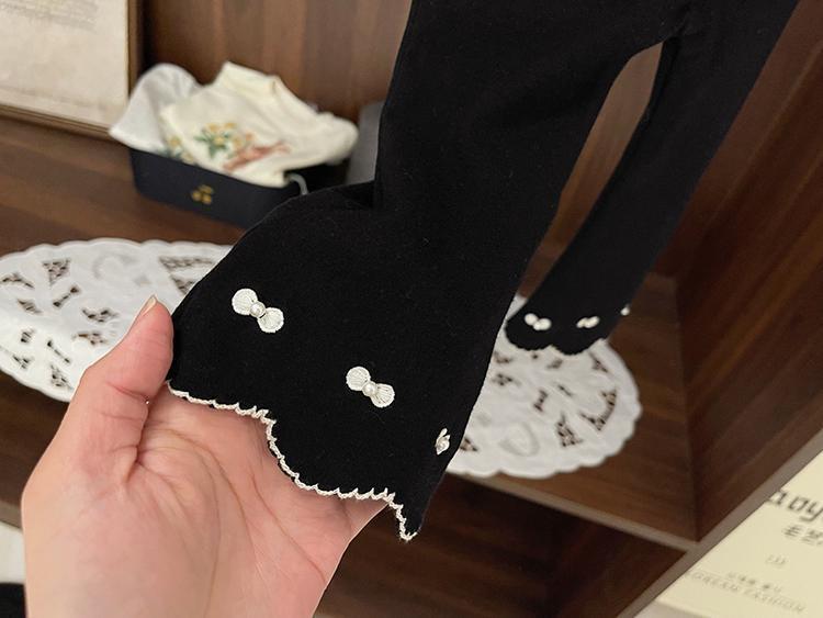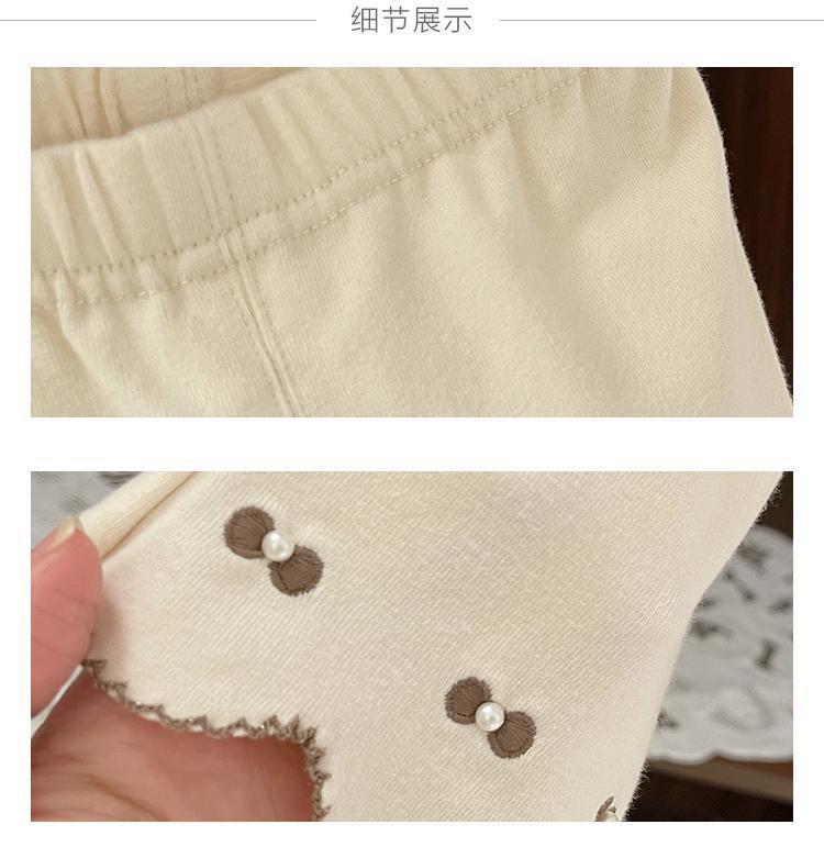 Leggings de Primavera y Otoño para Mujer y Niña Ropa Infantil Estilo Occidental para Bebé Personalidad Infantil Moderna Estilo Coreano Encaje Bordado Perla Elástico Bocina