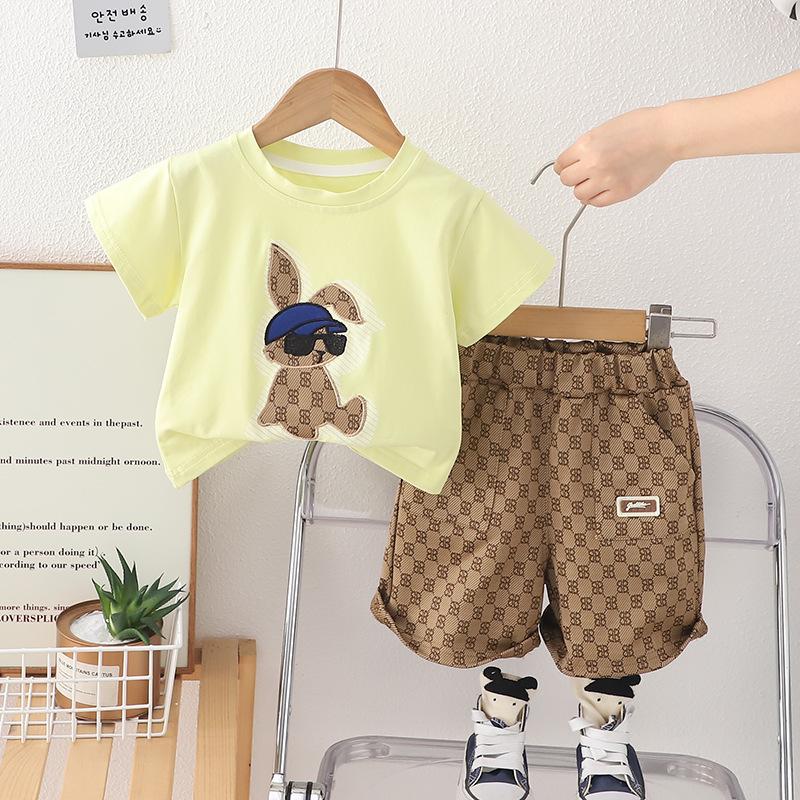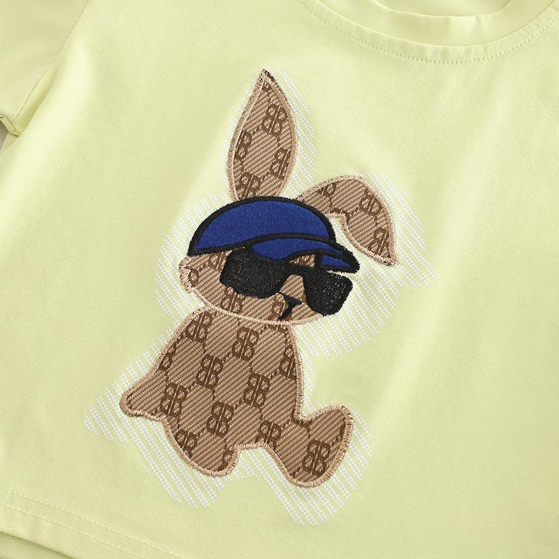 Ropa para Niños Yijia Traje de Verano de Manga Corta para Niños Dibujos Animados Sección Delgada 2025 Nuevo Casual Ropa de Bebé para Hombre y Mujer