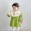 Traje de niña 2025, vestido de primavera, estilo occidental, dulce, nuevo, para niña, cárdigan de punto azul, falda de encaje, dos piezas