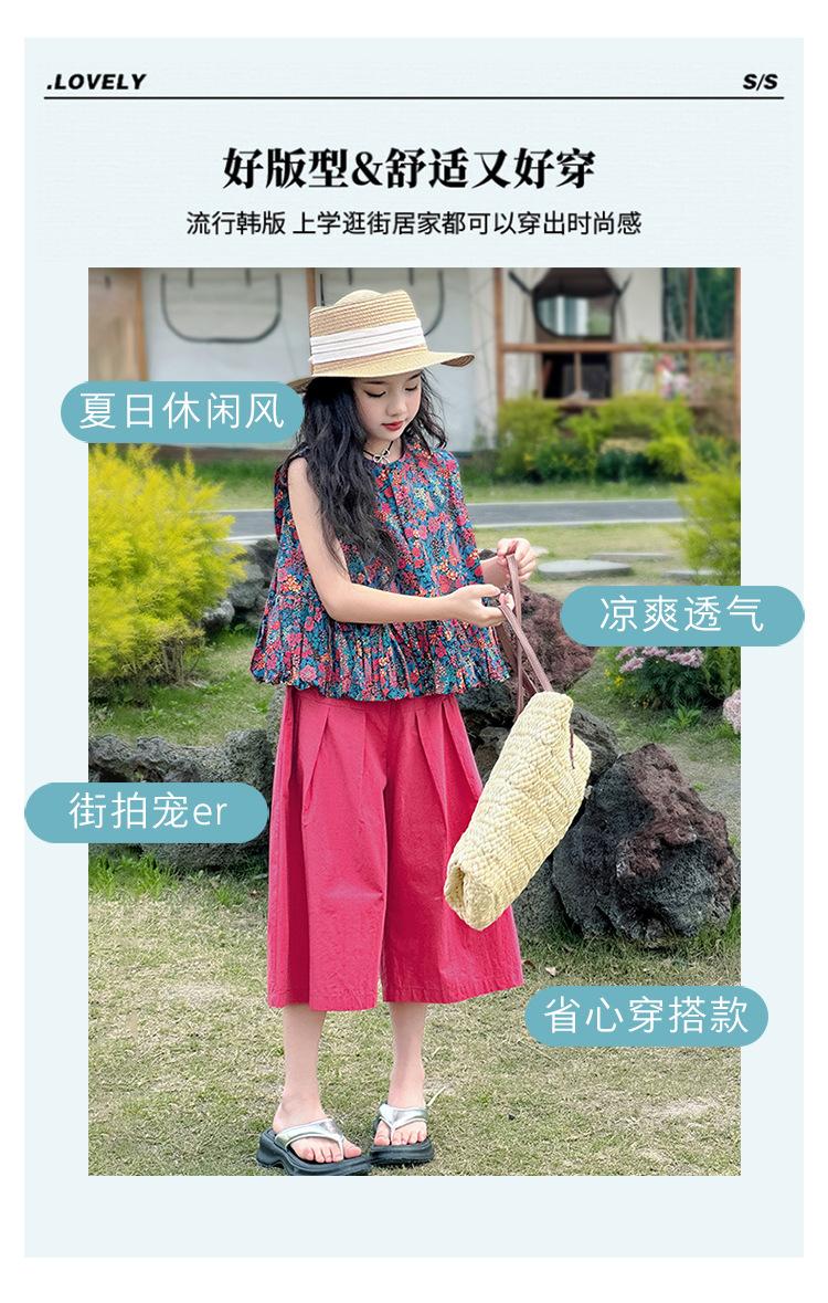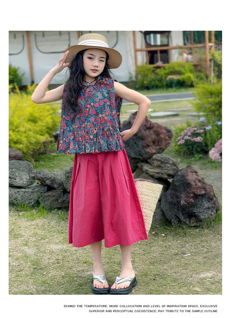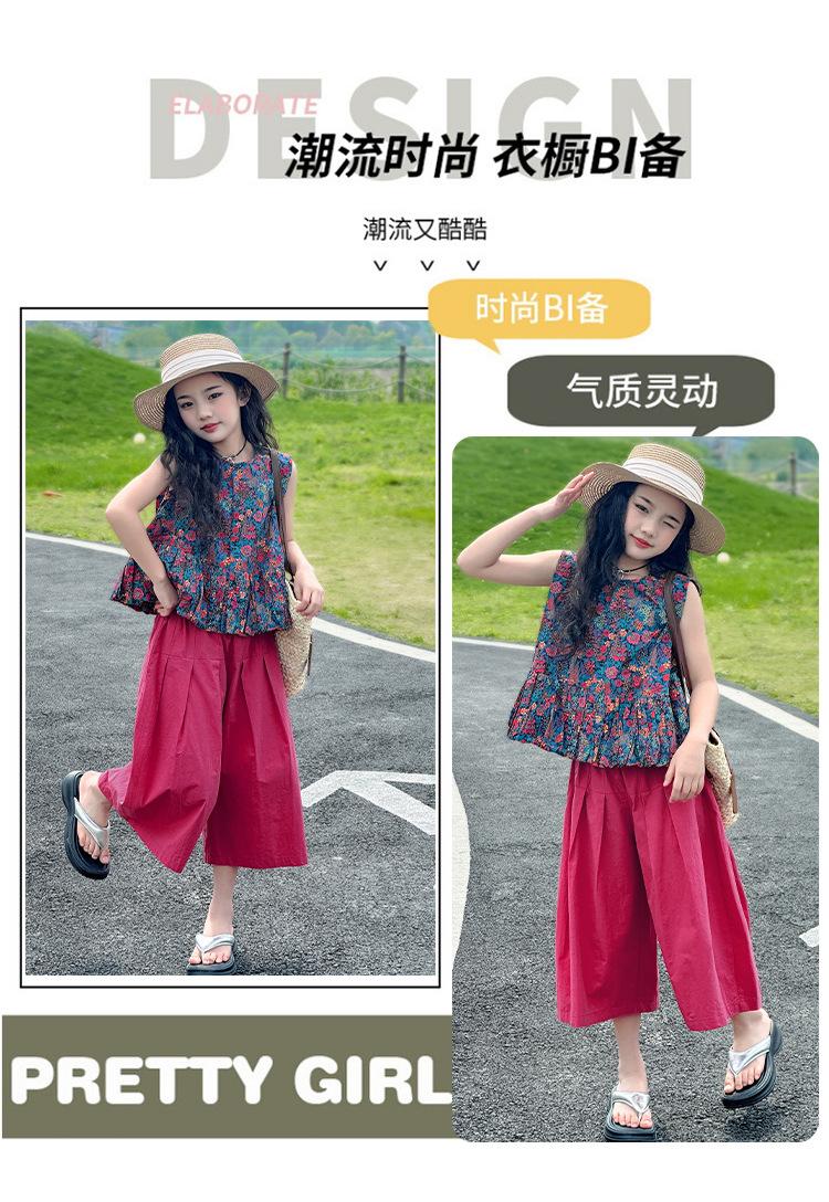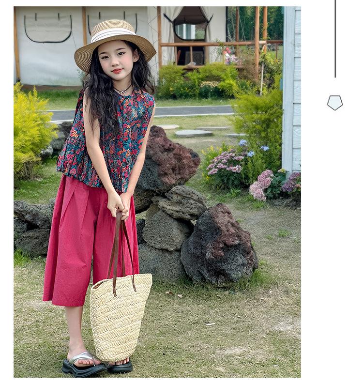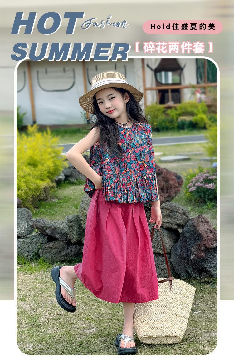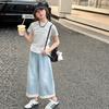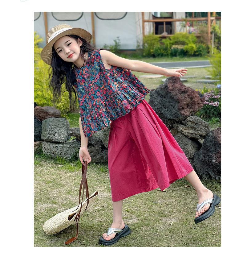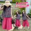 Traje casual de estilo francés para niñas, verano 2025, nuevo conjunto de dos piezas fino sin mangas para niñas de verano.
