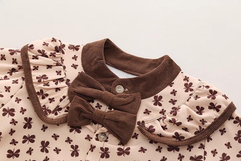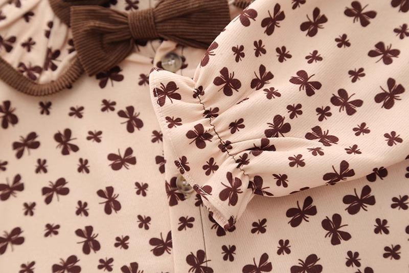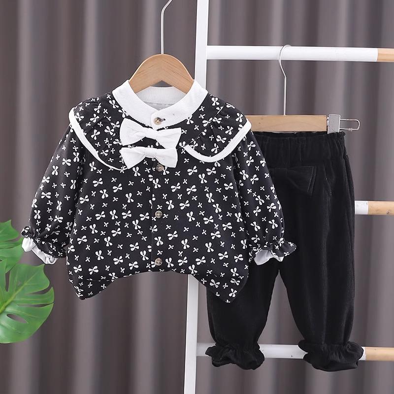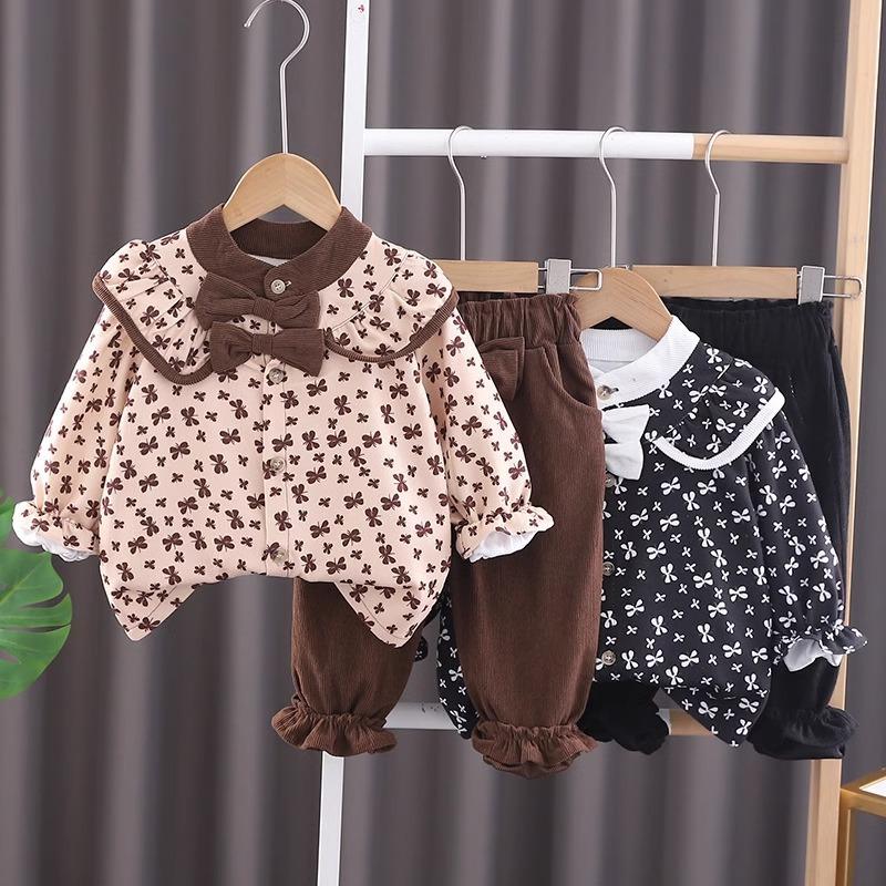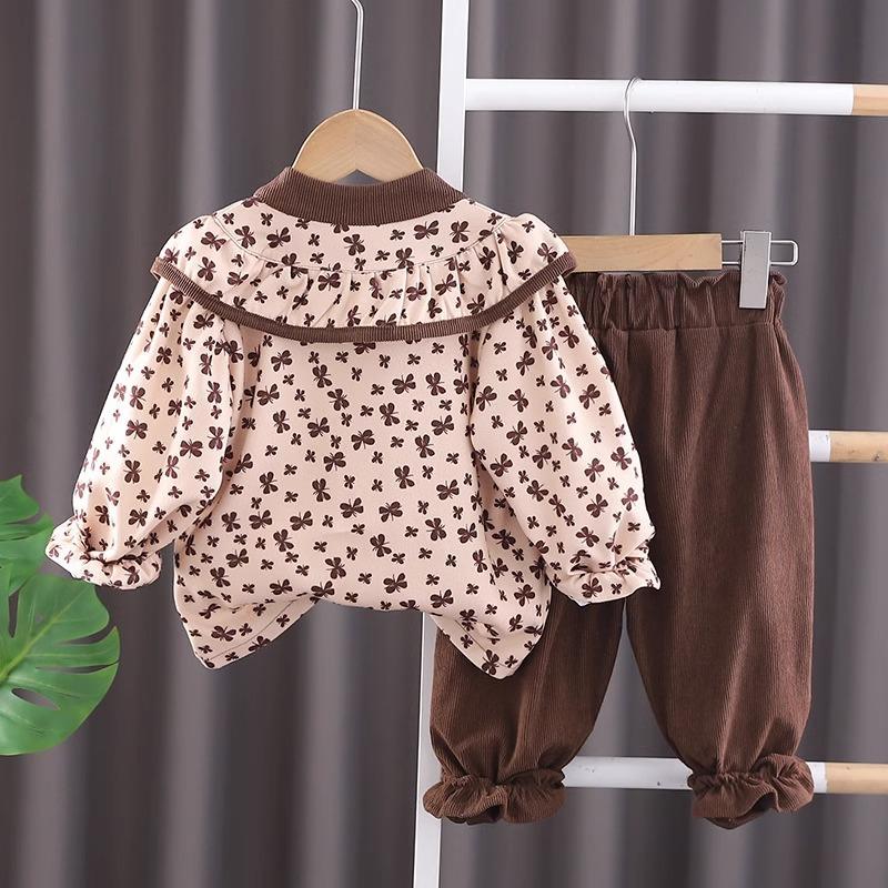 Compra Traje elegante de estilo coreano para niñas, conjunto de dos piezas con top y pantalones tobilleros y cuello de muñeca floral de moda para primavera y otoño para niños al por mayor en Joom.pro